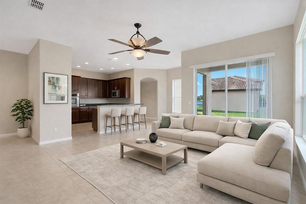 One or more photo(s) has been virtually staged. Welcome to this beautifully maintained 4-beds, 3 full baths home with lake views, located in the desirable gated community of North Shore Village in Kissimmee. Step inside to discover spacious living areas filled with natural light and designed for both everyday living and entertaining. The open-concept kitchen features ample cabinetry, generous counter space, and overlooks the living and dining areas with relaxing lake views from the backyard. The primary suite offers a private and relaxing retreat, while the additional bedrooms provide flexibility for family, guests, or a home office. With three full bathrooms, this home provides comfort and convenience. Enjoy peaceful mornings and beautiful sunsets from the backyard while taking in the serene lake view. Located within the gated community of North Shore Village, residents enjoy access to community amenities including a pool, while being conveniently located near shopping, dining, schools, airport and major highways. This beautiful home with lake views, solar panels, offers comfort, efficiency, and an excellent location. Schedule your private showing today.