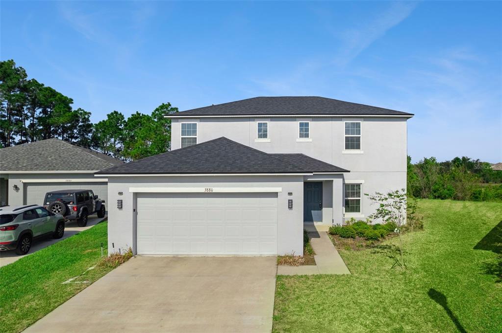 Beautiful LAKEFRONT home in SAWGRASS Bay on .26 ACRES! Step into the ROSEBUD MODEL floorplan by Taylor Morrisson. This spacious 4-bedroom lakefront home with oversized 0.26-acre lot, extended covered lanai, and OPEN-CONCEPT living in Clermont’s Sawgrass Bay on HALF MOON cul de sac for optimal privacy —perfect for buyers seeking modern Florida living, outdoor space, and easy access to Disney, Olympus, and everyday conveniences.*** Welcome to 3880 Fescue Street, featuring the popular Taylor Morrison Redbud floor plan with approximately 2,142 sq ft of thoughtfully designed living space. This two-story home offers 4 bedrooms, 2.5 bathrooms, and a flexible layout ideal for both everyday living and entertaining. The main level showcases a bright open-concept design with a large great room that seamlessly connects to the dining area and chef-inspired kitchen, complete with a spacious island, walk-in pantry, grey cabinetry, and stainless-steel appliances.*** Upstairs, the owner’s suite serves as a private retreat with peaceful lake views, a generous walk-in closet, and a well-appointed bathroom. The split-bedroom layout provides privacy and functionality, with additional bedrooms and a conveniently located laundry room. A first-floor powder bath and under-stair storage add to the home’s practical design.*** Step outside to enjoy true Florida living with an extended covered lanai overlooking a beautiful lake and an expansive quarter-acre backyard—ideal for creating your dream outdoor space with room for a pool, garden, playground, or entertaining area. This lakefront setting offers both tranquility and versatility, making it perfect for families, second-home buyers, or anyone wanting more space than a typical subdivision lot.*** Built with energy efficiency in mind, this home includes high-performance Low-E double-pane windows, insulated ductwork, enhanced wall and attic insulation, and a strong HERS rating of approximately 65. Low-VOC paint contributes to improved indoor air quality, and the home includes a limited structural warranty for added peace of mind.***Located in the desirable Sawgrass Bay community, residents enjoy access to resort-style amenities including a community pool, clubhouse with fitness center, playground, sports courts, sand volleyball, and walking and biking trails. The community also hosts social events throughout the year, creating a vibrant neighborhood atmosphere.***
