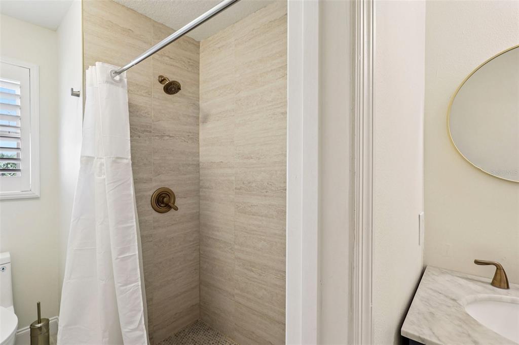 The home has been tastefully updated with modern, refined finishes. All bathrooms have been renovated with clean, elegant touches, while the kitchen features modern appliances, ample cabinetry, and an efficient layout designed for comfort and performance. Additional highlights include gutters, generous storage, a three-car garage, an expansive driveway, and a screened front balcony, enhancing both curb appeal and everyday livability.
