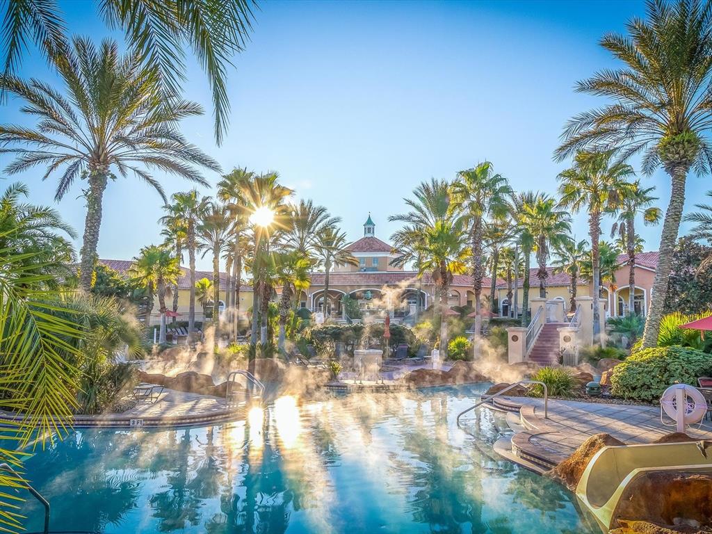 Regal Palms offers exceptional resort-style amenities, including a clubhouse, fitness center, restaurant, and a tropical-themed pool area with a lazy river and water slide. The community is gated 24/7 and located just minutes from shopping, dining, golf, and world-famous attractions.