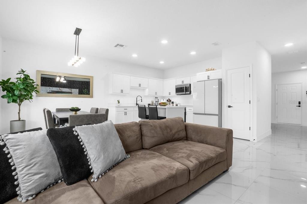 Welcome to this gorgeous, very well maintained, almost brand new Townhome with amazing upgrades! This beautiful 3 bed / 2.5 bath townhouse is located in a desirable and quiet neighborhood in Davenport. The community is conveniently located near stores, restaurants and excellent schools. This townhouse includes new porcelain floors on the first level and a new Island in the kitchen to enjoy breakfast with your family. Also includes new and modern decorative wall in the living room, new sink, and additional refrigerator enclosure. HOA allows installation of fully enclosed fence in these townhomes!