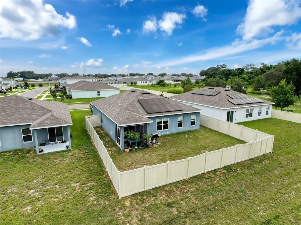 NO CDD and a LOW HOA of just $302 bi-annually make this 2021-built home, on a dead-end street, an incredible find, complete with a 10-year structural warranty and PAID OFF SOLAR PANELS-imagine the bragging rights when current peak summer electric bills have been under $121, offering impressive savings! This spacious 4-bedroom, 2-bath split floor plan offers an open layout with stylish ceramic tile flooring throughout the main areas, a Smart Nest thermostat and a Ring doorbell. The primary suite features an oversized walk-in closet and a beautiful en suite bath with dual vanities and a walk-in shower. The kitchen offers ample wood cabinetry, an island with a breakfast bar and a walk-in pantry. Start your mornings with coffee in the screened, covered lanai overlooking your vinyl-fenced backyard with NO REAR NEIGHBORS and a conservation view. Your new home is ideally situated between Orlando and Tampa, you’ll enjoy quick access to I-4, Posner Park shopping, Heart of Florida Hospital, Publix, and top attractions like Disney, Legoland, Universal, Bok Tower Gardens and local nature trails-offering the best of Central Florida. Be sure to explore the 3D walk-through link for an immersive virtual tour of this beautiful home! Schedule your showing today!