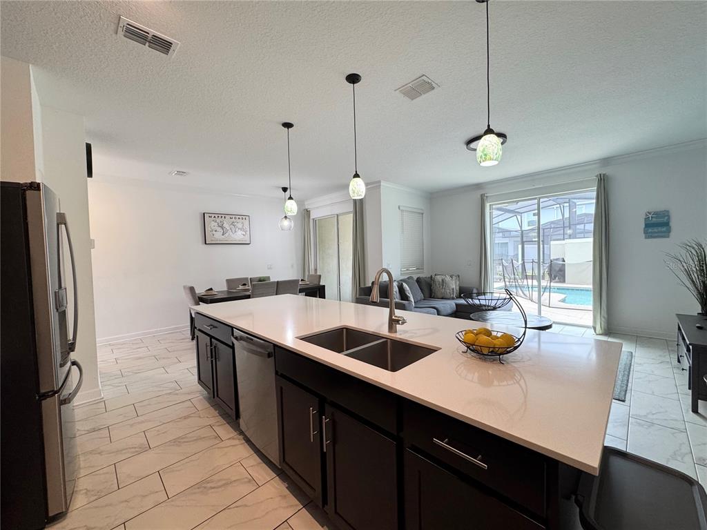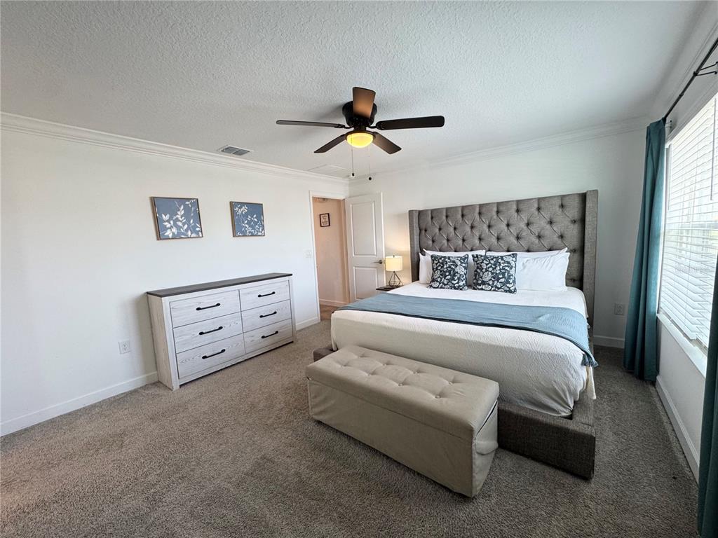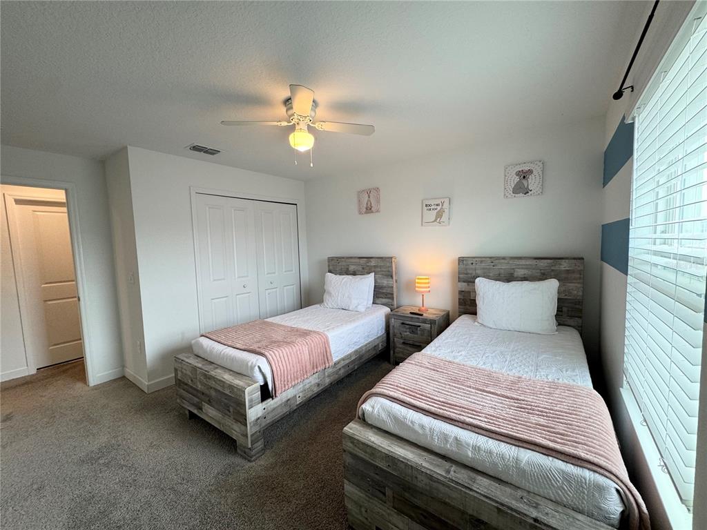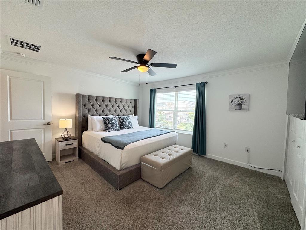 This beautiful fully furnished 4-bedroom, 3-bathroom townhome in Storey Lake Resort offers the perfect blend of luxury and comfort, just 15 minutes from Disney World. Featuring a private pool, this stunning townhome boasts an open-concept design with a kitchen equipped with stainless-steel appliances, custom lighting, a breakfast bar, and a closet pantry. A conveniently located bedroom and bathroom on the first floor add flexibility for guests or multi-generational families. Upstairs, the primary suite has its own en-suite bathroom, while two additional bedrooms share a bath. The home is perfect for guests to enjoy after a day at the parks. Located in a gated community with two amenity centers (including the Bronson Club, and Hideaway club), renters have access to resort-style amenities like swimming pools, water slides, a lazy river, mini-golf, playgrounds, basketball courts, and more. This property offers a prime investment opportunity in one of Orlando’s most sought-after vacation communities. Conveniently located with easy access to I-4, local attractions, shopping, and dining, this home is ideal for both personal use and rental income potential. Don’t miss the chance to own this turnkey property—schedule your tour today!