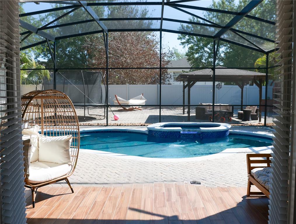 Enjoy your private outdoor oasis featuring a resurfaced pool and a heated jacuzzi—perfect for relaxing or entertaining year-round. The home boasts ceramic flooring throughout, fresh interior and exterior paint, and spacious, light-filled rooms.