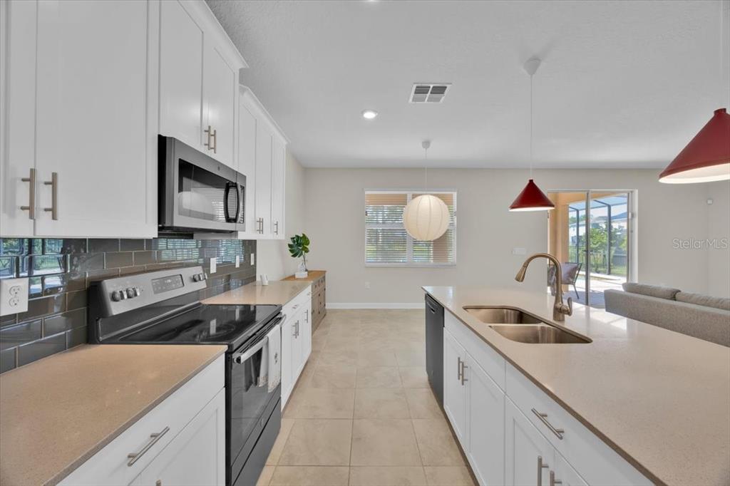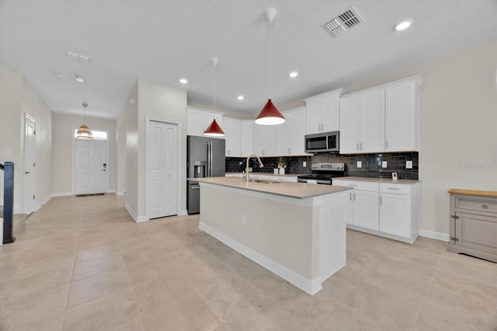 BIG SAVINGS – PRICE DROP plus SELLER’S CREDIT plus LENDER’S CREDIT available toward buyer’s closing costs and prepaid items (Based on Loan amount with preferred lender/ASK for details and see disclaimer). This amazing, well-maintained 4-bedroom, 3-bath waterfront pool home is located in the sought-after, 24-hour guard-gated Providence community and offers the perfect blend of comfort, style, and Florida lifestyle living. Featuring ceramic tile throughout main areas, an open-concept family room, kitchen, and dining space with pond and pool views, a first-floor bedroom and full bath, and a screened-in saltwater pool and spa overlooking a serene pond, this home is ideal for relaxing and entertaining. The kitchen includes 42″ cabinets, stainless steel appliances, stone countertops, a pantry, and island, while upstairs offers a spacious primary suite, two additional bedrooms, a full bath, and a large loft. Recent updates include new interior and exterior paint (2025), gutters, and an underground well-fed sprinkler system (2023), plus a fenced yard with an impressive variety of fruit-bearing trees (For those who love nature and gardening, the backyard has a variety of fruit-bearing trees and plants—mango, guava, banana, persimmon, red cashew, avocado, and more). Enjoy it with No CDD, Low HOA dues, and resort-style amenities including fitness center, tennis courts, pools, walking trails, playground, dog park, on-site dining, and golf, all conveniently located near Disney, supermarkets, shopping, dining, and major highways—perfect as a primary residence or second home. Your New HOME starts Here…Don’t miss this opportunity. Schedule your showing today before it’s gone!.