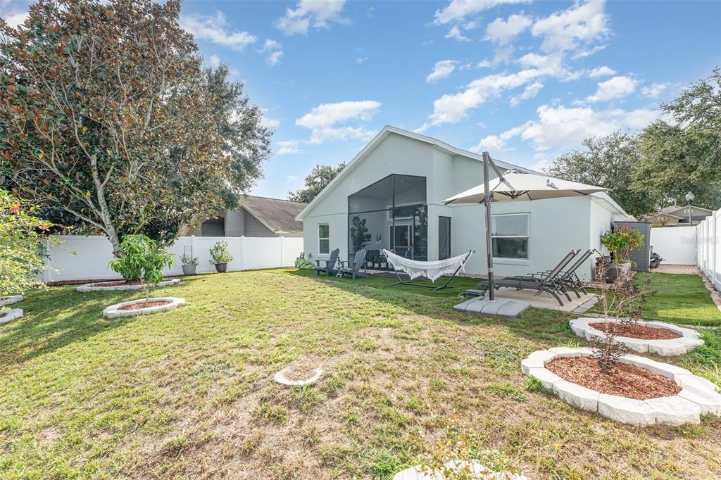 Step outside to your serene backyard with a beautiful open view, fully fenced for privacy and perfect for pets or entertaining. The tiled and screened-in lanai provides the ideal spot for morning coffee or evening unwinding. The home also features a two-car garage and a driveway that comfortably accommodates additional parking.