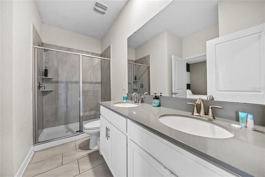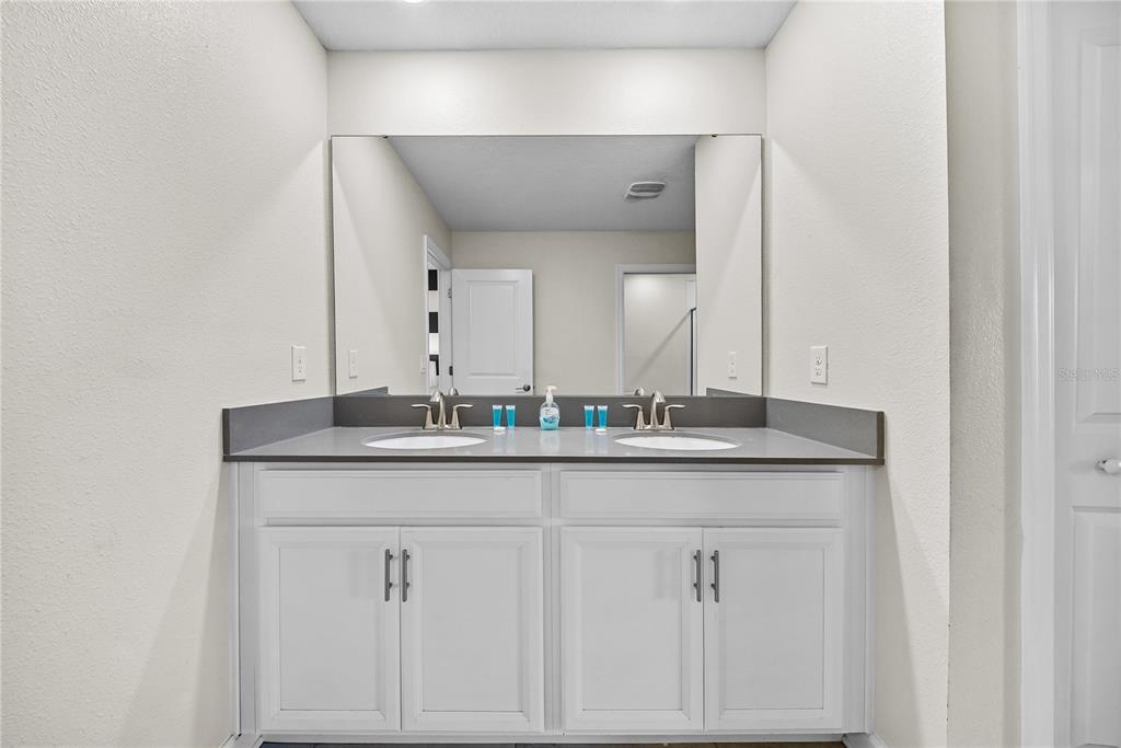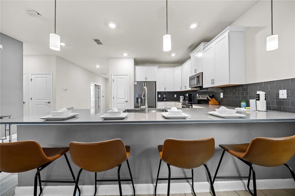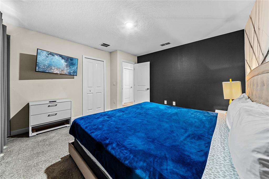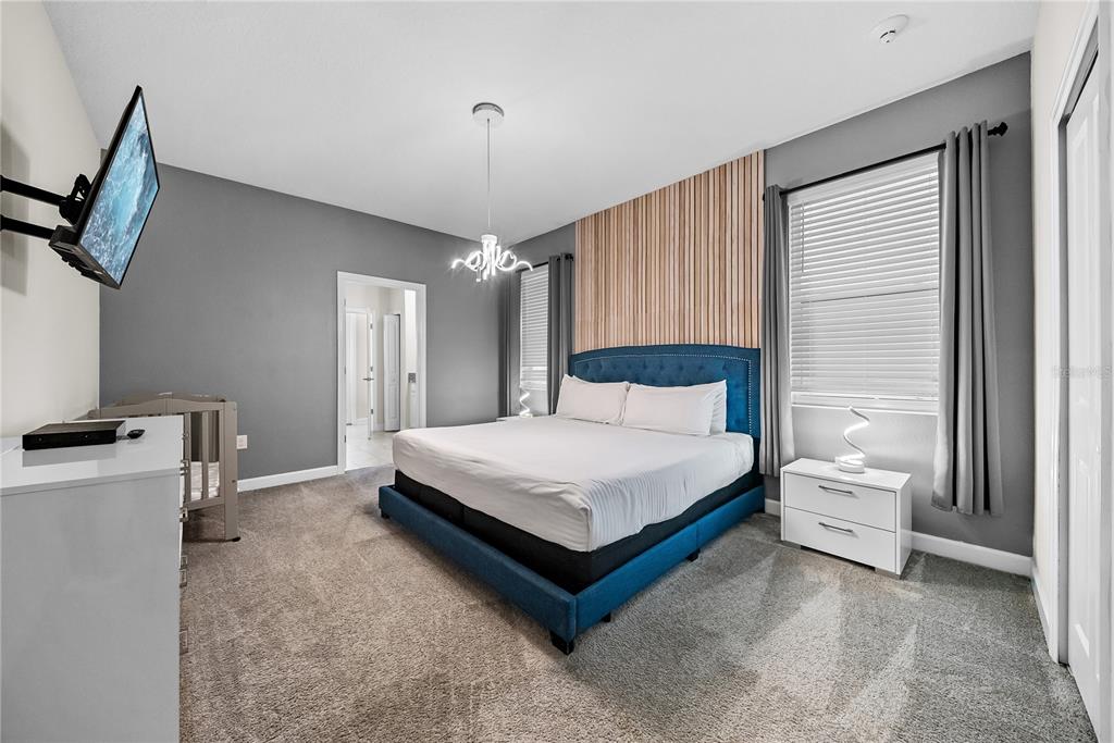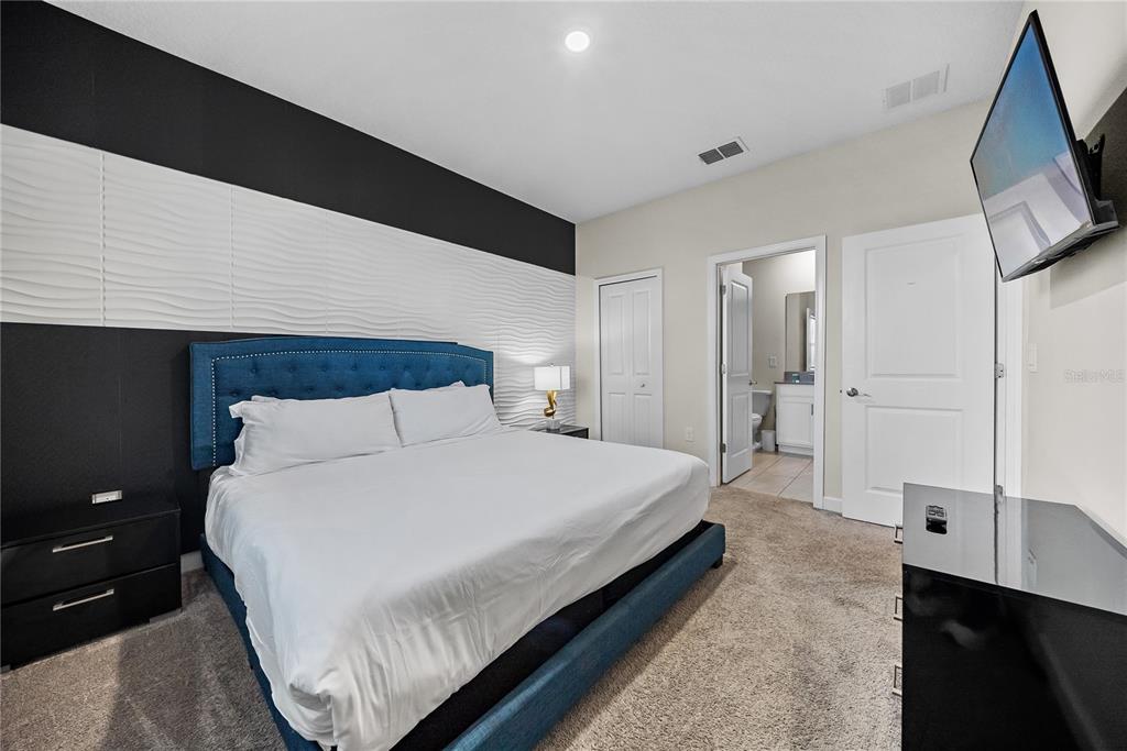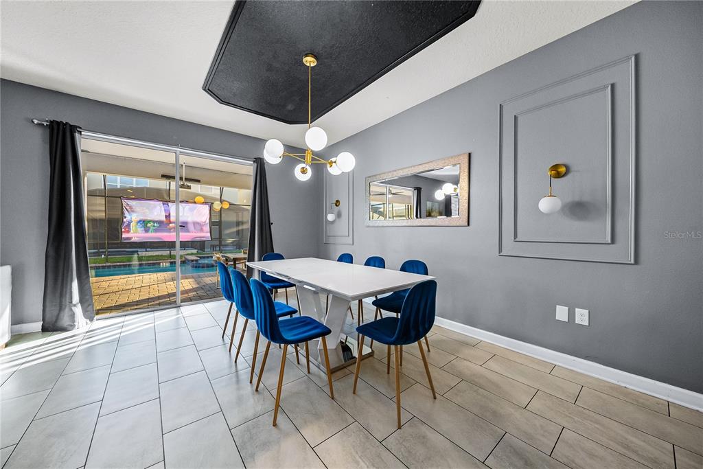 Spectacular 8-bedroom, 5-bath vacation home located in the highly desirable Storey Lake Resort, offering an unbeatable location near Orlando’s major attractions, shopping, and dining. This sought-after Santiago model, the largest and most popular floor plan in the community, is a proven income-producing property and is being sold fully furnished and turn-key. The home features a well-balanced and functional layout designed to comfortably accommodate large groups, making it ideal for multi-generational stays or short-term rental use. The first floor welcomes you with an inviting foyer and includes a full bedroom, a spacious kitchen with large breakfast bar and pantry, and open living and dining areas enhanced by modern finishes and quartz countertops throughout. Sliding glass doors lead to a covered patio and screened private pool, creating seamless indoor-outdoor living. The main level also includes a custom themed game room equipped with a VR machine, while upstairs you’ll find a spacious loft/media area, additional themed spaces, and a conveniently located laundry room. The second level features the remaining bedrooms and bathrooms, offering ample privacy for guests. A private movie theater and thoughtfully designed themed bedrooms further elevate the guest experience and rental appeal. Storey Lake Resort offers exceptional amenities, including a resort-style clubhouse, fitness center, water park with slides and lazy river, tiki bar, playgrounds, and basketball, volleyball, and tennis courts. Located approximately 4 miles from Walt Disney World and minutes from Universal Studios, SeaWorld, and major highways, this property delivers both lifestyle and investment potential. Property management information and rental financials available upon request. An excellent opportunity for investors or buyers seeking a high-performing vacation rental in one of Central Florida’s most sought-after communities.