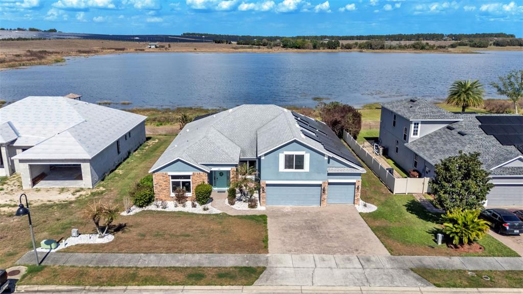 This spacious waterfront retreat features 3,424 square feet of comfortable living area, an abundance of natural lighting, recessed built-in shelving, inside utility room, generous kitchen with granite countertops, breakfast bar, and eat-in kitchenette area, separate formal dining, primary bedroom suite overlooking Lake Mabel with ensuite bath, garden tub, separate shower and vanity area. Additional highlights include a three-car garage and a beautiful, refreshing pool with lighting, auto-cleaning and customizable fountain, encased inside of a substantial screened patio, overlooking a sizeable backyard with amazing views of Lake Mabel. This home is situated at an enviable vantage point of Cape Canaveral. Every NASA launch feels like a private spectacle unfolding just beyond your backyard. Recent updates include a 2022 installed roof, two A/C units installed in 2020, hot water heater replaced in 2020, upgraded windows in 2020 and a leased solar panel system providing massive electricity savings. This Lake Wales retreat is convenient to Bok Tower Gardens, Spook Hill, the Lake Wales History Museum and all that Lake Wales has to offer!