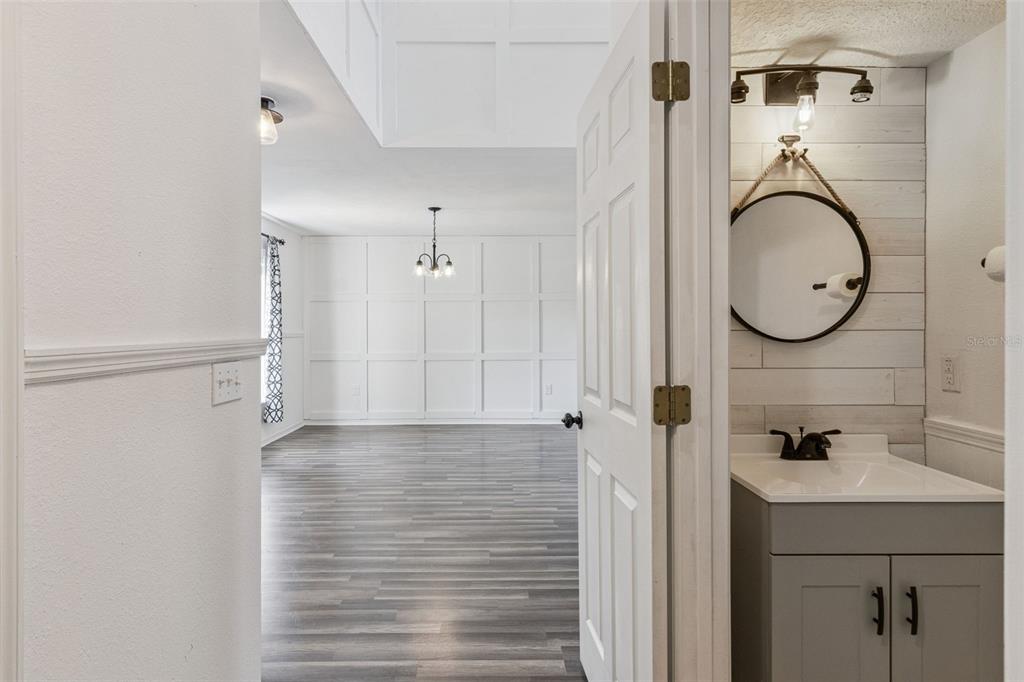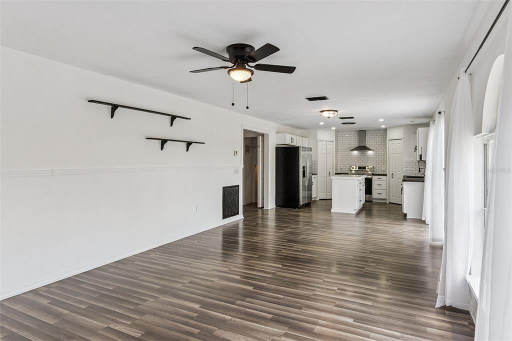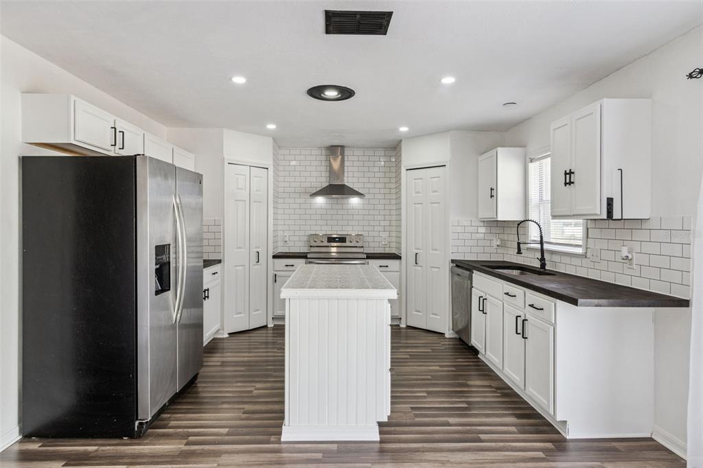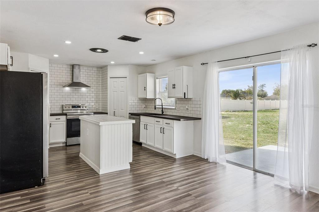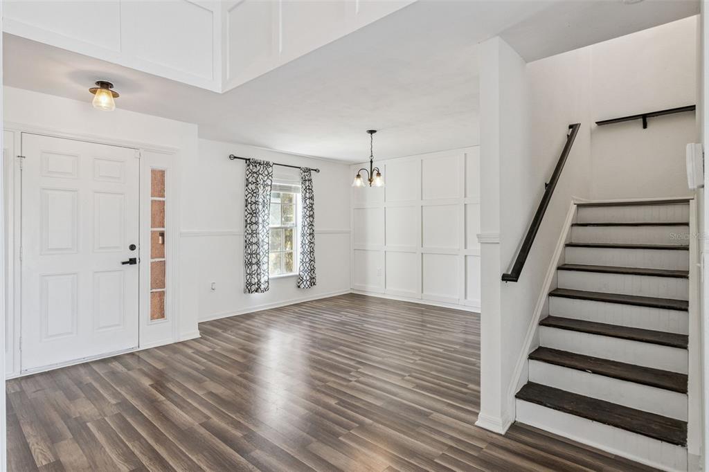 **** Newly priced at $339,900 **** This masterfully crafted residence embodies the essence of Florida living at its finest. Nestled on a spacious ~1/3-acre lot, this home boasts an impressive array of feaures and upgrades, all completed just a year ago. These improvements include wood-inspired laminate flooring throughout, updated faucets and ceiling fans, custom framing and woodwork, and new ceramic tile and backsplashes in the bathrooms. Additionally, the home enjoyes a custom-built movie theater, along with a custom-built wine rack and smart, color-changing recessed lighting in the kitchen. The property boasts 4 bedrooms, 2.5 bathrooms, a versatile loft, a media room, and a 2-car garage. The moment you step through the front door of this 2,817 SF, exquisitely appointed home, you’re greeted by a soaring two-story foyer that sets the tone for an inviting and memorable experience. The expansive formal dining room decorated with beautiful custom made wine rack and chandelier is perfect for hosting gatherings. The kitchen is a chef’s delight, featuring crisp white wood cabinetry adorned with a subway-tile backsplash, expansive butcher-block countertop space and a freestanding island, plus stainless-steel appliances—including a refrigerator, range, dishwasher, and microwave—along with a freestanding hood, undermount sink, and oil-rubbed bronze faucet and fixtures. A cozy breakfast nook provides a spot for casual meals or lively family conversations. Beyond the kitchen is the family room, where you can relax with loved ones or step through the sliding glass doors into the sprawling backyard. The first floor is completed by a well-appointed laundry room with a front-loading touchscreen washer/dryer and a beautiful half bath. Ascending to the second floor, you’ll find a luxurious primary suite designed as a private retreat. The ensuite bathroom exudes spa-like luxury with a garden tub, separate shower stall, white penny-tile flooring and backsplash for a classic, elegant look, and walk-in closet for exceptional organization. Three additional bedrooms share a fully upgraded secondary bathroom, thoughtfully designed with double sinks, upgraded penny-tile flooring and backsplash and a stylish tub/shower combo. A spacious loft completes the second floor, offering endless possibilities such as a game room or flexible living area. Step outside to your huge backyard—perfect for outdoor entertaining, family gatherings, or soaking up the Florida sunshine. The seamless indoor-outdoor flow makes this home an entertainer’s dream. Located in the vibrant Poinciana community, the property offers easy access to major highways, hospitals, medical facilities, dining, and shopping options. This home isn’t just a residence—it’s a lifestyle. Experience the perfect blend of elegance and everyday comfort in this extraordinary home.