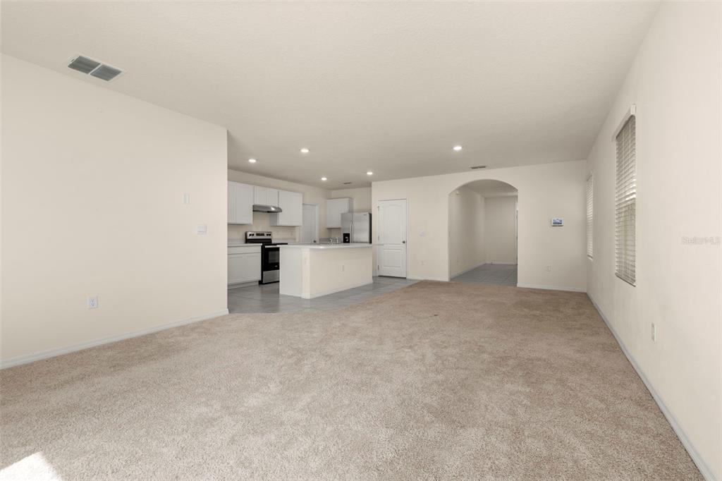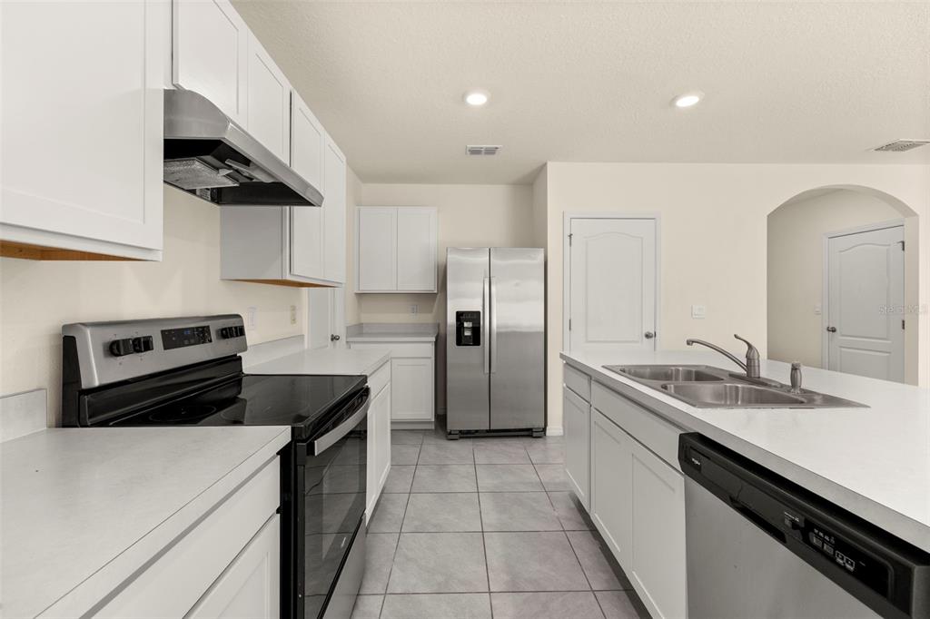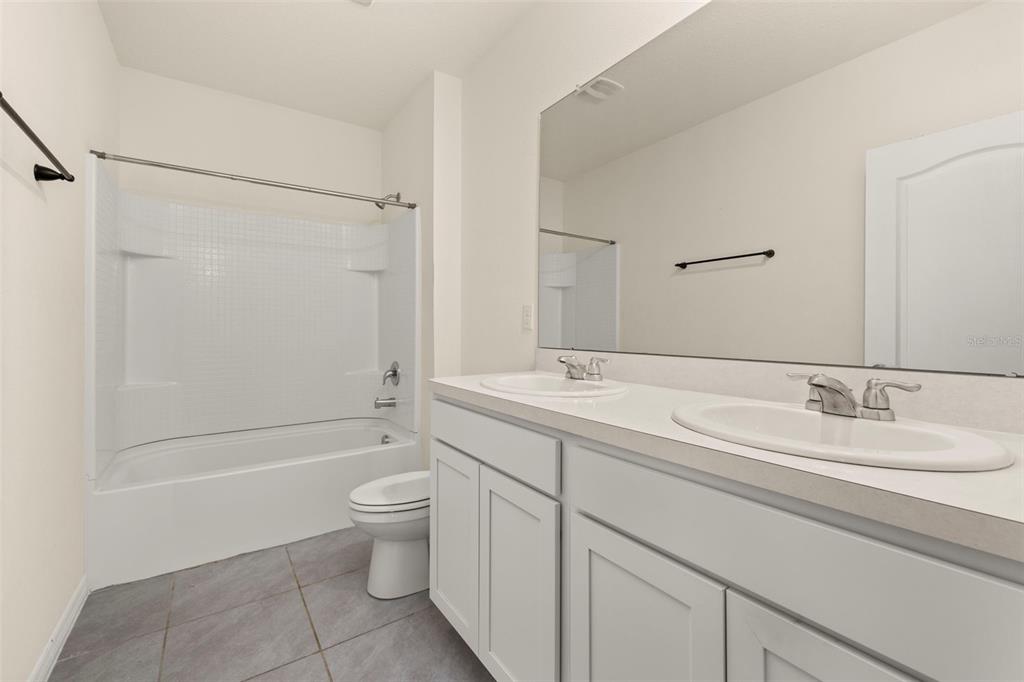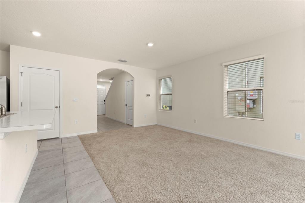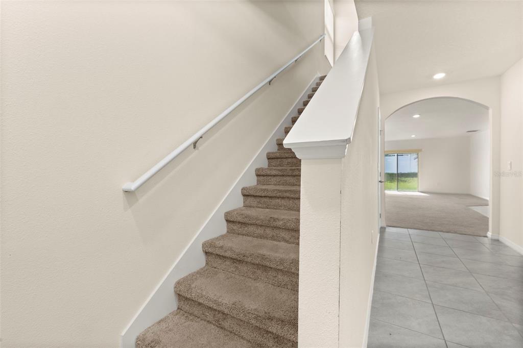 This well-designed 5 bedroom, 3 bathroom residence offers comfort, functionality, and a prime location near shopping, dining, and Disney attractions. The first floor includes a versatile bedroom ideal for guests or a home office, along with a spacious open-concept living and dining area that seamlessly connects to the kitchen, complete with ceramic tile flooring, dishwasher, stove, and refrigerator. Upstairs, a generous loft provides additional living space, accompanied by the conveniently located laundry room. The primary suite features a private bath, and three additional bedrooms share a full bath, creating a practical and comfortable second-floor layout.