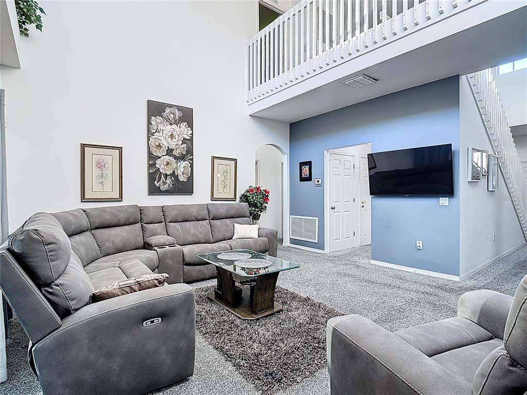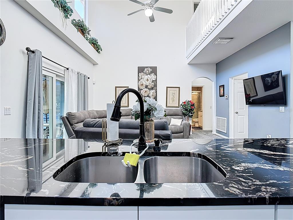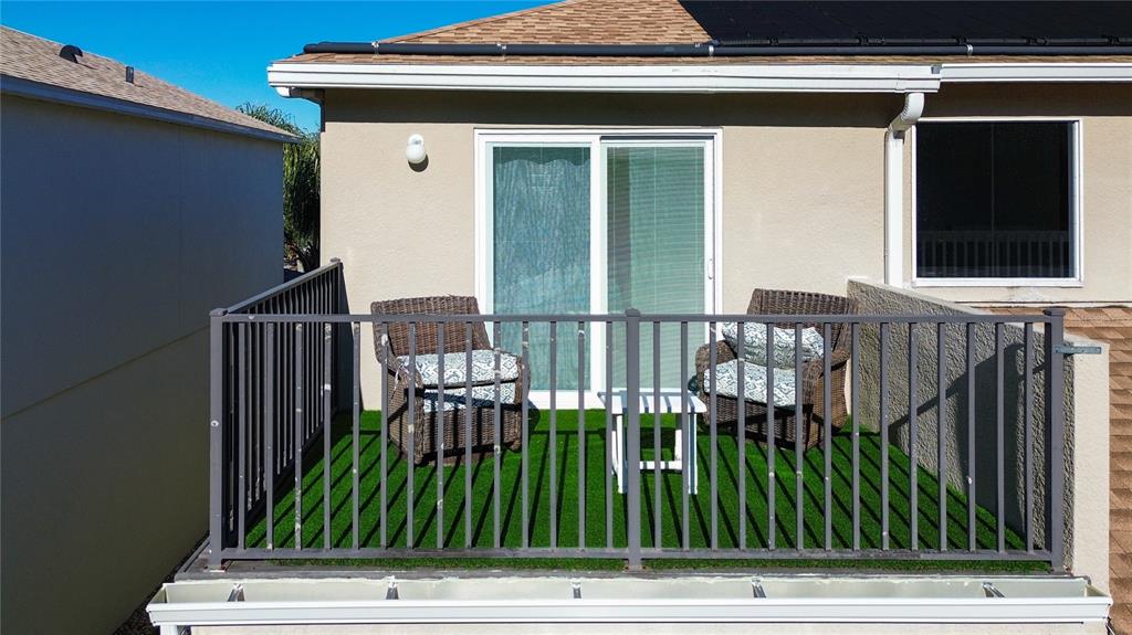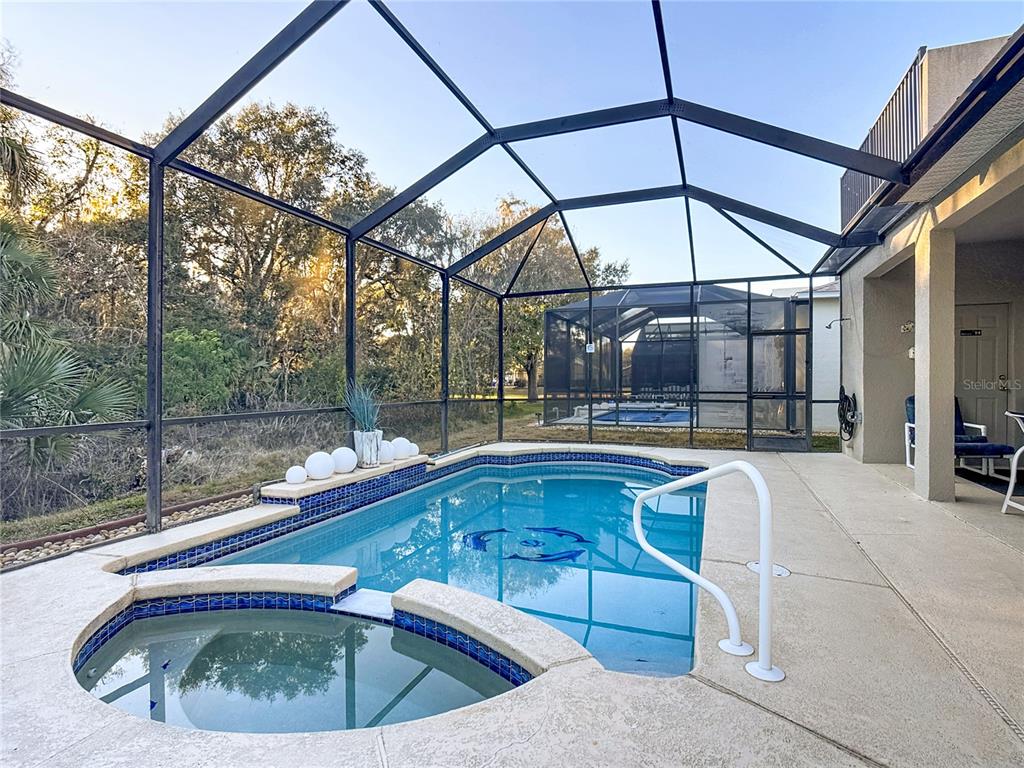 Come enjoy this spacious 5-bedroom, 3 full bath, and 2 half bath fully furnished home featuring beautiful water and conservation views. Located just 15 minutes from Disney, this property is perfect as a vacation rental investment or your own private getaway, with short-term rentals allowed. A brick-paved driveway welcomes you to the entrance of the home. Inside, the living and dining areas overlook the pool and peaceful conservation views, creating a relaxing atmosphere. Step outside to a large private pool and spa with a covered lanai, ideal for entertaining or unwinding. The home features a large dining room and a separate eat-in kitchen, offering plenty of space for family and guests. Two bedrooms are conveniently located on the main floor. The spacious primary suite includes a private balcony and an en-suite bathroom with dual sinks, a garden tub, and a separate shower.