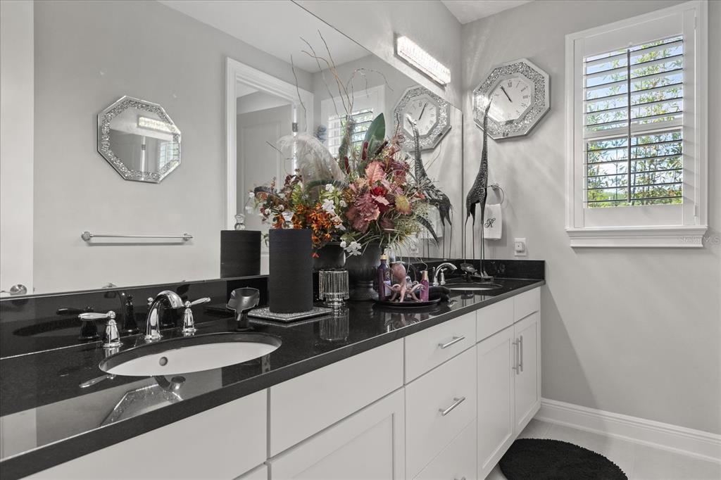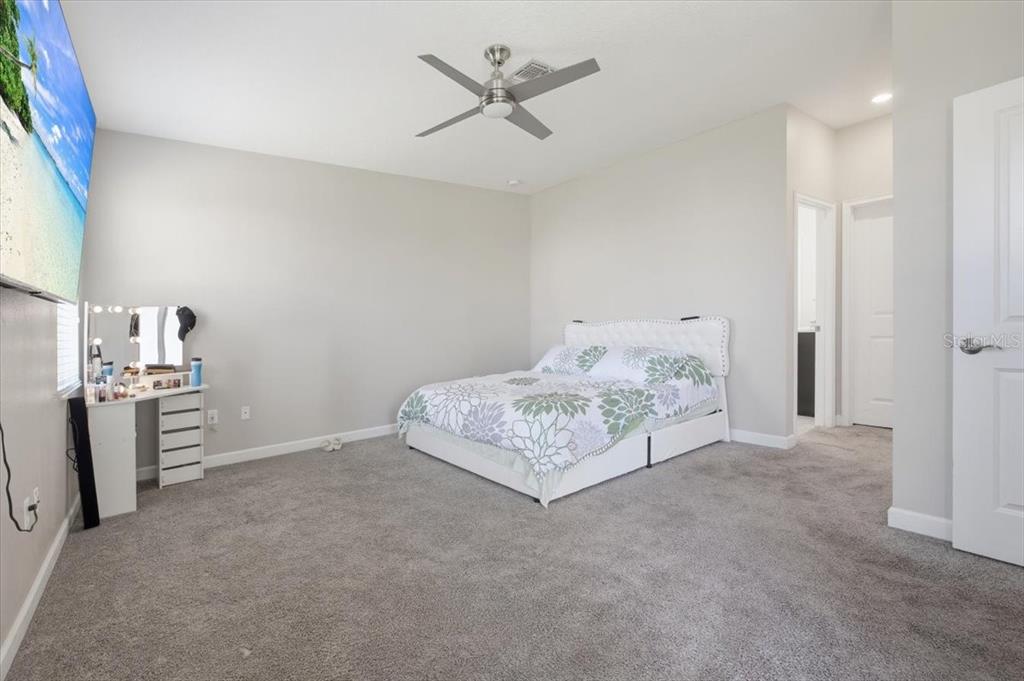 Discover the perfect blend of luxury, comfort, and convenience with the stunning Mahogany Grand home by Pulte. Nestled on a homesite with no rear neighbors, this two-story home with 4 bedrooms, an enclosed flex room, 3.5 bathrooms, and 3-car garage offers everything you need for an effortless lifestyle. The open concept living area flows effortlessly, combining the kitchen, café, and gathering room into one expansive space that feels airy and inviting. The kitchen is a true focal point, equipped with Whirlpool stainless steel appliances, including a built-in cooktop, the kitchen is a dream for culinary enthusiasts. It also includes soft-close cabinetry, which are beautifully accented by quartz countertops, a decorative tile backsplash, and a granite single-bowl sink. The pocket sliding glass doors, which connect the living area to the covered lanai, flood the home with natural light, creating a bright, vibrant environment that brings the outdoors in. The private Owner’s Suite, located on the first floor at the back corner of the home for ultimate privacy, offers a tranquil retreat with a spa-inspired en suite bathroom, walk-in closet, linen closet, walk-in shower with rain shower head, and enclosed toilet. The enclosed flex room offers a versatile space that can be used as an office, home gym, or playroom. The Mahogany Grand also features two spare bedrooms located on the first floor in the opposite back corner of the home, allowing privacy for everyone. Upstairs, the expansive loft provides additional space for leisure, and the fourth bedroom features its own walk-in closet and private bathroom. Every detail of this home has been carefully curated, from the wood-look tile flooring throughout the main living areas, bathrooms, and laundry room to the plush, stain resistant carpet in the bedrooms and upstairs loft. For those who appreciate modern technology, this home comes equipped with a smart thermostat, video doorbell, smart door lock, smart garage door opener, and LED downlights, ensuring your home is as connected as it is beautiful. Schedule a tour today!