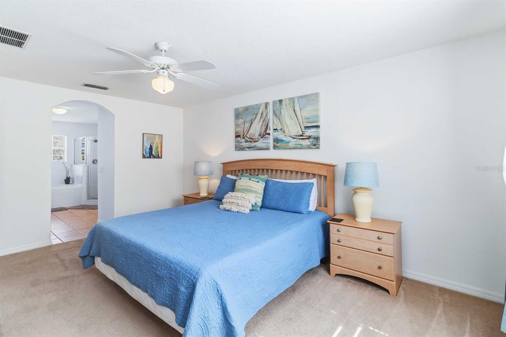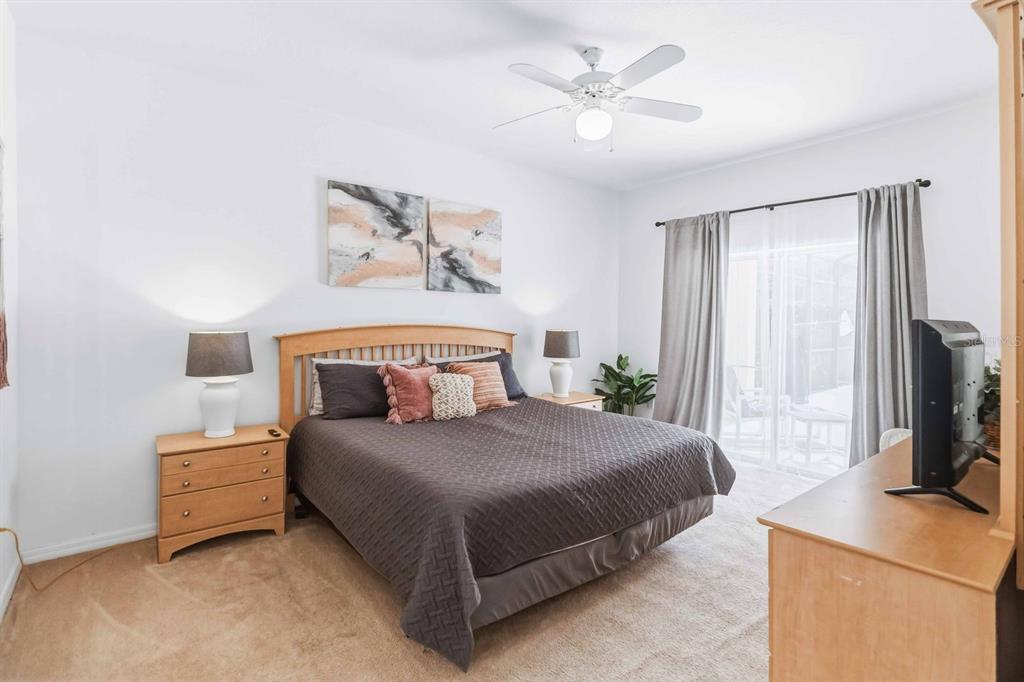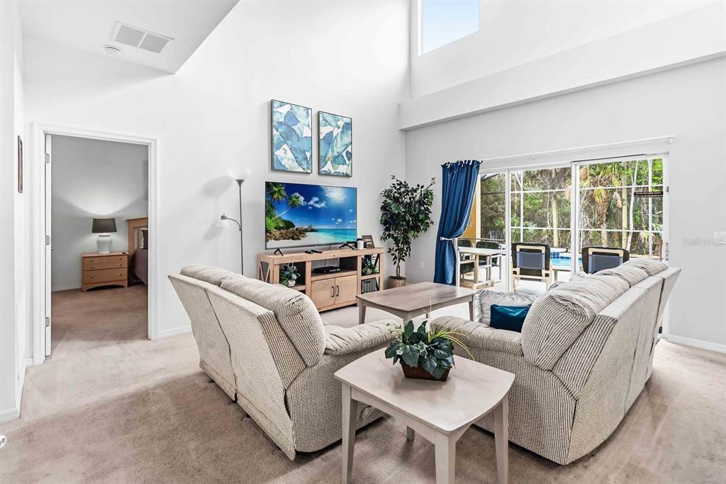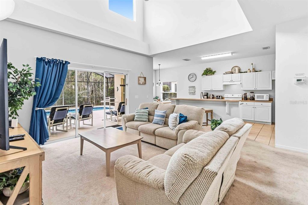 One or more photo(s) has been virtually staged. Rare opportunity to own this beautiful, fully furnished, 4-bedroom, 3.5-bath south-facing pool home in the highly desirable gated Cumbrian Lakes community. This property boasts a larger lot which overlooks a peaceful conservation area, offering privacy and serene views. The home features two spacious master suites with en-suite bathrooms, along with a vaulted ceiling in the family room that enhances the open and airy feel. Enjoy Florida living at its best with a newly painted, extended pool deck, a resurfaced pool and spa, and a huge, covered lanai, perfect for relaxing or entertaining. Recent updates add to the move-in-ready appeal. Cumbrian Lakes offers nature trails, a children’s park, and a community lake, all within a secure gated setting. The HOA fee includes lawn maintenance, and the community allows short-term rentals, making this an excellent opportunity for investors or a wonderful full-time residence. Be quick—this rare home won’t last!