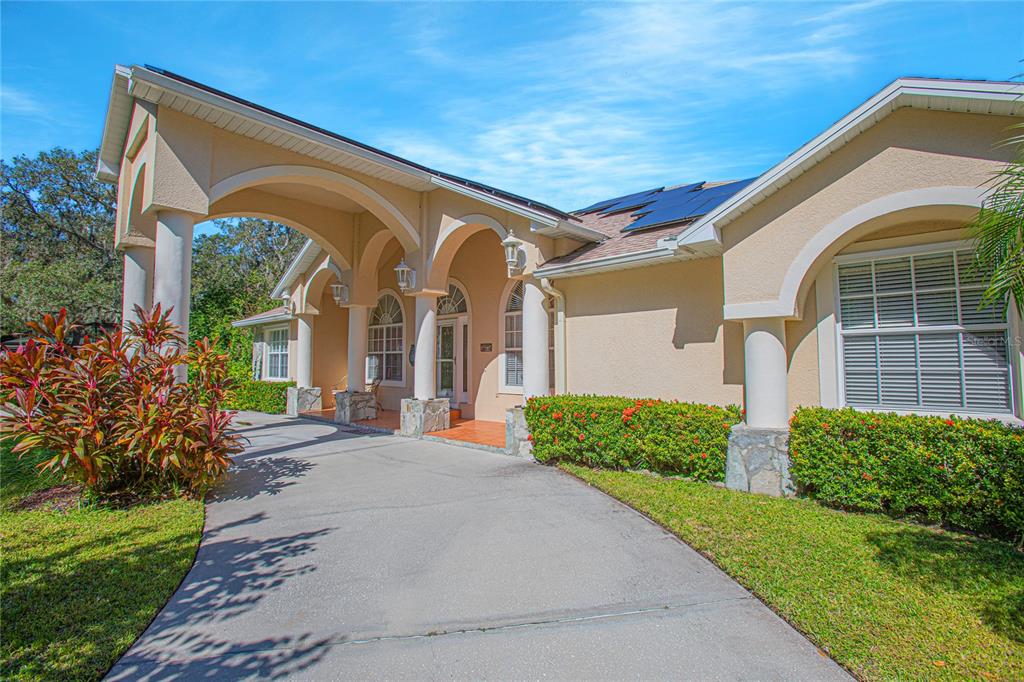 New Roof installed 2022 with a 25-year warranty for peace of mind, electrical and Plumbing systems updated in 2012, ensuring efficiency and safety, Expansive 6-Car Garage* (1250 sq ft) with sleek epoxy floors and automatic Screen Doors for easy access and ventilation. perfect for car enthusiasts or extra storage, sprinkler system connected to a well, maintaining lush grounds effortlessly, hurricane Shutters for added protection during storm season, elegant crown Molding and rounded corners throughout enhancing the home’s aesthetic appeal, 29 Fully Paid Off Solar Panels installed in 2018 for energy efficiency and savings, city Water available but not connected ($7k to connect) for added convenience, Well Pump replaced in 2020, ensuring reliable water supply, Osmosis System Water Filtration (2018) for clean drinking water, original Septic System* in good standing for hassle-free maintenance, heated Saltwater Pool built in 2012 along with a protective pool cage for year-round enjoyment, stunning custom Kitchen Cabinets with soft close remodeled in 2012, complemented by luxurious granite countertops, tile flooring Throughout for easy upkeep and a modern look, all windows replaced in 2012 and fitted with blinds for privacy and energy efficiency, generator included, ensuring you’re never left without power.
