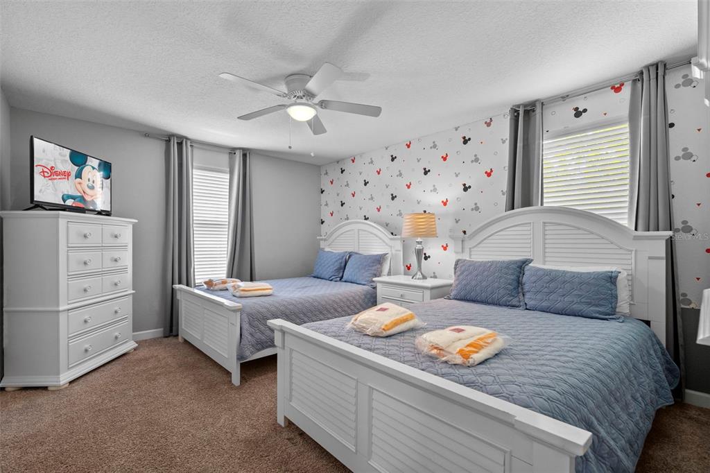 Exceptional opportunity in Storey Lake! This fully furnished 5-bedroom, 5-bath single-family home features soaring high ceilings, an oversized open floor plan, and a bright living area overlooking the private screened-in pool. Just a short walk from the clubhouse, this turnkey property is ideal for personal use or a high-performing short-term rental. The layout includes two primary suites (one on each floor), themed bedrooms, upgraded bathrooms, a modern kitchen with stainless steel appliances and granite countertops, and a full laundry room. Enjoy resort-style amenities: pool with slide, splash pad, fitness center, mini-golf, sports courts, spa, lake with kayak rentals, and 24-hour gated security. Located minutes from Disney, shopping, dining, and major highways. A rare combination of location, quality, and income potential. Schedule your showing today—motivated seller!