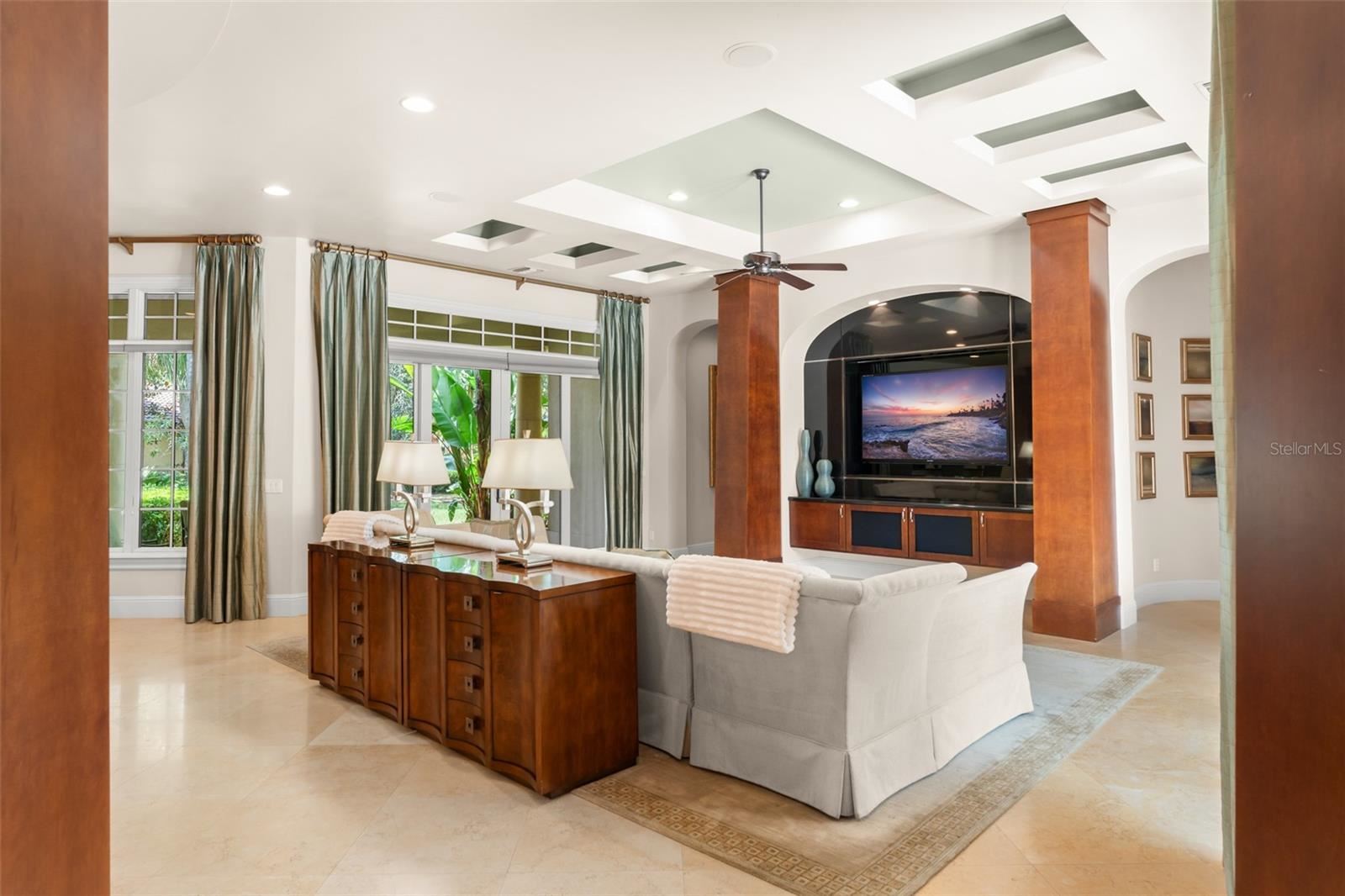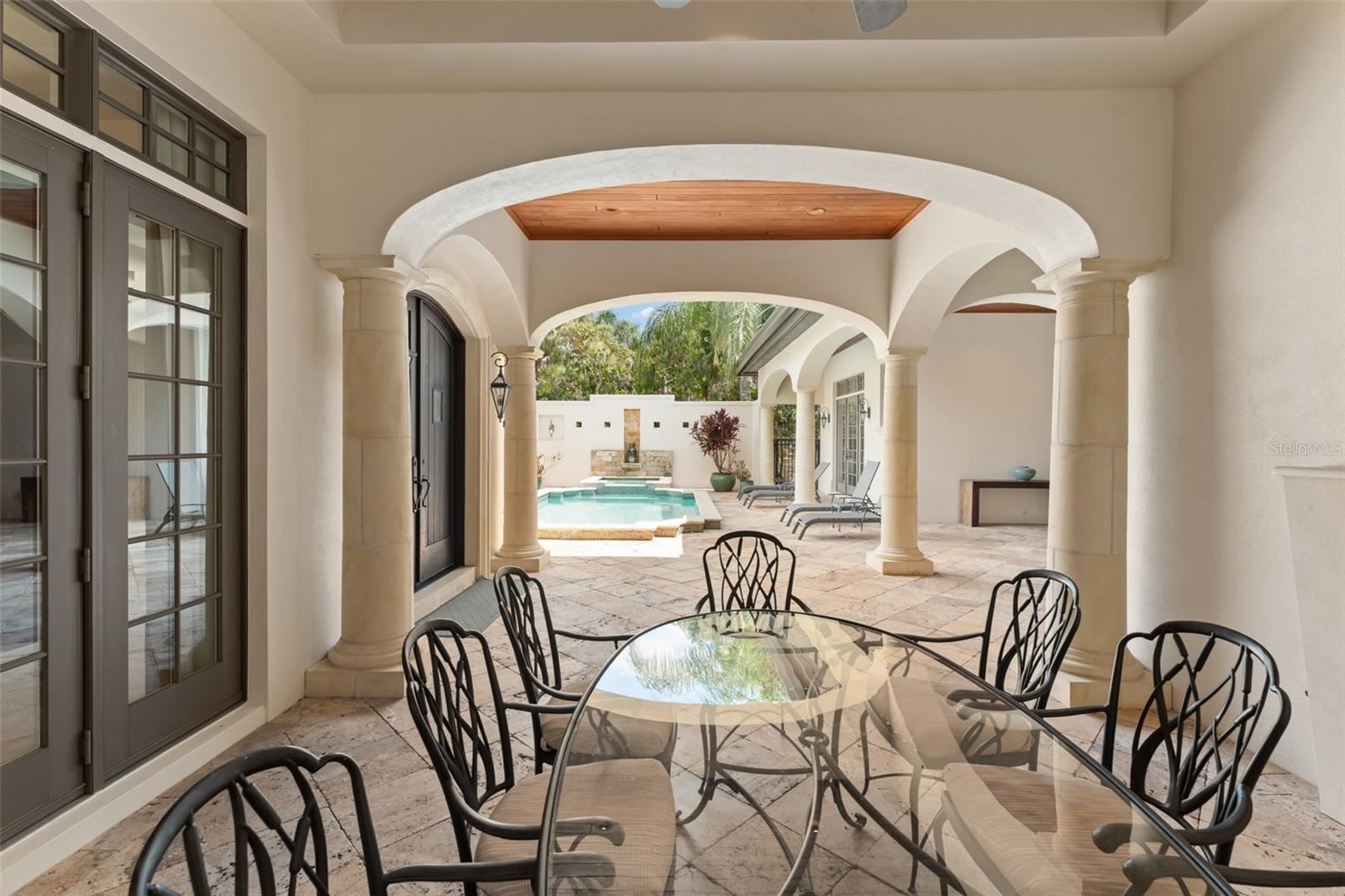 Discover the effortless blend of luxury, privacy, and modern design in this lovely Gardens of Isleworth villa. Featuring timeless elegance, this beautiful three-bedroom, four-bathroom custom villa, where every detail has been thoughtfully curated to create a refined sanctuary for everyday living and entertaining. Beyond the stately arched main entry door lies a secluded courtyard oasis””a private retreat centered around a sparkling pool, serene waterfall feature, and generous lounging areas. Whether basking in the sun or relaxing beneath the stars, this outdoor haven sets the tone for the extraordinary spaces within. Designed to embrace indoor-outdoor living, the oversized courtyard welcomes you with a seamless open-plan layout connecting the pool, summer kitchen, and a charming guest cabana. Perfect for hosting or escaping, the cabana offers a private retreat for guests or a peaceful haven for the homeowner. Inside the main residence, a sense of contemporary sophistication flows through the light-filled kitchen, elegant dining room””highlighted by a statement chandelier””and the spacious grand room. French doors throughout invite the outdoors in, offering lush views from nearly every space and extending the living area to multiple porches and verandas. The living room, centered around a calming fireplace, is the perfect spot to unwind after a long day, while the spa and cascading waterfall nearby add to the sensory appeal. Retreat to the expansive master suite, where a private porch overlooks vibrant greenery, offering a peaceful start and end to each day. Additional property highlights include a cozy morning room, a dedicated office with custom Burl wood built-ins, and a series of intimate outdoor and indoor spaces designed to inspire comfort and connection.