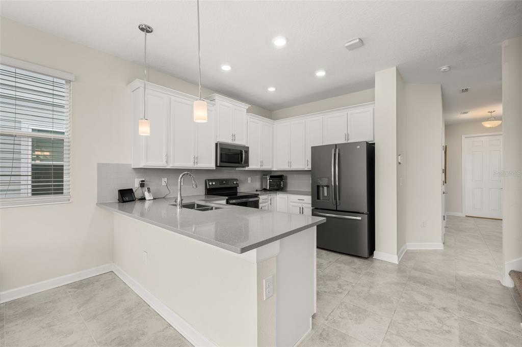 Built in 2019, this home features an OPEN-CONCEPT MAIN LEVEL connecting the KITCHEN, DINING, AND LIVING AREAS. The CHEF’S KITCHEN boasts WHITE CABINETRY WITH CROWN MOLDING, ELEGANT QUARTZ COUNTERTOPS, STYLISH BACKSPLASH, and PREMIUM APPLIANCES. A HALF BATH and GARAGE ACCESS complete the first floor.