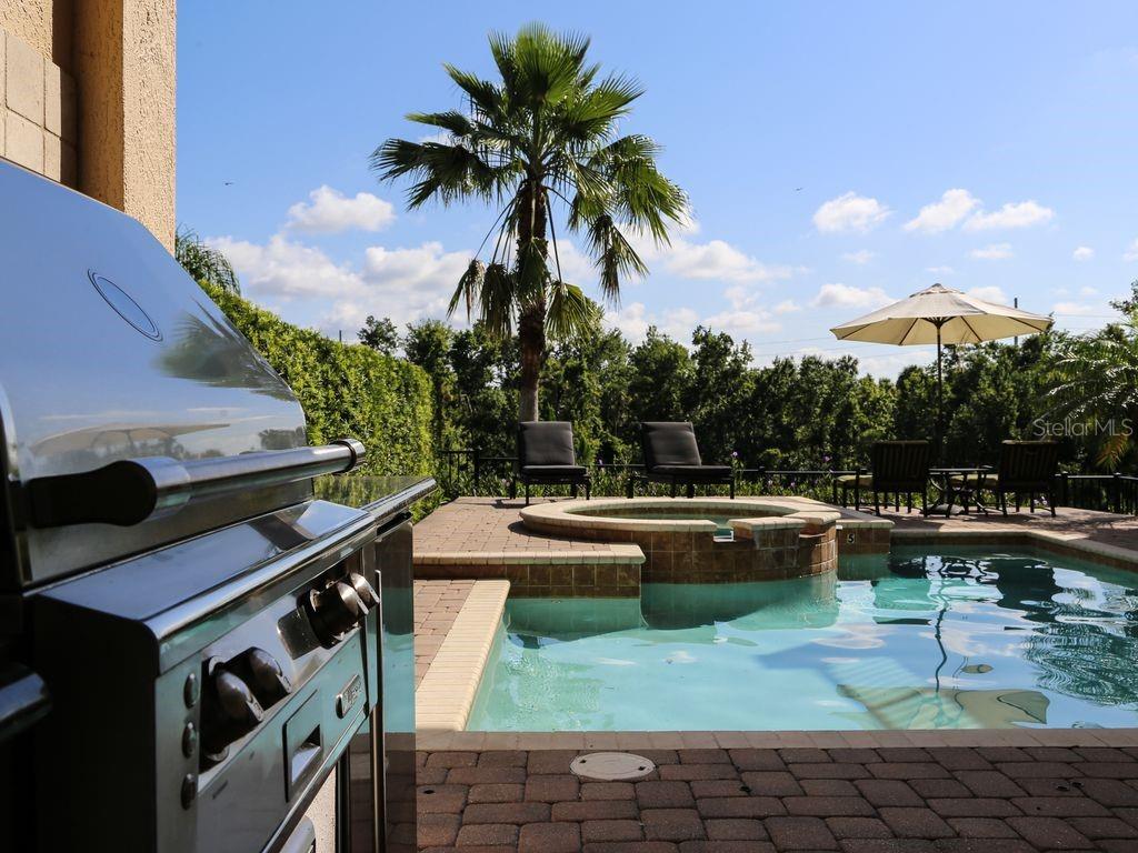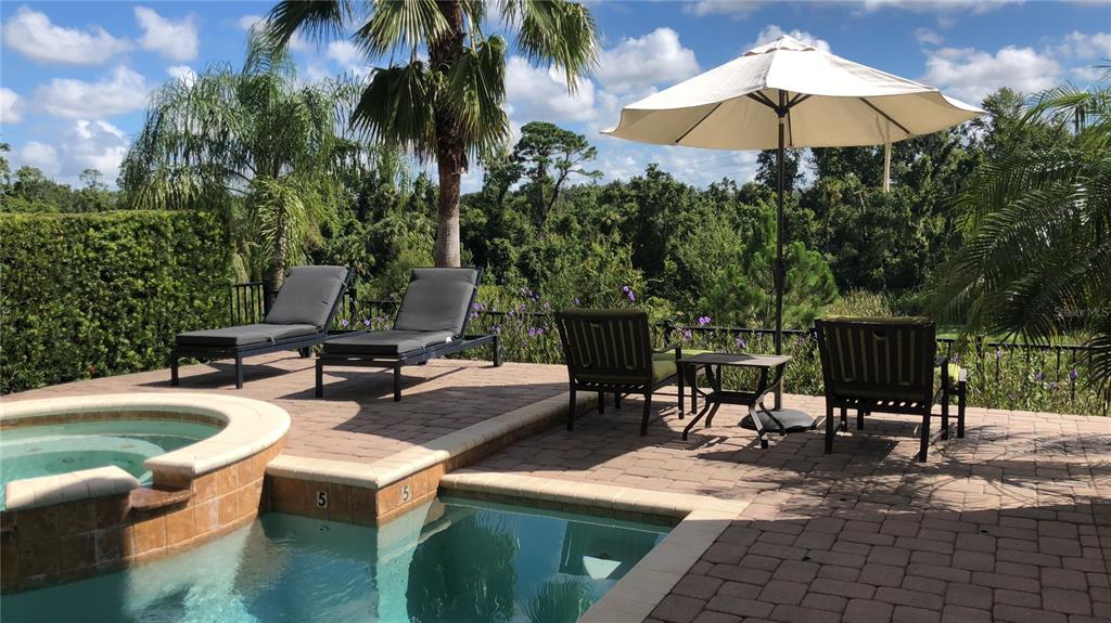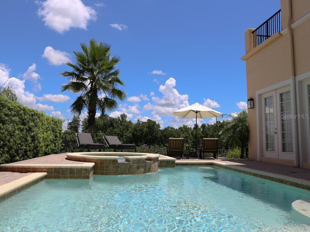 From the moment you step through the front gate and into the private courtyard , you will understand why this lovely villa is named Villa of Joy. Luxury living awaits you. This home is one of the most delightful and contemporary homes in this exclusive Community. While each room is impeccably designed, the villa maintains an environment of tranquility and relaxation. The home features 5 spacious bedrooms , all with ensuite bathrooms. The master bedroom , and two further bedrooms are located upstairs, while two bedrooms are downstairs. There are three unique living areas , perfect for families that need a lot of space.The formal living room features a built in fireplace, cathedral ceilings and modern styling surrounded with natural light from the wall of french doors. The gourmet kitchen, fully fitted with stainless steel appliances has two dining areas. The outdoor amenities will not disappoint. The pool area is paved , and boasts a summer kitchen with bbq, sink and refrigerator . From the rear of the property, either from the pool deck or viewing from the large tiled balconies above, you can enjoy a panoramic view of natural woodland and the golf course. Reunion Resort offers its own array of entertainment, amenities and restaurants and is also conveniently located minutes drive from the many other famous Orlando attractions such as Disney, Universal Studios and Sea World.