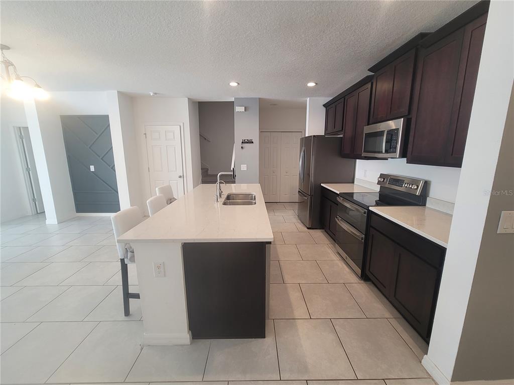 Experience effortless living in this thoughtfully designed 4-bedroom, 2.5-bath townhome with an attached two-car garage. As you enter, you’ll be welcomed by a light-filled great room that flows effortlessly into the rear lanai—perfect for relaxed indoor-outdoor gatherings. The gourmet kitchen is the heart of the home, featuring solid-surface countertops, rich espresso 42″ cabinets, stainless steel appliances, and a center island ideal for casual meals or socializing. The main floor is appointed with stylish tile throughout the shared spaces, along with a conveniently located powder room. All bedrooms are tucked away upstairs, including the spacious primary suite complete with a spa-like bathroom offering dual vanities and a walk-in shower with a rain showerhead. Cypress Hammock elevates everyday living with its community pool, splash pad, sports field, picnic pavilion, grills, and scenic walking trails. Ideally situated near the SunRail station, major roadways, shopping, dining, and within a short drive to Disney, this home delivers both luxury and location.