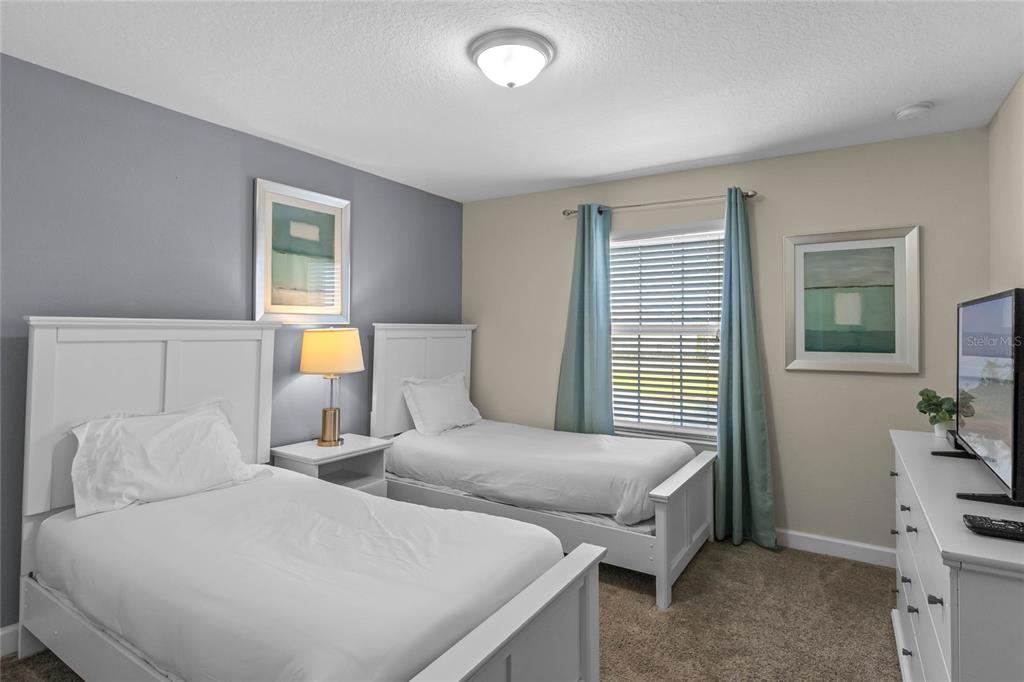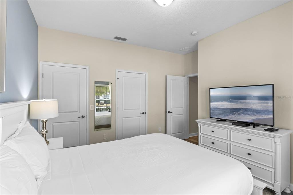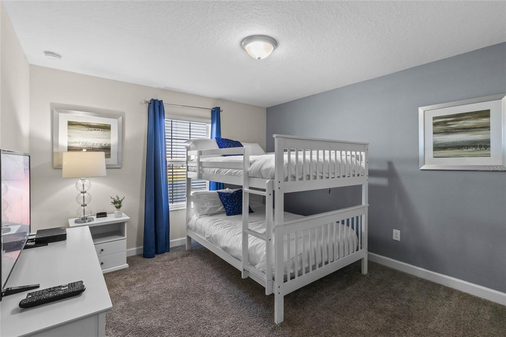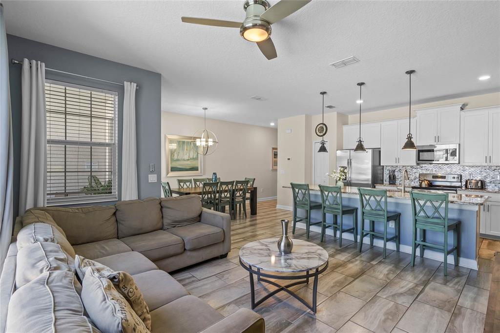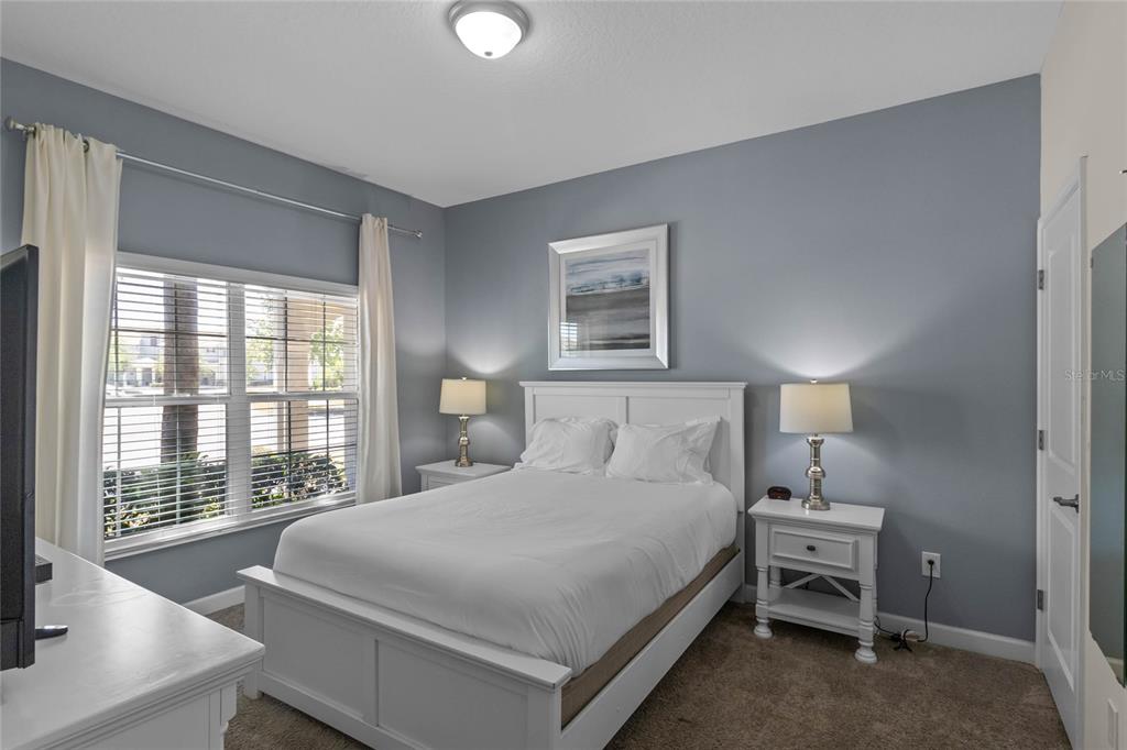 Your ultimate Orlando escape awaits in this stunning 4-bedroom, 3-bathroom townhome, complete with a private pool patio, serene water views, and located in a premier resort community just moments from Disney! Step inside this fully furnished residence to discover a bright and airy open-plan living space on the main level, seamlessly connecting the kitchen, dining area, and living room. Durable and stylish ceramic tile flooring flows throughout the downstairs area. The gourmet kitchen is a chef’s delight, featuring a massive central island perfect for gathering, sleek granite countertops, modern stainless steel appliances, and beautiful white cabinetry offering ample storage. Convenience is key with a spacious bedroom and a full bathroom also located on this main level, offering flexibility. Ascend the stairs to find the private quarters. The expansive primary suite serves as a true retreat, beautifully furnished with a comfortable king-sized bed. Its ensuite bathroom provides a spa-like experience with dual sinks set in a generous vanity, a private toilet room for added privacy, and a relaxing tub/shower combo. Two additional well-appointed bedrooms are located upstairs, sharing access to the third full bathroom. For added convenience, an upstairs laundry closet houses the washer and dryer. Throughout the home, thoughtful details elevate the living experience, including custom light fixtures and stylish design accents that contribute to its modern and inviting atmosphere. Beyond the private screened patio with its own sparkling pool overlooking the water, this property benefits from its location within Storey Lake – an award-winning, gated, resort-style community. Residents and guests enjoy access to an incredible array of amenities: indulge in the multi-million dollar clubhouse, stay active in the fitness center or on the basketball court, relax in poolside cabanas or hot tubs, splash down the water slide, float along the lazy river, rent kayaks for lake adventures, let the little ones enjoy the kids’ splash pad, challenge friends to mini-golf, or simply unwind by the spectacular lakefront pool and deck. Peace of mind comes standard, as the HOA dues conveniently cover exterior maintenance, including the roof, along with exterior property insurance. Location is paramount! Situated close to abundant shopping and diverse dining options, the magic of Walt Disney World and the thrills of Universal Studios are just a short drive away, making this an ideal hub for exploring all Orlando has to offer. Offered fully furnished, this townhome is a turnkey solution, presenting an exceptional opportunity as a high-demand vacation rental investment or simply a delightful personal second home ready for immediate enjoyment. Don’t miss the chance to own a piece of the magic in one of Orlando’s premier resort communities!