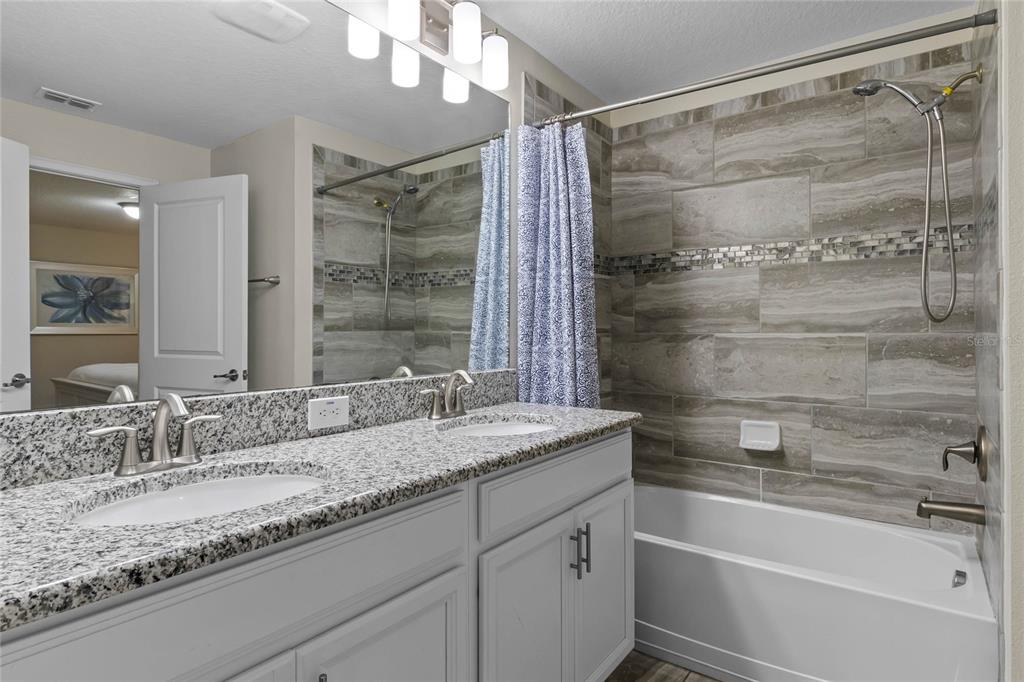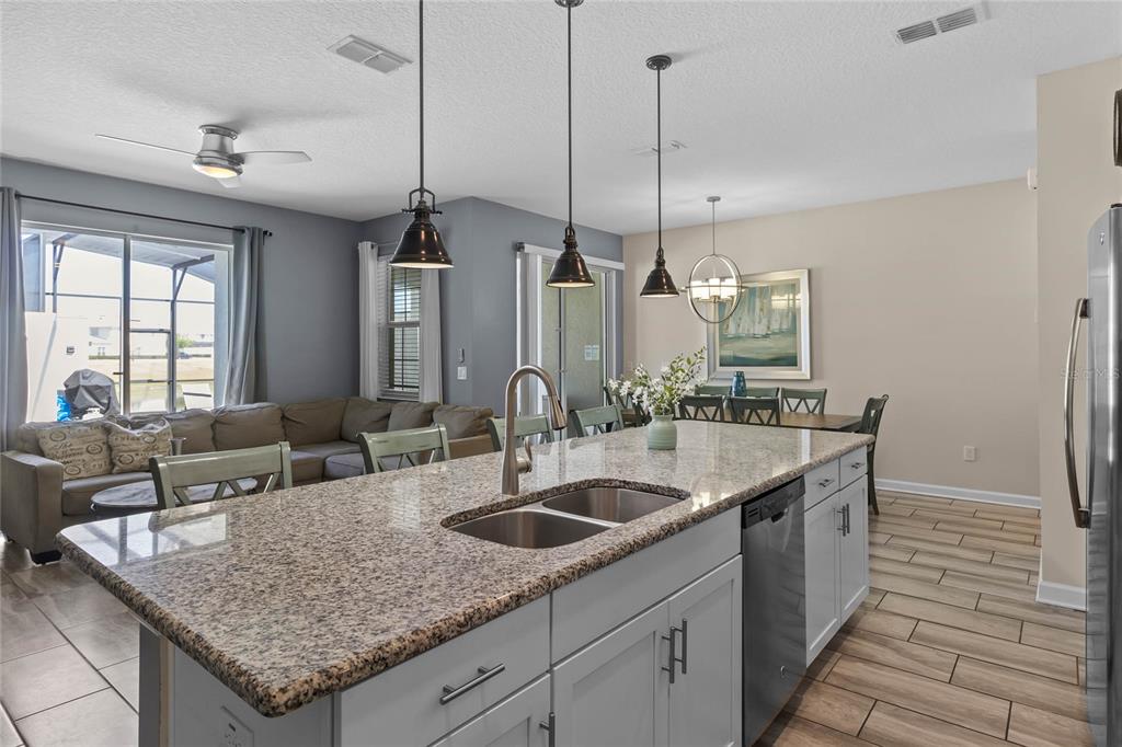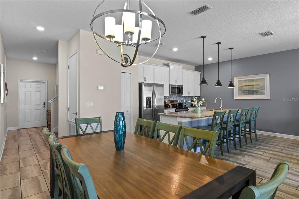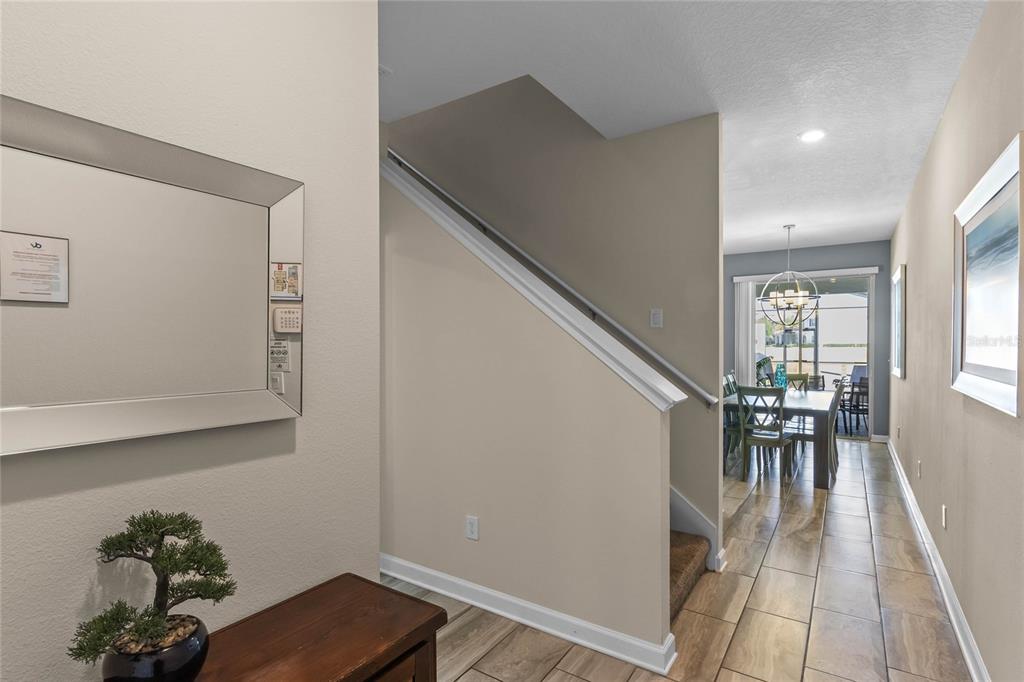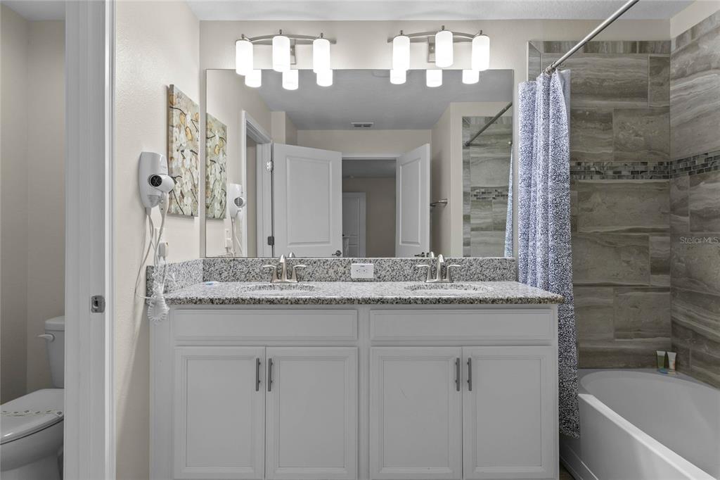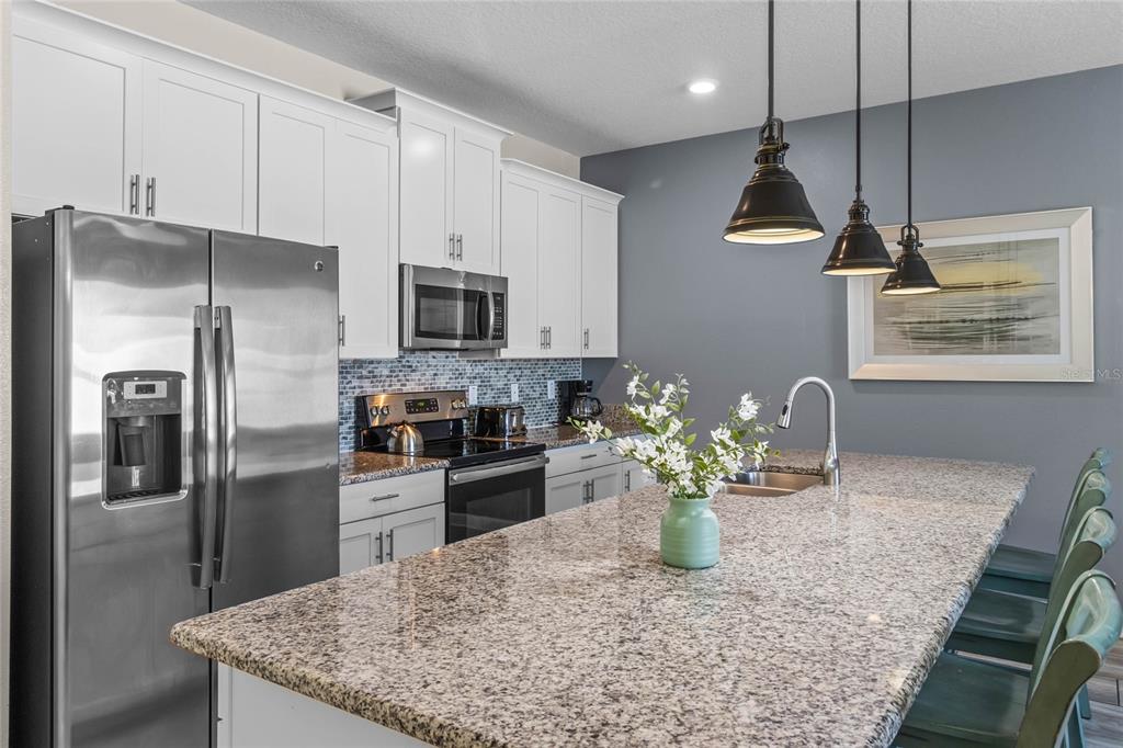Your ultimate Orlando escape awaits in this stunning 4-bedroom, 3-bathroom townhome, complete with a private pool patio, serene water views, and located in a premier resort community just moments from Disney! Step inside this fully furnished residence to discover a bright and airy open-plan living space on the main level, seamlessly connecting the kitchen, dining area, and living room. Durable and stylish ceramic tile flooring flows throughout the downstairs area. The gourmet kitchen is a chef’s delight, featuring a massive central island perfect for gathering, sleek granite countertops, modern stainless steel appliances, and beautiful white cabinetry offering ample storage. Convenience is key with a spacious bedroom and a full bathroom also located on this main level, offering flexibility. Ascend the stairs to find the private quarters. The expansive primary suite serves as a true retreat, beautifully furnished with a comfortable king-sized bed. Its ensuite bathroom provides a spa-like experience with dual sinks set in a generous vanity, a private toilet room for added privacy, and a relaxing tub/shower combo. Two additional well-appointed bedrooms are located upstairs, sharing access to the third full bathroom. For added convenience, an upstairs laundry closet houses the washer and dryer. Throughout the home, thoughtful details elevate the living experience, including custom light fixtures and stylish design accents that contribute to its modern and inviting atmosphere. Beyond the private screened patio with its own sparkling pool overlooking the water, this property benefits from its location within Storey Lake – an award-winning, gated, resort-style community. Residents and guests enjoy access to an incredible array of amenities: indulge in the multi-million dollar clubhouse, stay active in the fitness center or on the basketball court, relax in poolside cabanas or hot tubs, splash down the water slide, float along the lazy river, rent kayaks for lake adventures, let the little ones enjoy the kids’ splash pad, challenge friends to mini-golf, or simply unwind by the spectacular lakefront pool and deck. Peace of mind comes standard, as the HOA dues conveniently cover exterior maintenance, including the roof, along with exterior property insurance. Location is paramount! Situated close to abundant shopping and diverse dining options, the magic of Walt Disney World and the thrills of Universal Studios are just a short drive away, making this an ideal hub for exploring all Orlando has to offer. Offered fully furnished, this townhome is a turnkey solution, presenting an exceptional opportunity as a high-demand vacation rental investment or simply a delightful personal second home ready for immediate enjoyment. Don’t miss the chance to own a piece of the magic in one of Orlando’s premier resort communities!