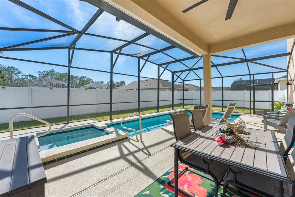 Welcome to this exceptional POOL home in GUARD GATED TRAFALGAR VILLAGE! Zoned for Short Term & Long Term Rentals and also perfect for your primary Florida residence! Enjoy ultimate privacy with ONLY ONE NEIGHBOR and a fully fenced backyard – perfect for relaxing, entertaining, or hosting guests. This home features an amazing, highly functional floor plan with TWO SPACIOUS PRIMARY SUITES – ONE ON EACH FLOOR – ideal for multi-generational living. This property offers both lifestyle and income potential. The HOA PROVIDES OUTSTANDING VALUE: full pool service (chemicals included!), lawn care (excluding shrubs), DAILY garbage removal (minus Sunday) —making ownership truly low maintenance. HOA includes a large pool area, playground, dock, volleyball and basketball. This home checks all the boxes with space, pool, privacy, convenience, and resort-style community features! Come and see all this amazing home has to offer!