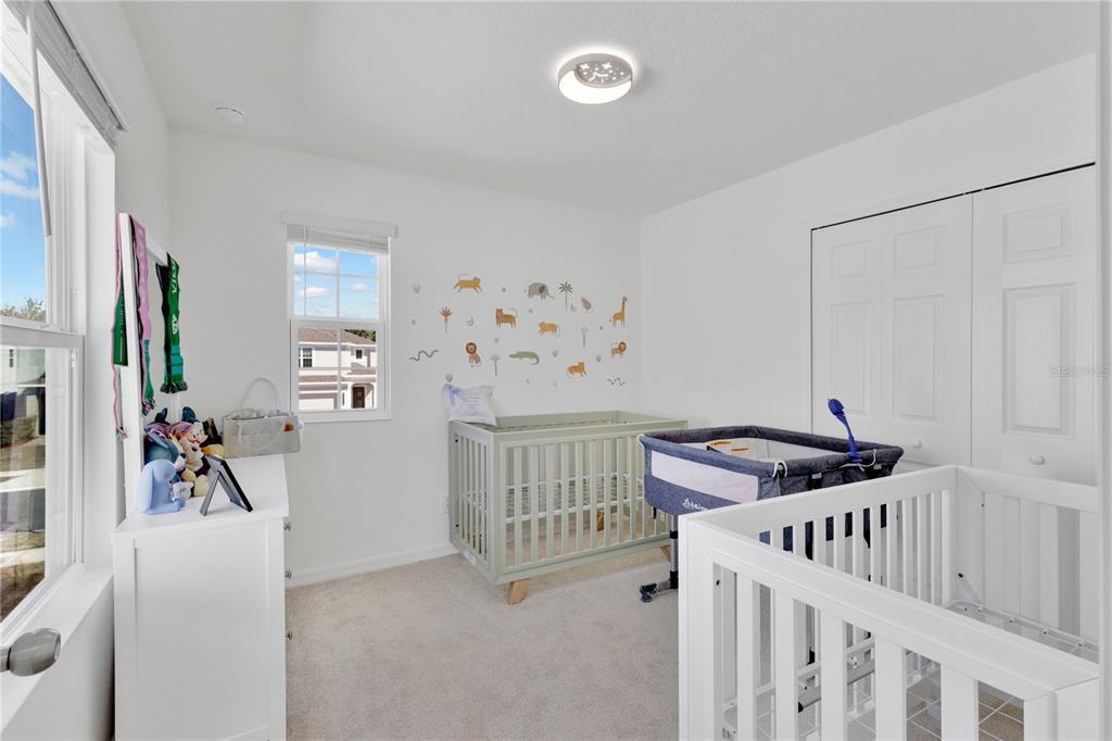 The primary bedroom is located on the upper level, providing added privacy, and includes an en-suite bathroom and a generously sized closet. Secondary bedrooms offer flexibility for guest rooms, work-from-home setups, or additional uses. The first-floor flex room adds valuable versatility without the need for structural changes.