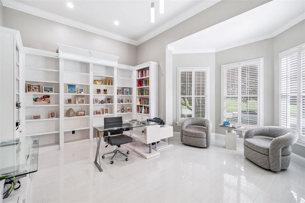 Experience the pinnacle of refined living in this completely reimagined estate home, perfectly situated on Celebration’s coveted Golfpark Drive. Encompassing nearly 6,000 square feet of stunning design, this residence blends elegance with modern comfort in every detail. The first-floor primary suite is a serene sanctuary, featuring dual custom closets and a lavish spa-inspired bath with a Japanese heated toilet, spacious shower with seating, and exquisite finishes. A private office, two living rooms with wood-burning fireplaces and fitness room with custom sauna provide thoughtfully designed spaces for both productivity and leisure.