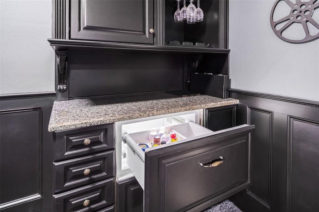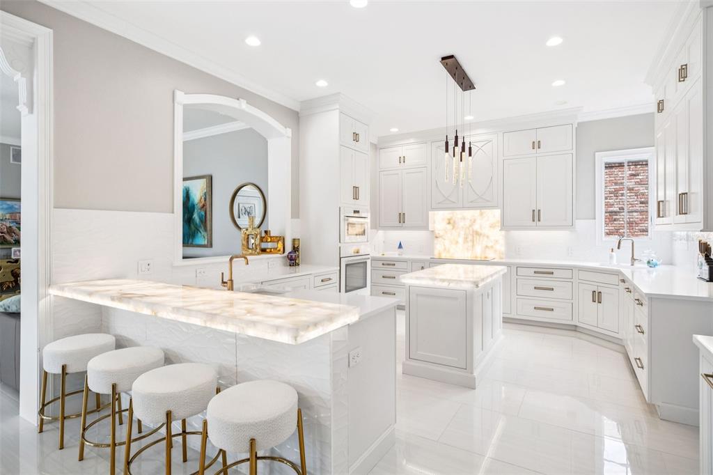 At the heart of the home, the gourmet kitchen is a showpiece—anchored by striking quartzite surfaces, a dazzling LED-lit island and backsplash, and top-of-the-line Miele appliances including induction cooking. The mirrored Sub-Zero refrigerator and freezer, dual Sub-Zero drawers, and dual pantries—one butler’s, one traditional—ensure both beauty and practicality for every culinary need.