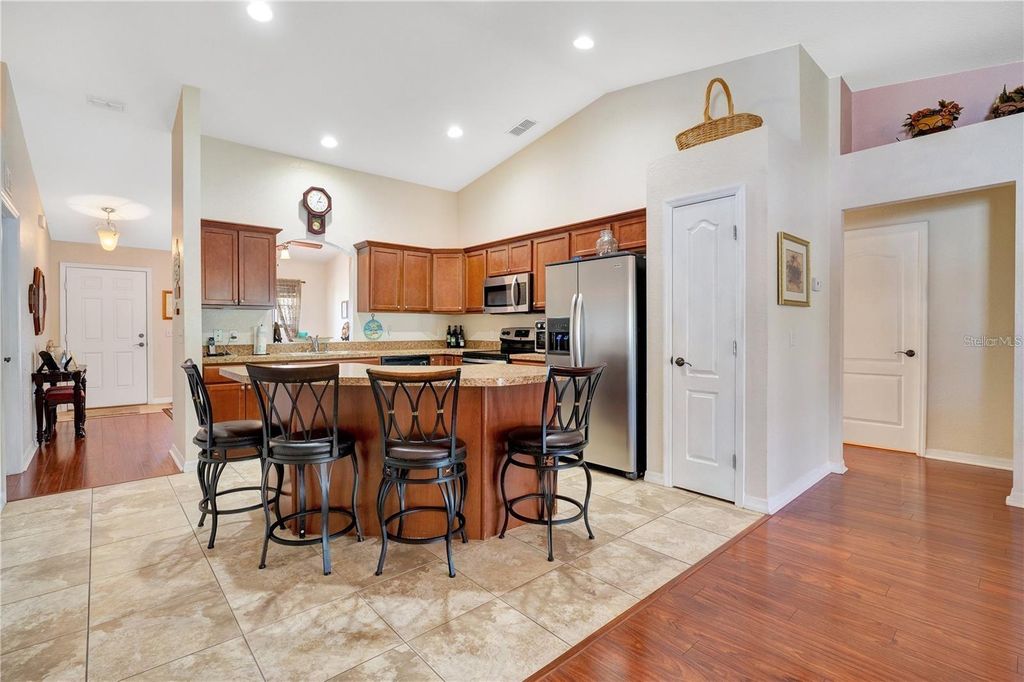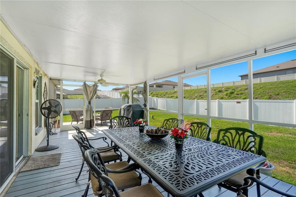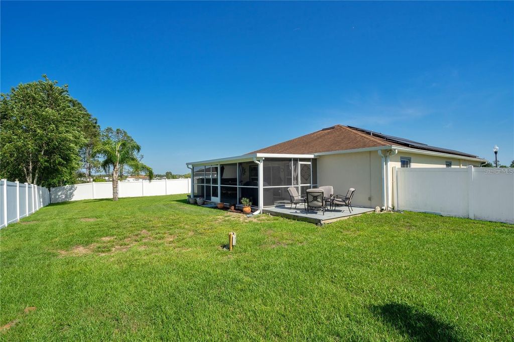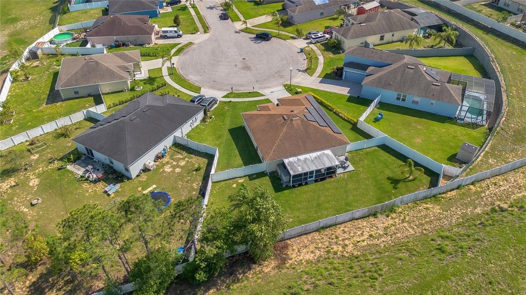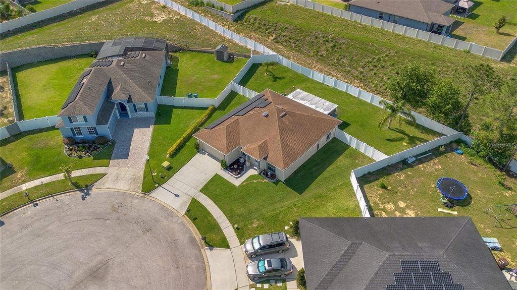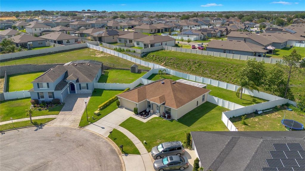 Welcome to this stunning custom-built 2014 home in a sought after and desirable gated community in Davenport, Florida called Crows Nest Estates. Tucked away on an oversized premium cul-de-sac lot, this 3-bedroom, 2-bath retreat was designed for both comfort and connection. Step inside and you’re greeted by vaulted ceilings, abundant natural light, and a flowing split floor plan that makes everyday living feel open and inviting. The spacious kitchen, with its large island, recessed lighting, and stainless steel appliances, is the heart of the home. Perfect for casual family meals or hosting friends. While the family room opens effortlessly to a screened lanai and sun deck, where you can unwind and enjoy Florida evenings overlooking your private backyard. The primary suite is a true retreat, featuring a walk-in closet and a dual-sink bathroom, while the additional bedrooms offer flexibility for family, guests, or a home office. Practical features like tile in wet areas, ceiling fans throughout, indoor laundry, and a 2-car garage with built-in storage make daily life simple and organized. Energy efficiency is already taken care of with 100% paid-off solar panels, keeping your electric bills around $100 or less per month. Leaving more room in your budget for the lifestyle you want. Living here means more than just a beautiful home. It’s about community and convenience. Crows Nest Estates offers a secure gated entrance, playground, sidewalks, and a quiet, well-kept neighborhood with no CDD and low taxes. And when it’s time to explore, you’re in the heart of the thriving Four Corners area, just minutes from Clermont, Orlando, Winter Haven, and with easy access to Tampa and even Miami via Highway 27. Whether it’s shopping, dining, theme parks, or weekend getaways, everything you need is close at hand. This move-in-ready home is more than a place to live. It’s where your Florida lifestyle begins. Schedule your private showing today and see why Crow’s Nest Estates is the perfect place to call home.