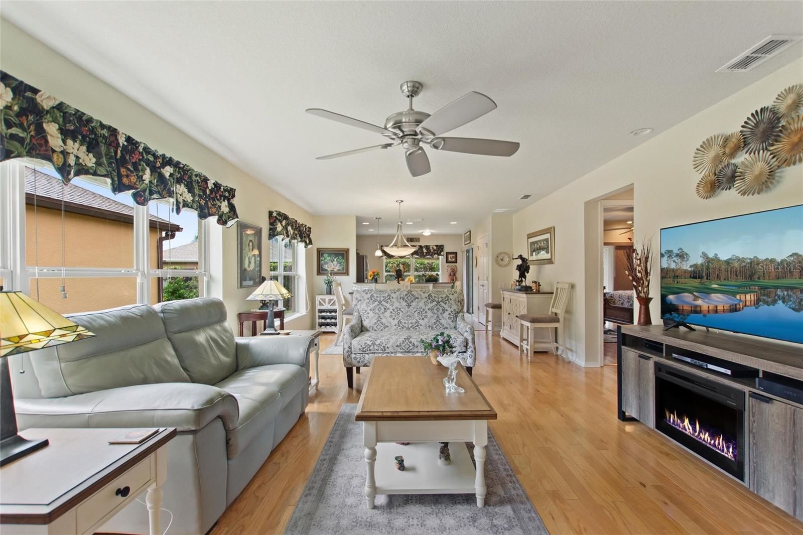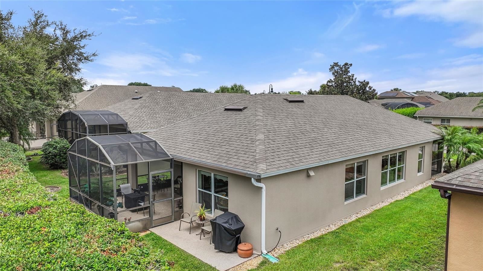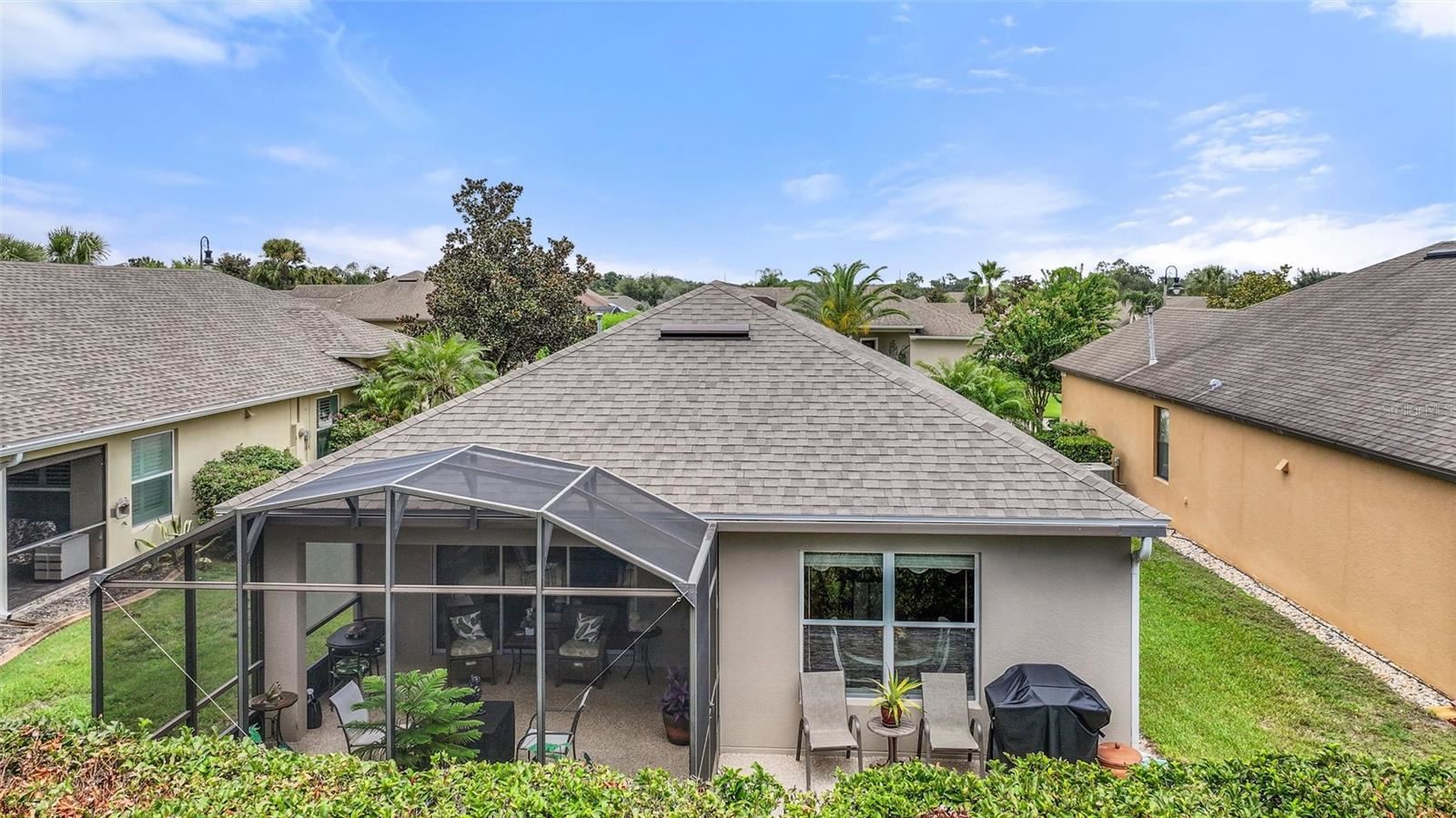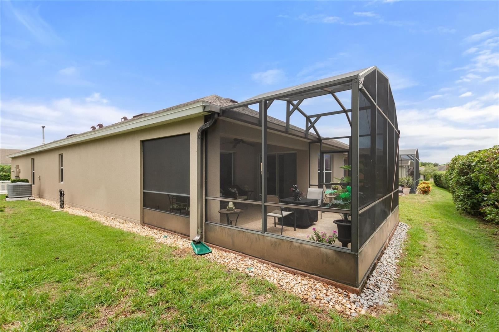 Pristine move-in condition 3/2 Riviera model in Del Webb Orlando’s Vista Grande community with 2024 HVAC, 2021 Roof and 2020 Generac 22 kW Whole-House Generator has solid-surface floors throughout and is available to close on or after 10/15/2025. Screened front porch with full-view storm door opens to a bright and cheery central living area flanked by 3 bedrooms, a generous eat-in kitchen and an oversized south-facing screened lanai with adjacent patio. Newer stainless-steel kitchen appliances include a 5-burner natural gas stove. Triple patio doors to lanai from primary en suite bedroom with walk-in closet and updated full bath. Newer ceiling fans, COR thermostat and recessed lighting. Titan floors in garage, screened lanai and on patio. Ceiling-mounted storage and shelving unit in garage with Titan floor. Freezer in garage is reserved. Natural gas and electric dryer hookups in laundry closet. Existing dryer is powered by electricity. Mature landscaping inside custom cement shrub bed curbing with mulch & river rock. Partial seamless gutters. Owned ADT security system equipment. Actively managed Sentricon pest control system. Select furnishings available for sale separately. Sold As-Is. Ridgewood Lakes is a golf cart friendly community. $352 monthly Del Webb Orlando HOA fee provides lawn cutting and shrub bed trimming + exclusive access to the HOA-owned 30,000 SF Montecito clubhouse with indoor & outdoor heated pools, hot tub, fitness center, walking track and pub. Pickle ball, bocce and tennis courts, dog parks and sidewalks. $425 semi-annual Ridgewood Lakes HOA fee provides 24×7 staffed security gate and master association-owned private road maintenance. Del Webb Orlando is a 55+ community with full-time lifestyle directors, located in Ridgewood Lakes gated community with miles of walking & biking trails and adjacent to 18-hole White Heron Golf Club, privately owned and open to the public. Shopping, Disney & Central Florida entertainment nearby, easy access to I-4, medical facilities, airports and Sunrail Station. Advent Health hospital 3 miles away.