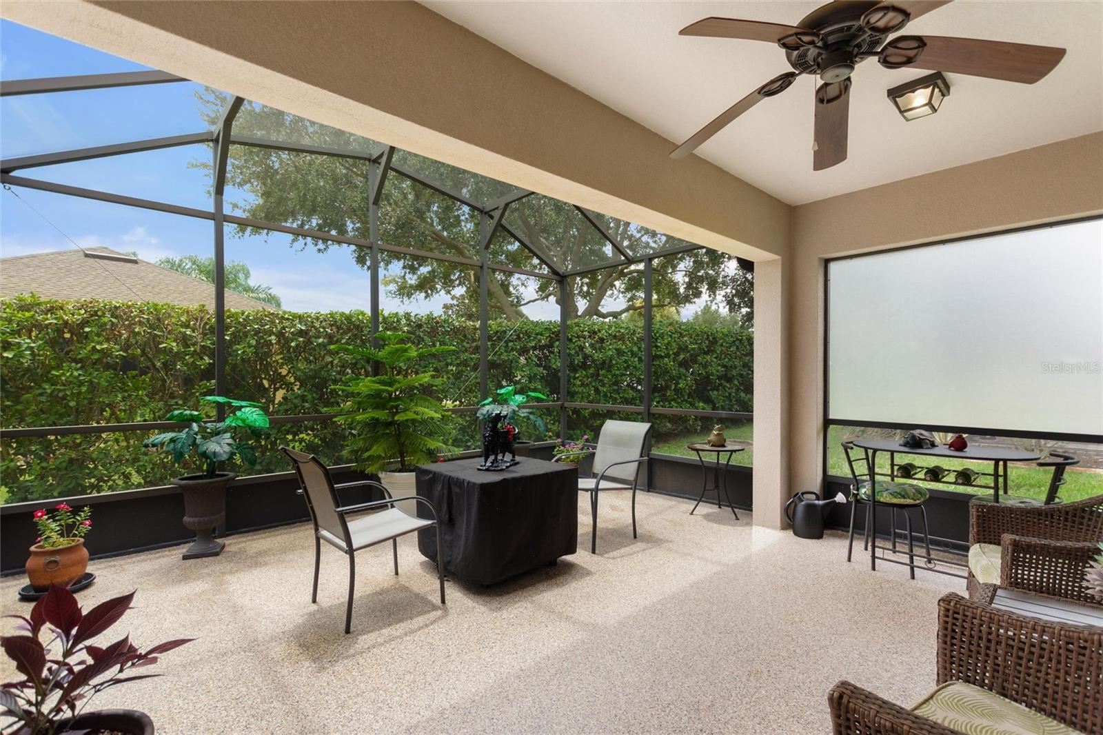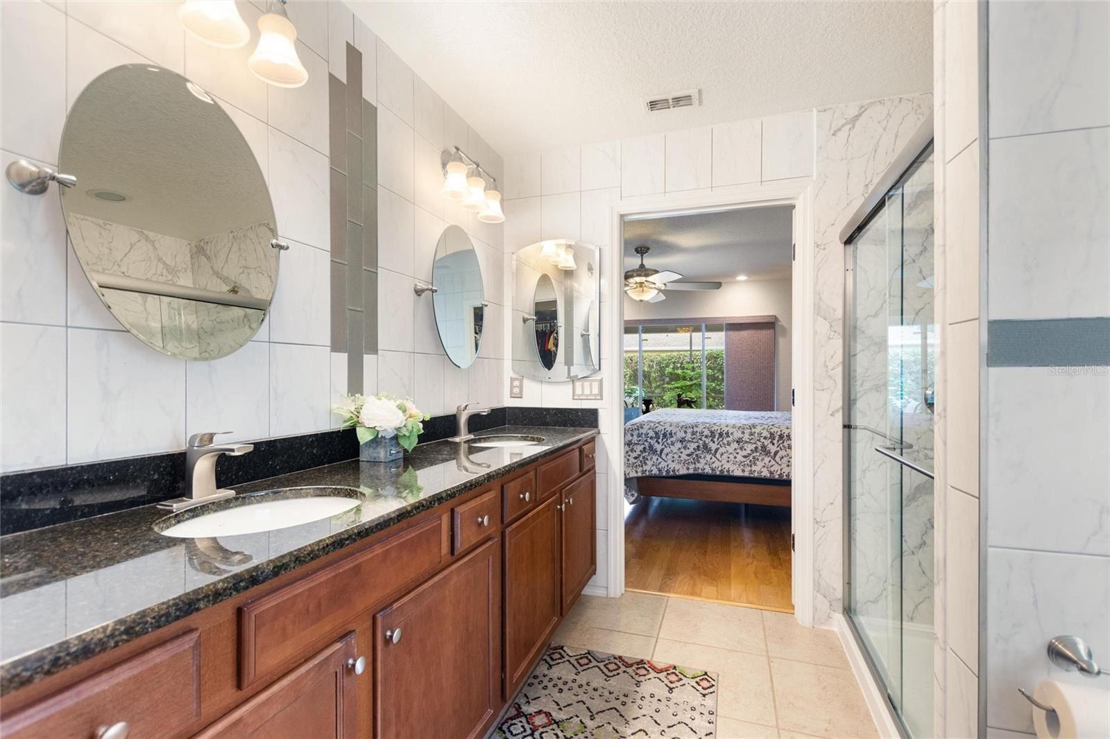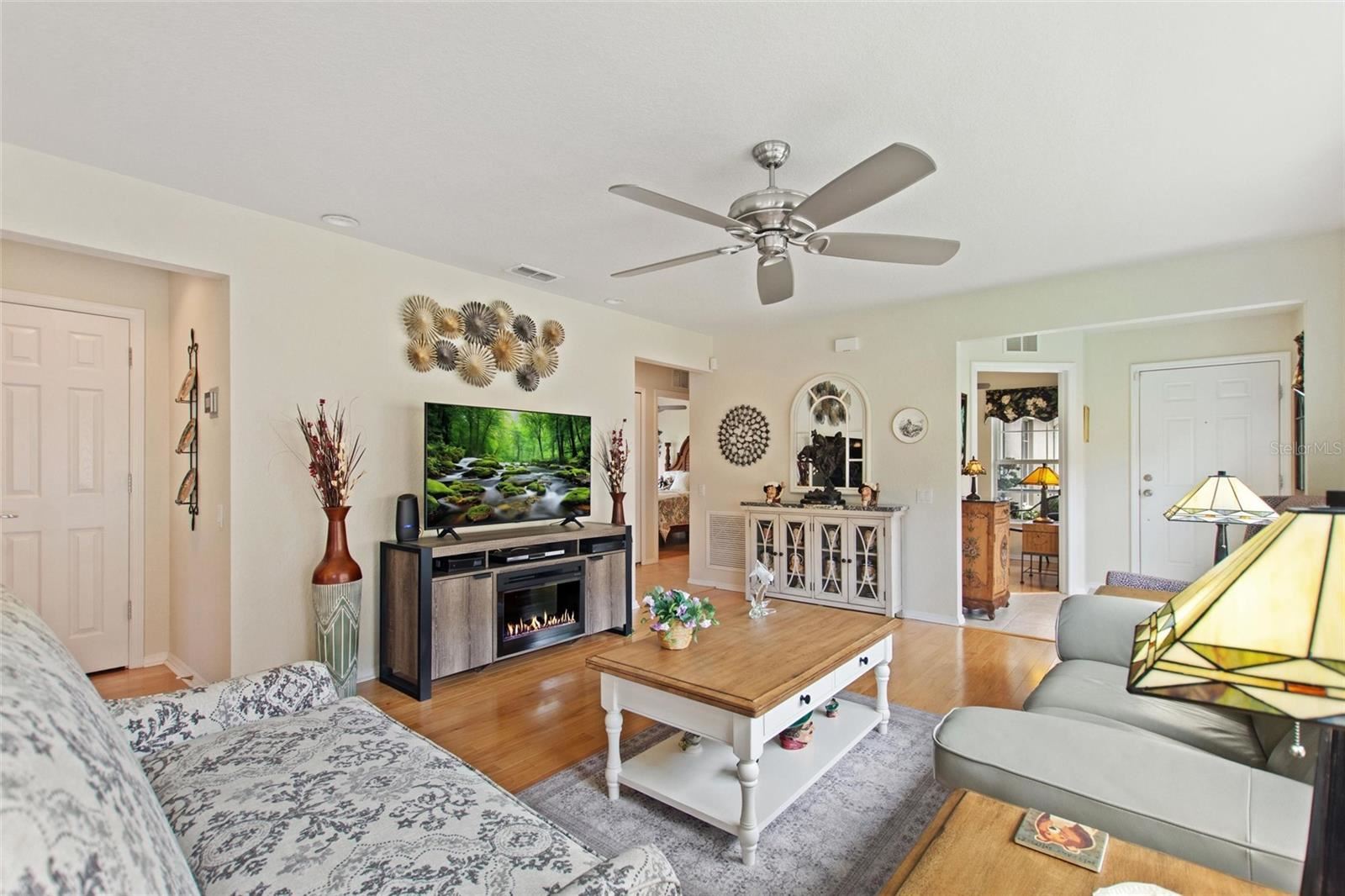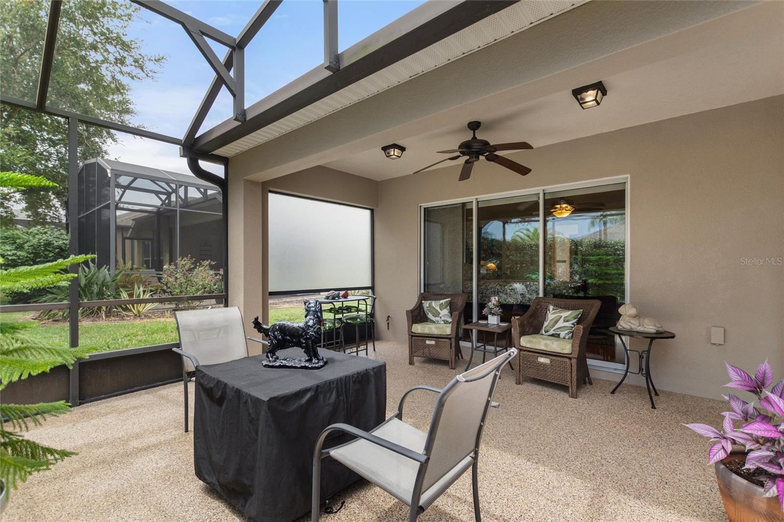 Pristine move-in condition 3/2 Riviera model in Del Webb Orlando’s Vista Grande community with 2024 HVAC, 2021 Roof and 2020 Generac 22 kW Whole-House Generator has solid-surface floors throughout and is available to close on or after 10/15/2025. Screened front porch with full-view storm door opens to a bright and cheery central living area flanked by 3 bedrooms, a generous eat-in kitchen and an oversized south-facing screened lanai with adjacent patio. Newer stainless-steel kitchen appliances include a 5-burner natural gas stove. Triple patio doors to lanai from primary en suite bedroom with walk-in closet and updated full bath. Newer ceiling fans, COR thermostat and recessed lighting. Titan floors in garage, screened lanai and on patio. Ceiling-mounted storage and shelving unit in garage with Titan floor. Freezer in garage is reserved. Natural gas and electric dryer hookups in laundry closet. Existing dryer is powered by electricity. Mature landscaping inside custom cement shrub bed curbing with mulch & river rock. Partial seamless gutters. Owned ADT security system equipment. Actively managed Sentricon pest control system. Select furnishings available for sale separately. Sold As-Is. Ridgewood Lakes is a golf cart friendly community. $352 monthly Del Webb Orlando HOA fee provides lawn cutting and shrub bed trimming + exclusive access to the HOA-owned 30,000 SF Montecito clubhouse with indoor & outdoor heated pools, hot tub, fitness center, walking track and pub. Pickle ball, bocce and tennis courts, dog parks and sidewalks. $425 semi-annual Ridgewood Lakes HOA fee provides 24×7 staffed security gate and master association-owned private road maintenance. Del Webb Orlando is a 55+ community with full-time lifestyle directors, located in Ridgewood Lakes gated community with miles of walking & biking trails and adjacent to 18-hole White Heron Golf Club, privately owned and open to the public. Shopping, Disney & Central Florida entertainment nearby, easy access to I-4, medical facilities, airports and Sunrail Station. Advent Health hospital 3 miles away.