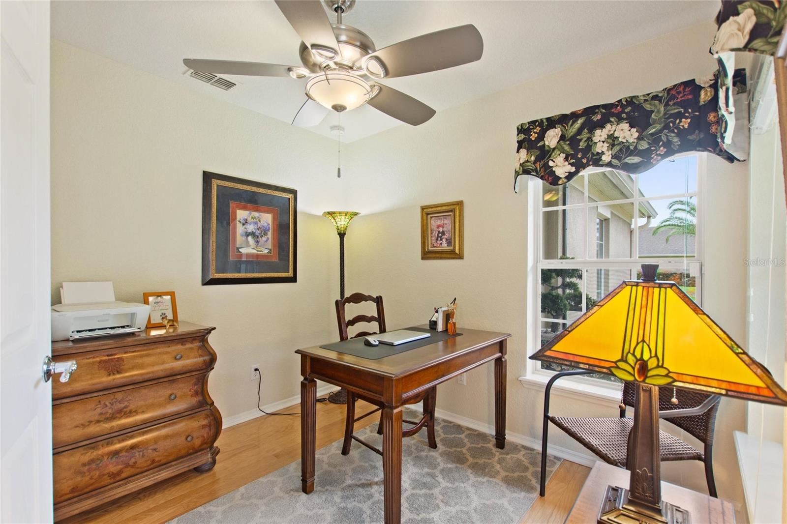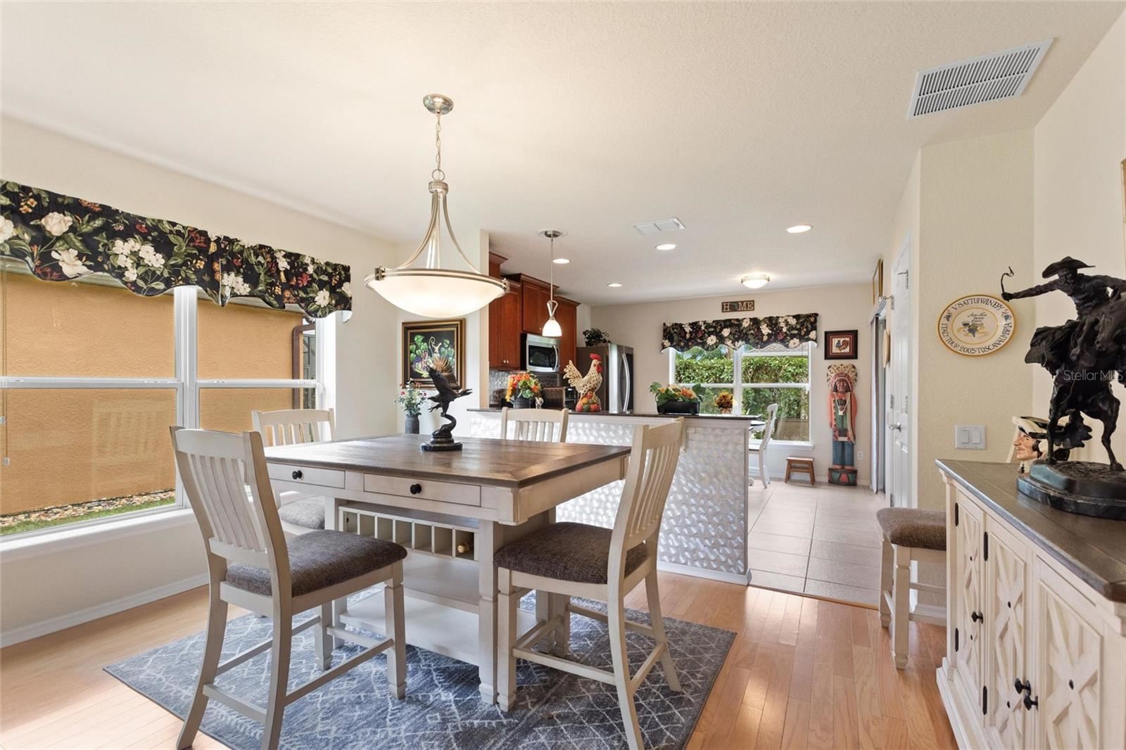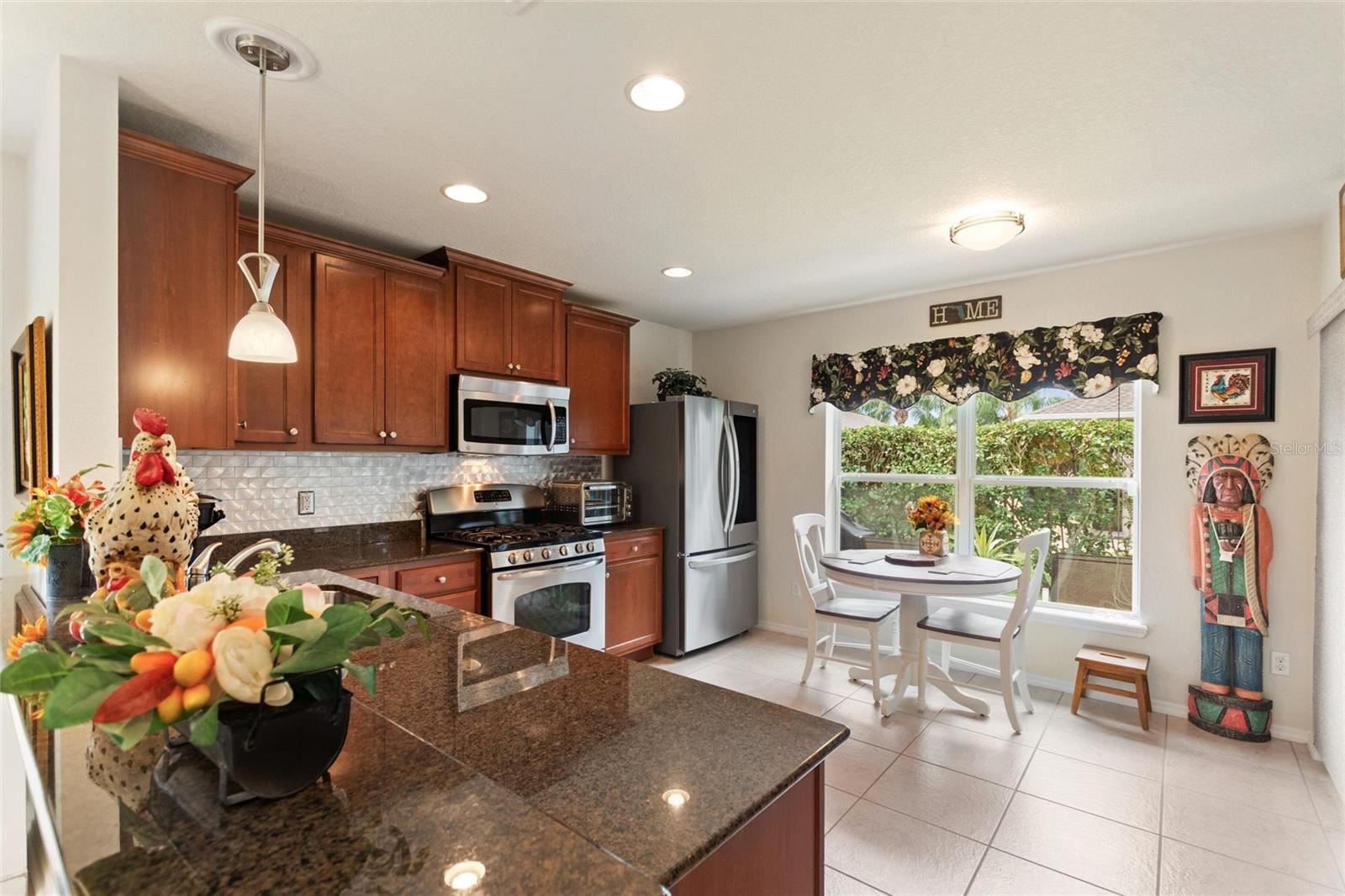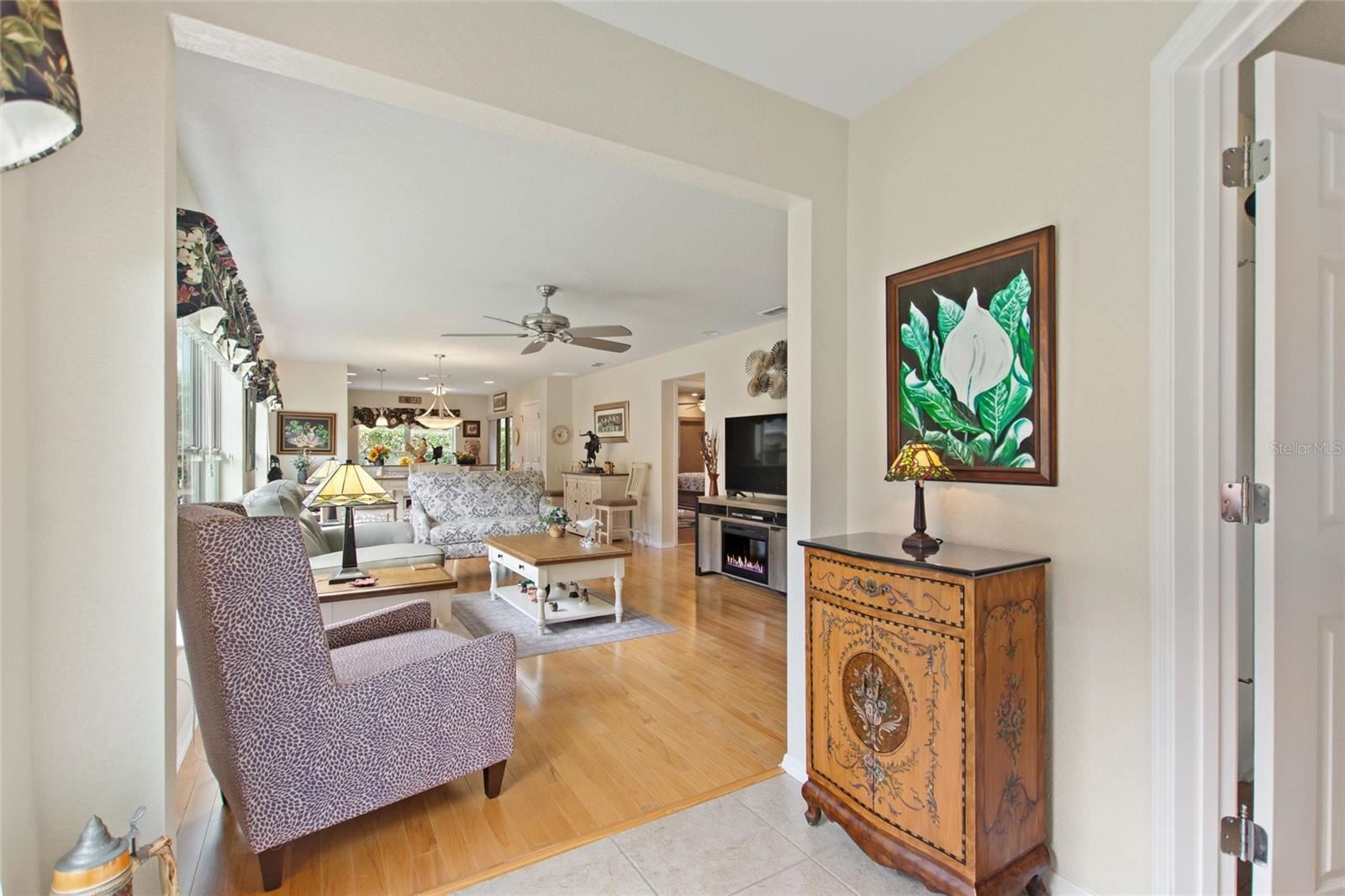 Pristine move-in condition 3/2 Riviera model in Del Webb Orlando’s Vista Grande community with 2024 HVAC, 2021 Roof and 2020 Generac 22 kW Whole-House Generator has solid-surface floors throughout and is available to close on or after 10/15/2025. Screened front porch with full-view storm door opens to a bright and cheery central living area flanked by 3 bedrooms, a generous eat-in kitchen and an oversized south-facing screened lanai with adjacent patio. Newer stainless-steel kitchen appliances include a 5-burner natural gas stove. Triple patio doors to lanai from primary en suite bedroom with walk-in closet and updated full bath. Newer ceiling fans, COR thermostat and recessed lighting. Titan floors in garage, screened lanai and on patio. Ceiling-mounted storage and shelving unit in garage with Titan floor. Freezer in garage is reserved. Natural gas and electric dryer hookups in laundry closet. Existing dryer is powered by electricity. Mature landscaping inside custom cement shrub bed curbing with mulch & river rock. Partial seamless gutters. Owned ADT security system equipment. Actively managed Sentricon pest control system. Select furnishings available for sale separately. Sold As-Is. Ridgewood Lakes is a golf cart friendly community. $352 monthly Del Webb Orlando HOA fee provides lawn cutting and shrub bed trimming + exclusive access to the HOA-owned 30,000 SF Montecito clubhouse with indoor & outdoor heated pools, hot tub, fitness center, walking track and pub. Pickle ball, bocce and tennis courts, dog parks and sidewalks. $425 semi-annual Ridgewood Lakes HOA fee provides 24×7 staffed security gate and master association-owned private road maintenance. Del Webb Orlando is a 55+ community with full-time lifestyle directors, located in Ridgewood Lakes gated community with miles of walking & biking trails and adjacent to 18-hole White Heron Golf Club, privately owned and open to the public. Shopping, Disney & Central Florida entertainment nearby, easy access to I-4, medical facilities, airports and Sunrail Station. Advent Health hospital 3 miles away.