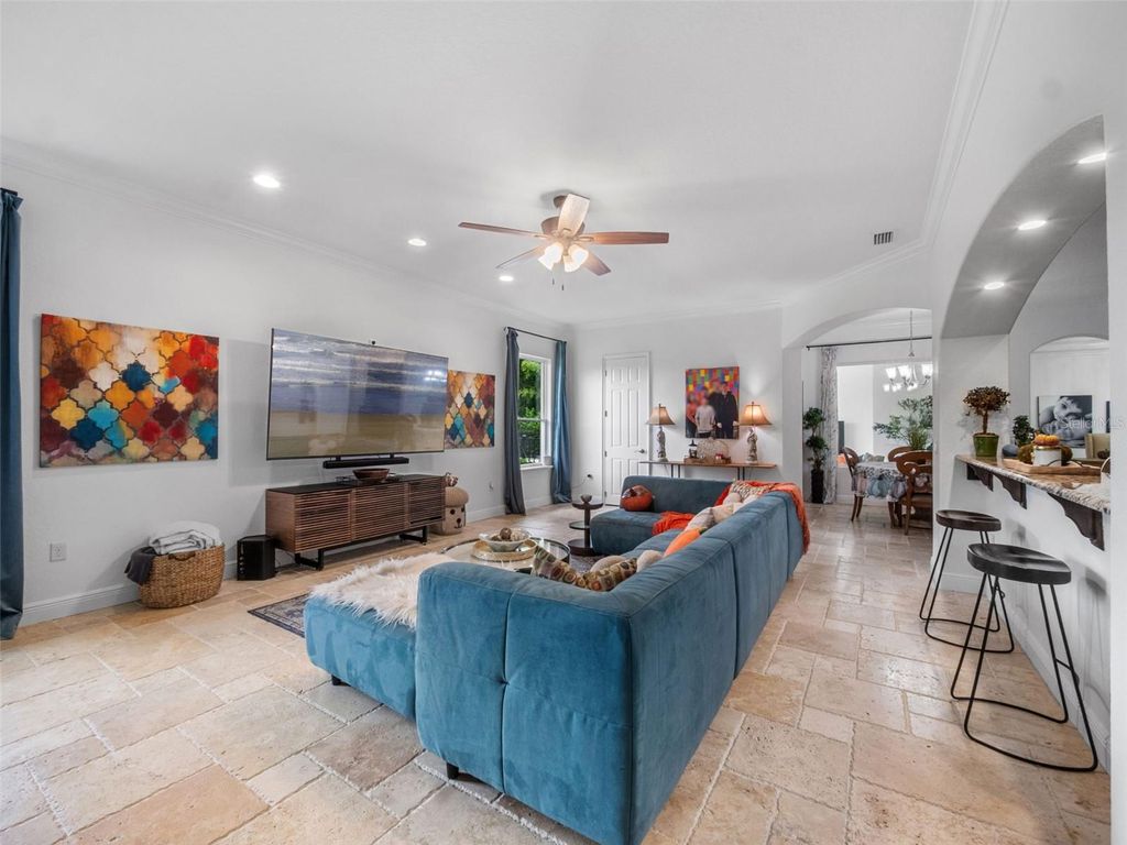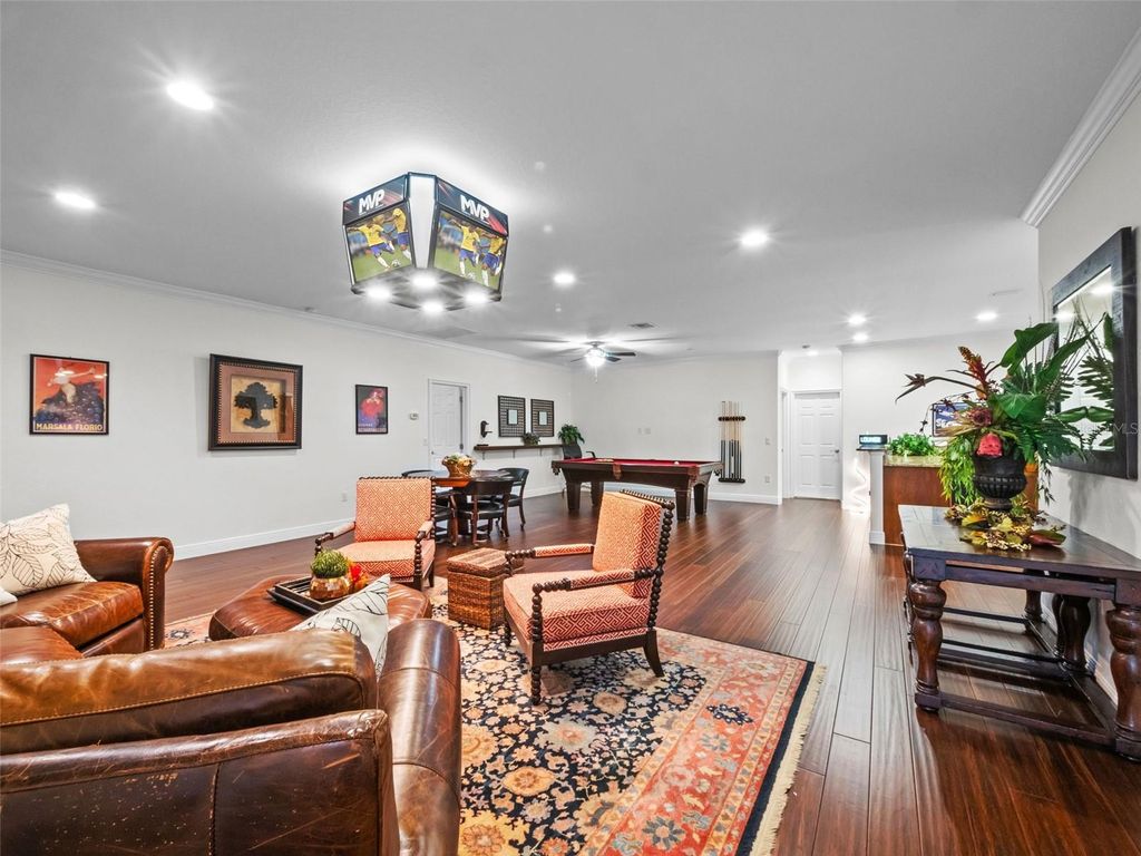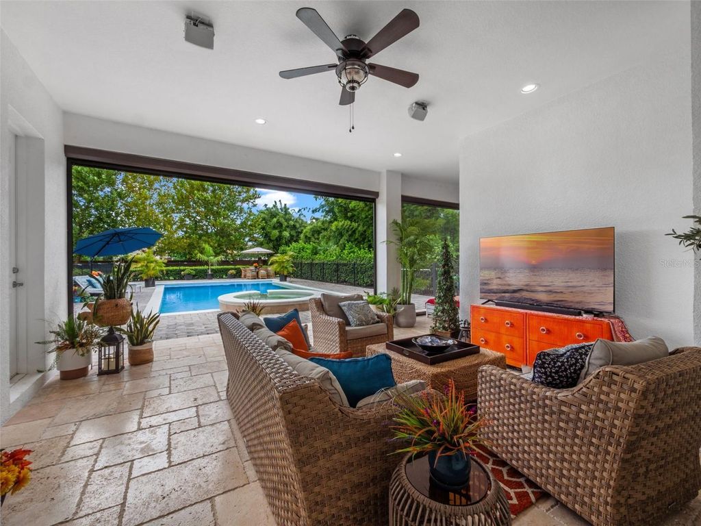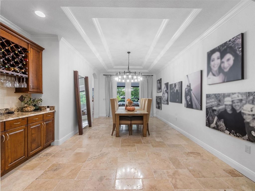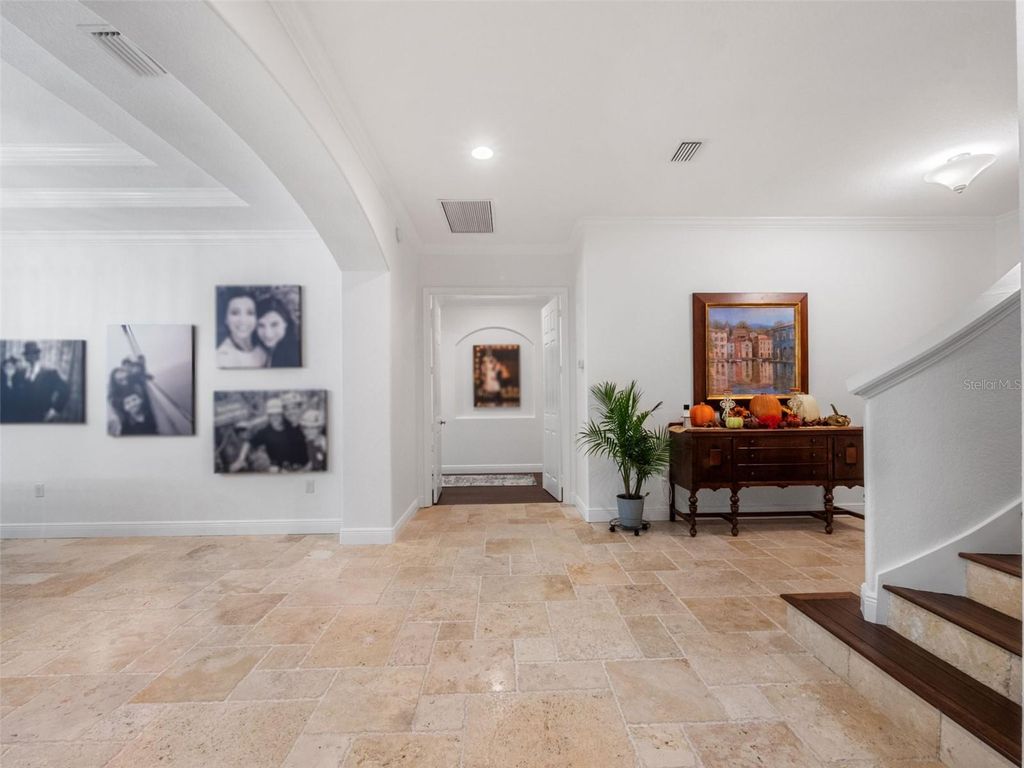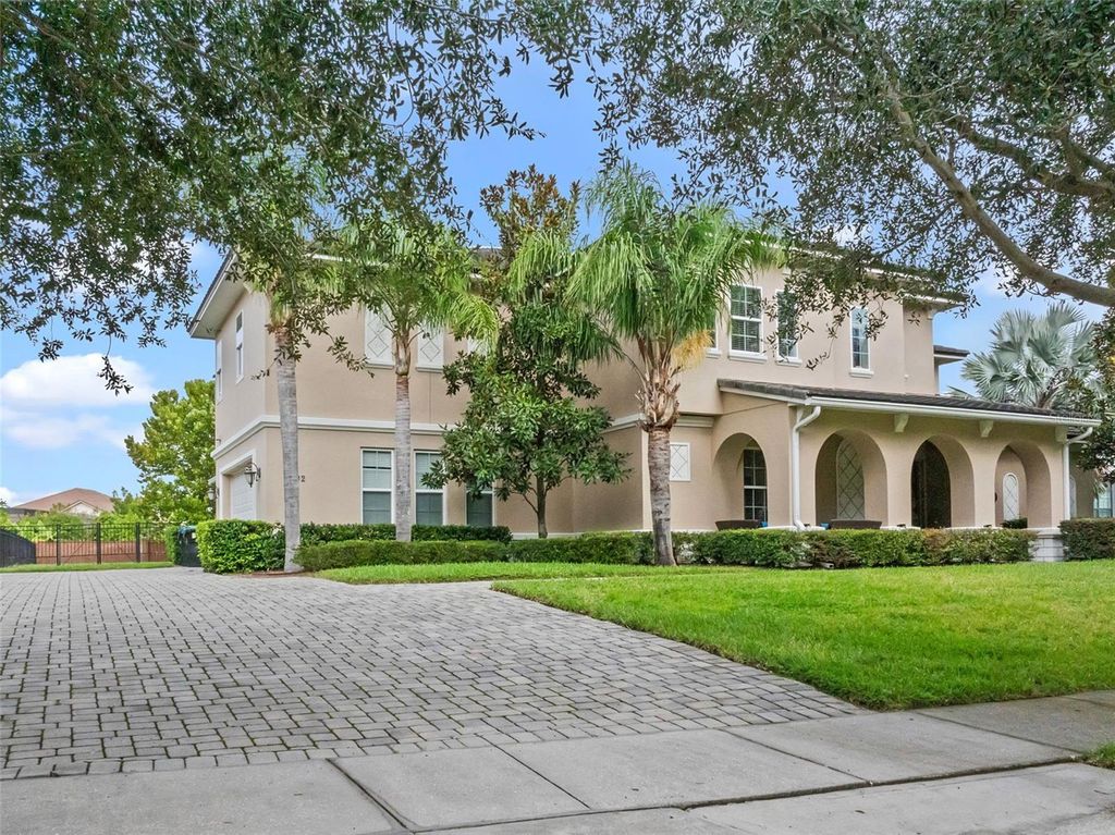 Behind the secure, monitored gates of Lake Davis Reserve lies a rare opportunity to own one of only eighteen custom estate homes in this exclusive enclave. Set on more than half an acre, this impressive six-bedroom residence spans over 6,300 square feet and was designed to deliver both sophistication and comfort for the most discerning buyer. From the moment you step inside, the attention to detail is unmistakable. Expansive rooms, high-end finishes, and thoughtful design create a home that feels as luxurious as it is livable. The chef’s kitchen offers abundant cabinet and counter space, a large prep island, and a vented cooktop, opening seamlessly to the living areas. The home is designed with flexibility in mind, providing a primary suite and an ensuite bedroom on each floor, along with additional oversized bedrooms so no one is ever left wanting for space. Upstairs, a grand bonus room measuring 33 by 25 feet becomes the centerpiece for entertaining, complete with a built-in bar and wine room. For those who appreciate cinema-quality evenings at home, the dedicated multi-level theatre room is an extraordinary addition. Wood tread stairs, crown molding, Ashland pattern travertine stone flooring, and a tile roof all elevate the craftsmanship throughout. Step outside to a covered lanai with remote-controlled screens, overlooking the private backyard retreat. The saltwater pool and spa, heated for year-round enjoyment, reach depths of eight feet and are surrounded by extended decking that makes gatherings feel effortless. Whether hosting friends or savoring quiet evenings, this outdoor setting is a perfect complement to the interior living spaces. Lake Davis Reserve is one of the area’s most coveted gated communities, prized not only for its privacy and exclusivity but also for its unmatched location. Just around the corner sits Windermere Preparatory School, Windermere High School, and zoning for the highly sought-after Windermere Elementary. In minutes, you can reach the magic of Disney, the convenience of the 429 expressway, and an endless selection of shopping and dining destinations. Opportunities to own in Lake Davis Reserve are exceedingly rare, and building new at this scale and quality would be nearly impossible at today’s costs. This home represents exceptional value in a neighborhood where homes seldom come available. If you’ve been waiting for a property that combines space, luxury, privacy, and location in one, your search is over.