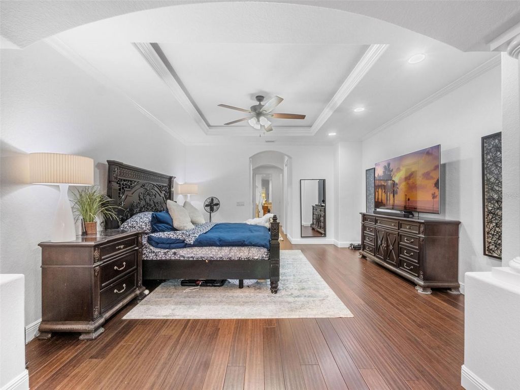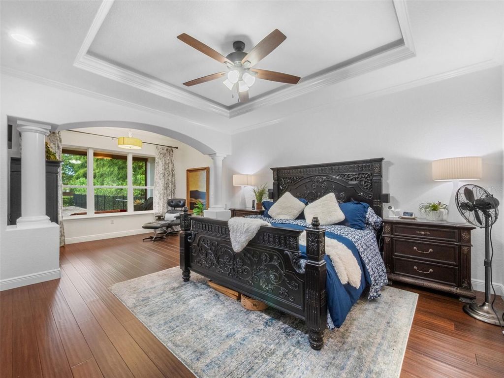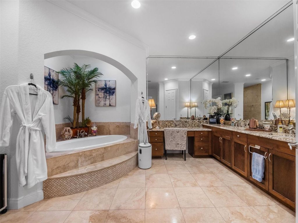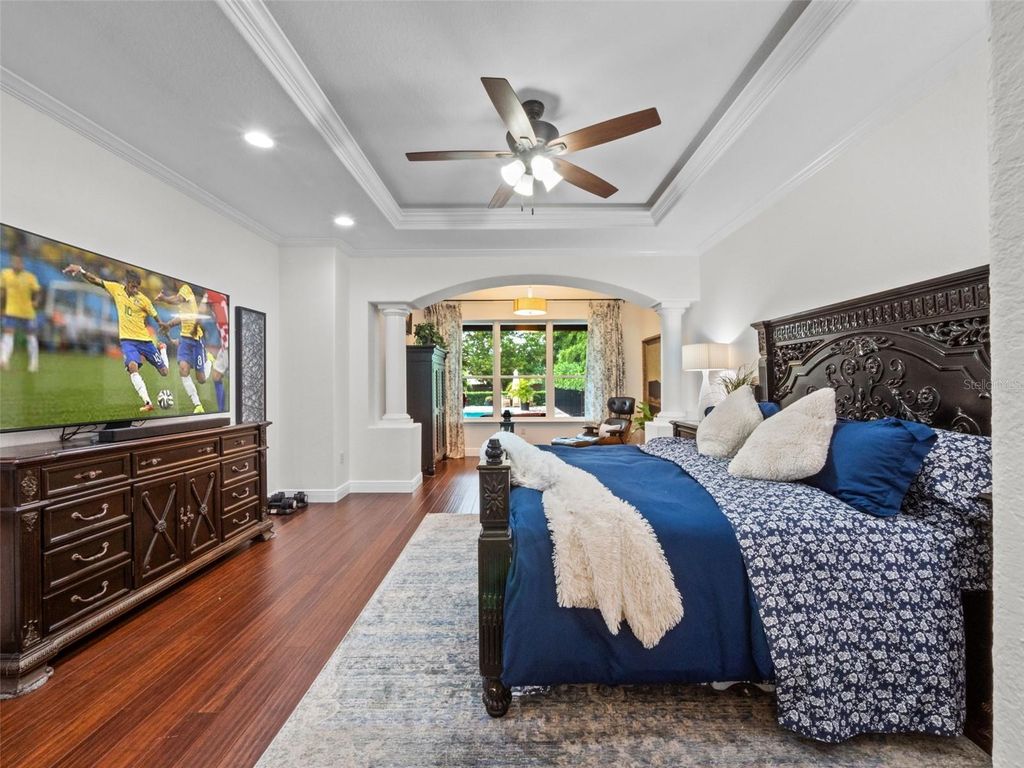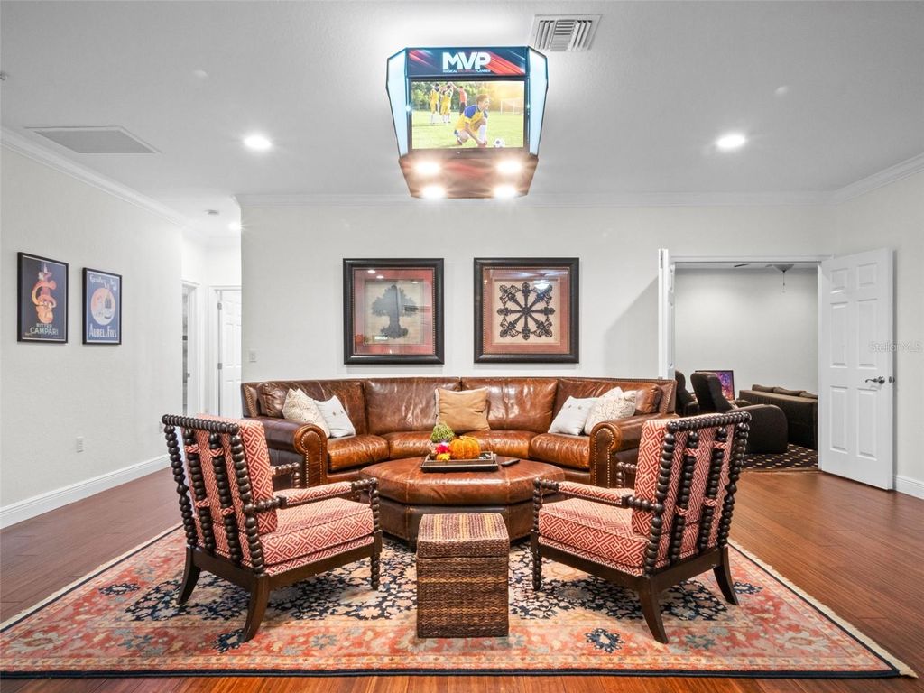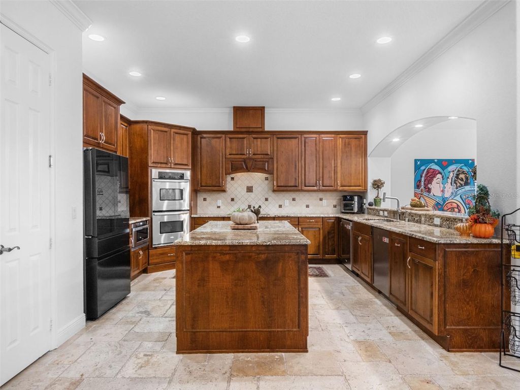 Behind the secure, monitored gates of Lake Davis Reserve lies a rare opportunity to own one of only eighteen custom estate homes in this exclusive enclave. Set on more than half an acre, this impressive six-bedroom residence spans over 6,300 square feet and was designed to deliver both sophistication and comfort for the most discerning buyer. From the moment you step inside, the attention to detail is unmistakable. Expansive rooms, high-end finishes, and thoughtful design create a home that feels as luxurious as it is livable. The chef’s kitchen offers abundant cabinet and counter space, a large prep island, and a vented cooktop, opening seamlessly to the living areas. The home is designed with flexibility in mind, providing a primary suite and an ensuite bedroom on each floor, along with additional oversized bedrooms so no one is ever left wanting for space. Upstairs, a grand bonus room measuring 33 by 25 feet becomes the centerpiece for entertaining, complete with a built-in bar and wine room. For those who appreciate cinema-quality evenings at home, the dedicated multi-level theatre room is an extraordinary addition. Wood tread stairs, crown molding, Ashland pattern travertine stone flooring, and a tile roof all elevate the craftsmanship throughout. Step outside to a covered lanai with remote-controlled screens, overlooking the private backyard retreat. The saltwater pool and spa, heated for year-round enjoyment, reach depths of eight feet and are surrounded by extended decking that makes gatherings feel effortless. Whether hosting friends or savoring quiet evenings, this outdoor setting is a perfect complement to the interior living spaces. Lake Davis Reserve is one of the area’s most coveted gated communities, prized not only for its privacy and exclusivity but also for its unmatched location. Just around the corner sits Windermere Preparatory School, Windermere High School, and zoning for the highly sought-after Windermere Elementary. In minutes, you can reach the magic of Disney, the convenience of the 429 expressway, and an endless selection of shopping and dining destinations. Opportunities to own in Lake Davis Reserve are exceedingly rare, and building new at this scale and quality would be nearly impossible at today’s costs. This home represents exceptional value in a neighborhood where homes seldom come available. If you’ve been waiting for a property that combines space, luxury, privacy, and location in one, your search is over.
