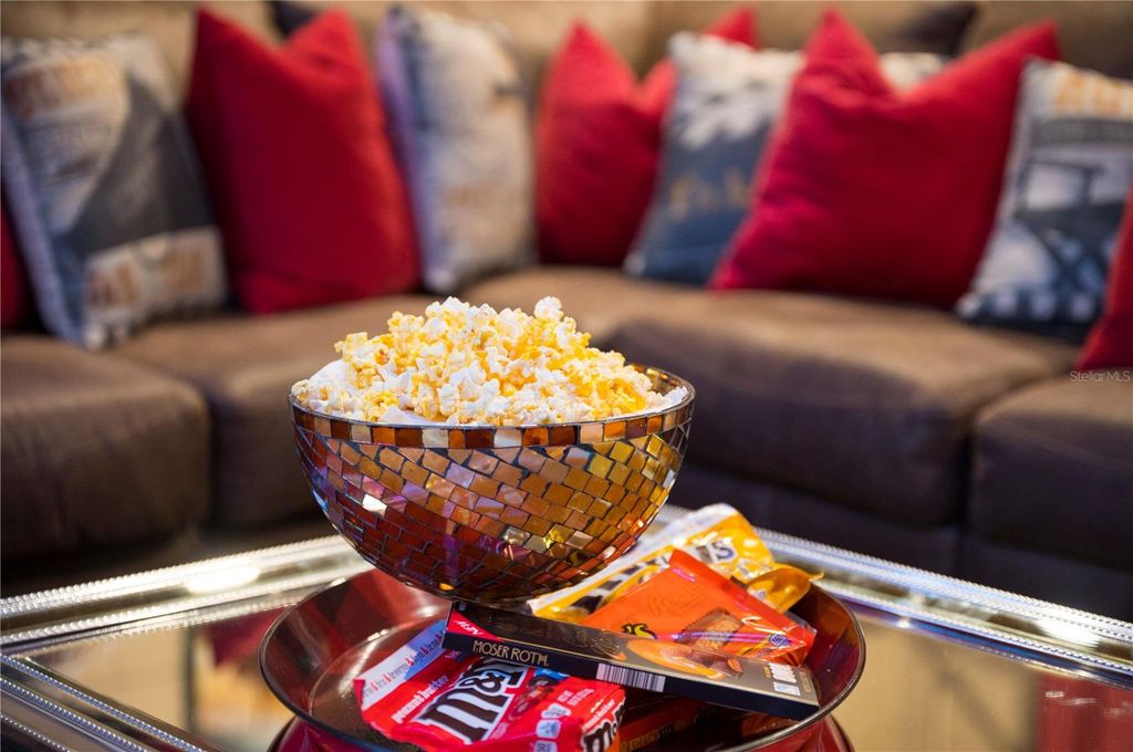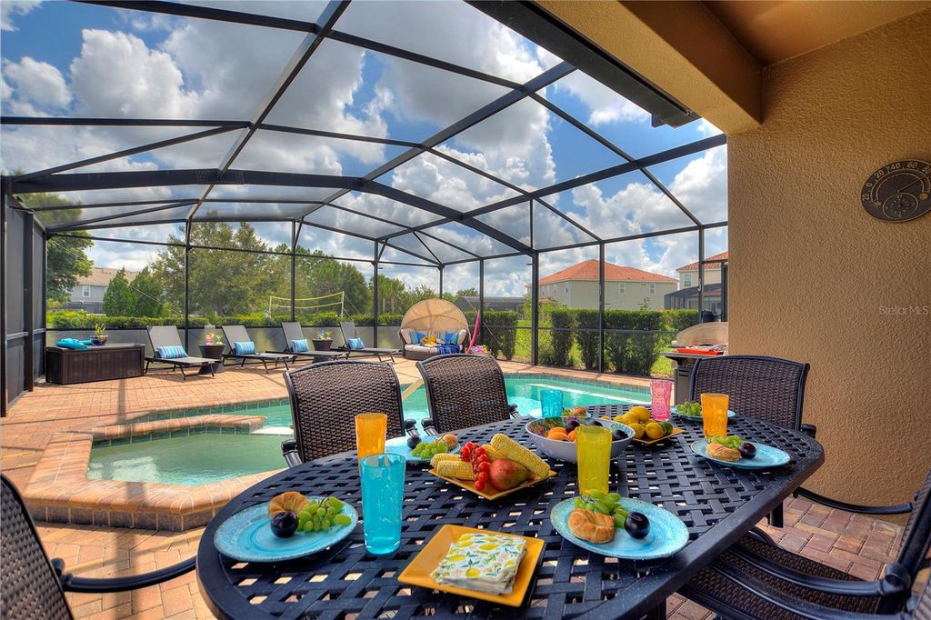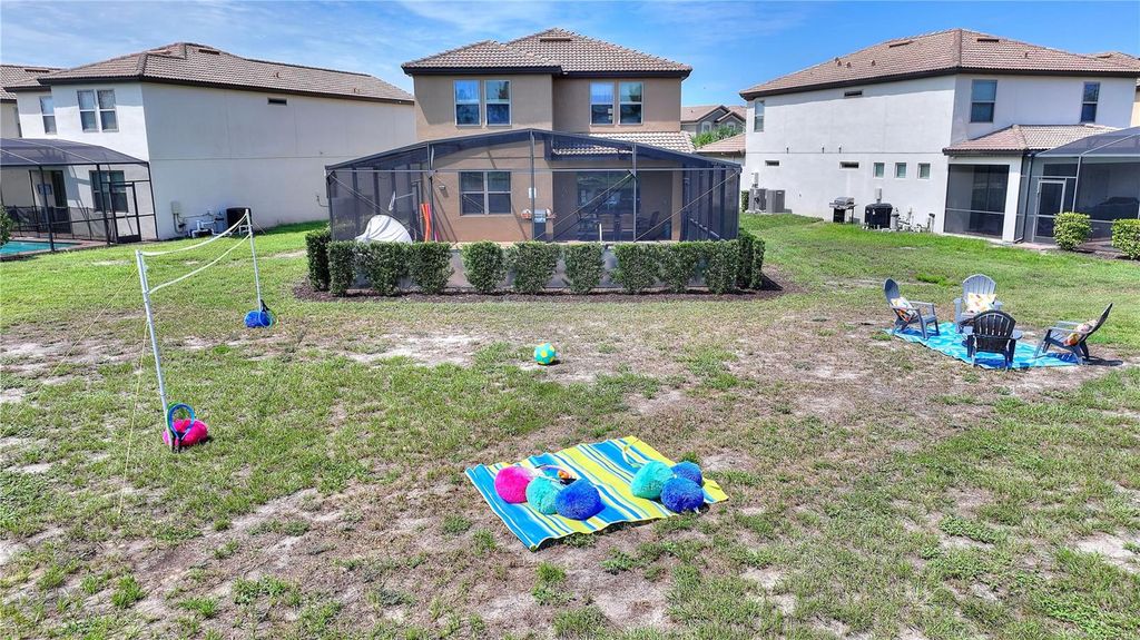 A Pilgrim’s Paradise found in Solterra! Just 20 minutes from DisneyWorld’s doorstep, this extraordinarily pristine and perfectly appointed villa is tucked inside a 24-hour guard-gated resort where families of sandhill cranes, gopher tortoises, and Florida’s most coveted wildlife roam freely. Here, every day is a vacation: float along the lazy river, race down the giant waterslide carved into a “rock” wall, or gather with friends at the café to watch a game, hit the fitness center, or head for the sports courts… take your pick: tennis, pickleball, or sand volleyball. Back home, a rare 1/3-acre pie-shaped backyard with no rear neighbors sets the stage for endless fun in the Florida sun. Host volleyball, bocce, or croquet tournaments on the lawn, or lounge in style on the 13-foot extended brick-paver lanai””easily accommodating a number of sun loungers, a plush double daybed, al fresco dining, and your grill station. Once inside, the villa blends comfort with creativity. Two king master suites, a queen room, and themed bedrooms (hand-painted by Disney muralists) bring everyone together”” delight in the Disney cruise-themed room and the whimsical Harry Potter suite with custom furniture. Every bedroom is equipped with its own LED TV and ceiling fan. Entertainment flows throughout with a converted garage, insulated & air conditioned game room featuring foosball, air hockey, a cocktail arcade machine, PlayStation with games and movies, and even a starry-sky backdrop. The 75″ LED Roku TV will bring everyone together for movie night, or take the fun back outdoors to the sparkling private pool””heated remotely at the touch of an app. This home is thoughtfully updated with modern conveniences: Ring doorbell, Alarm.com security system with cameras, Sensi remote thermostat, Schlage Encode smart lock, Google mesh WiFi, LED smart bulbs, mini-split A/C in the game room, Rachio smart irrigation, and more. Recent improvements include a new pool pump (2024), fresh paint (2025), new bar stools, widened driveway, and professionally steam-cleaned interiors. Fully stocked with linens, beach towels, kitchenware, games, puzzles, baby gear, fishing rods, and even a coffee bar with Keurig, this turn-key retreat is “Best of Florida 2024″ winner and nominated again for 2025. Guests rave with five-star reviews, and regular professional servicing (tubes-in-the-wall) Taexx pest control system keeps everything in top shape. The HOA maintains the yard and landscaping (currently being refreshed with soil treatments, irrigation, and new turf) providing carefree living. Whether you’re seeking a private family getaway, a savvy investment with proven rental appeal, or both””this Solterra villa delivers a magical blend of resort adventure, Disney-inspired charm, and everyday comfort.