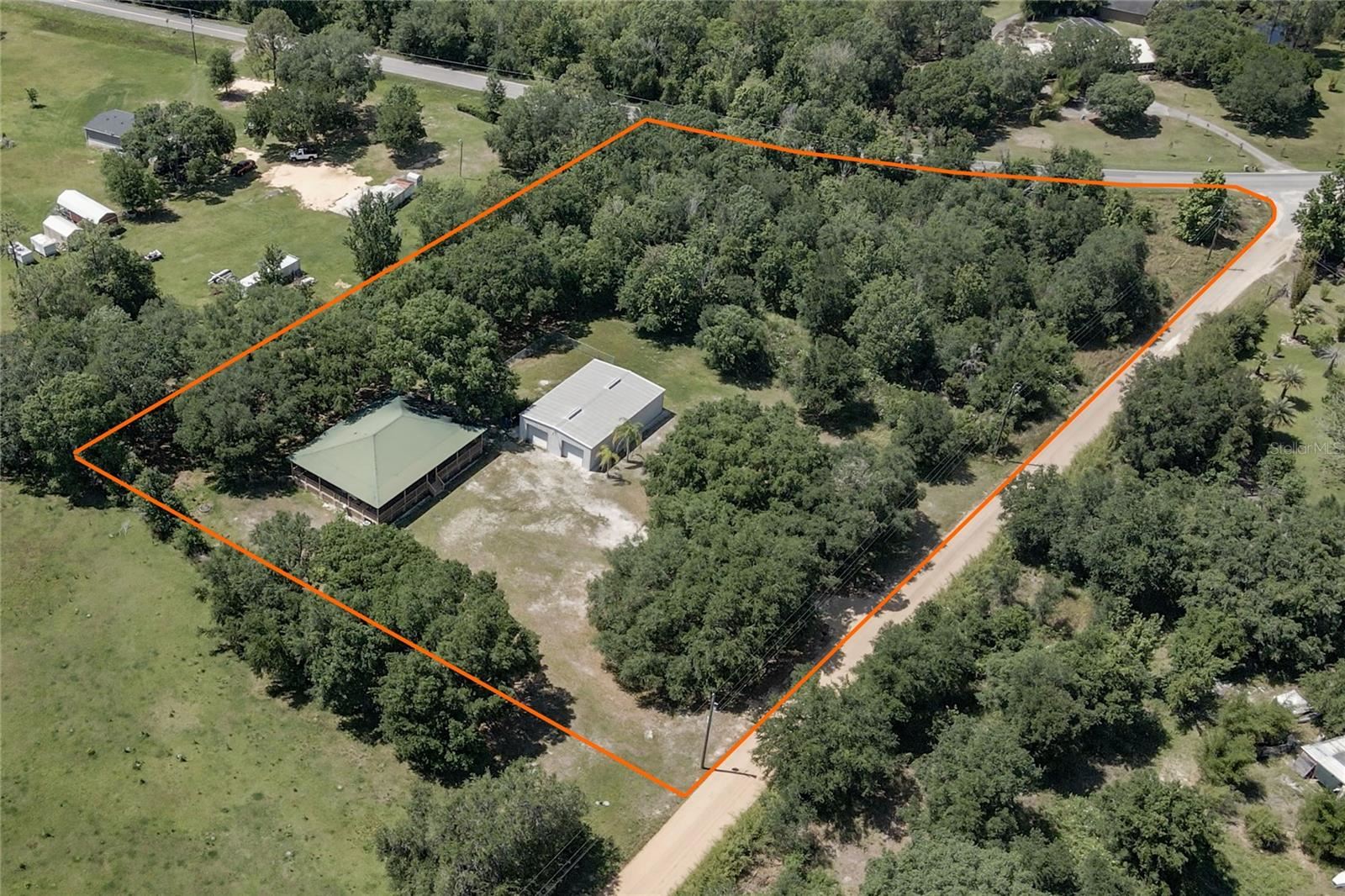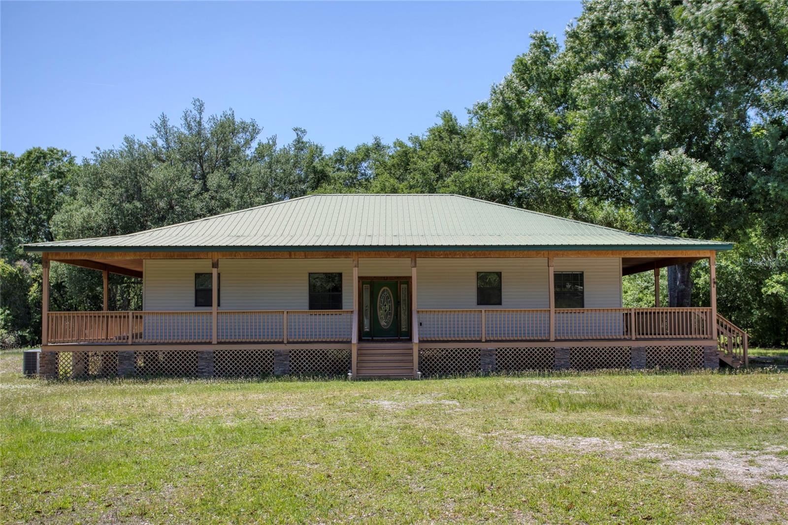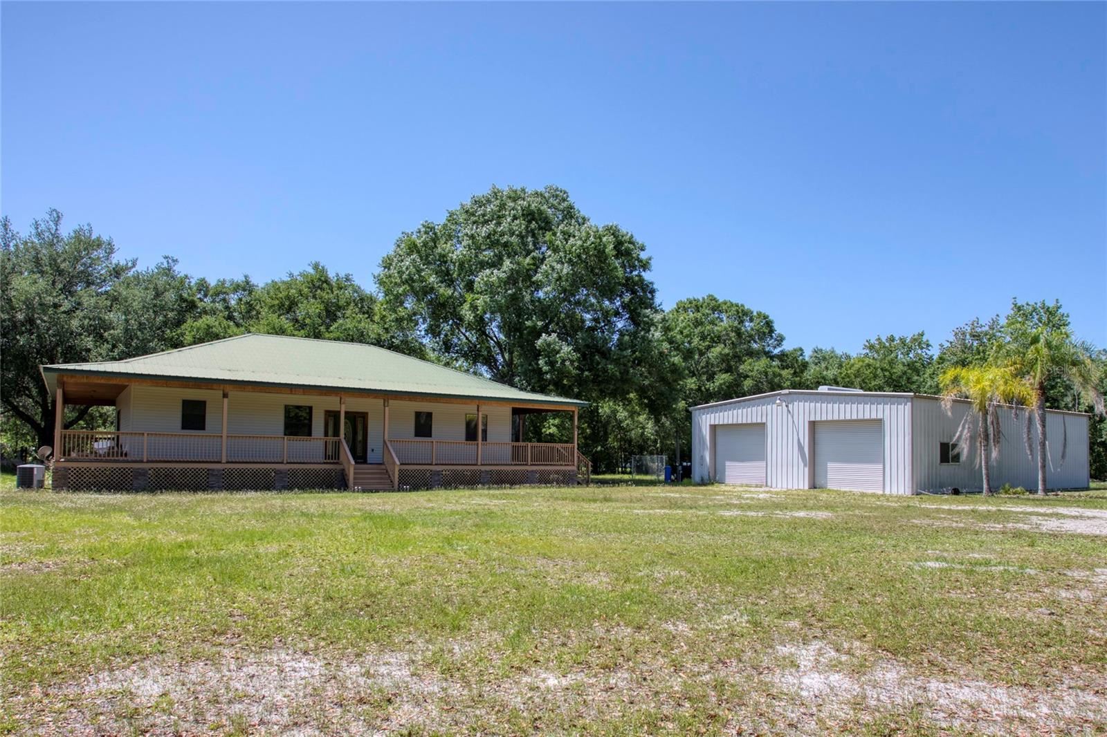 AMAZING PRICE! One or more photo(s) has been virtually staged. BRING OFFERS! Country Heaven, but close to everything Just 22 minutes to WDW! Already set up for your family or Airbnb. The setting is private and tranquil on 3+ acres just minutes from WDW and minutes to shopping, medical, and entertainment. The wrap-around elevated porch has entry points to the home at the front door, master bedroom, and breakfast nook. The interior feels huge with high ceilings and an open kitchen that combines with the living spaces to make a fantastic great room. The split bedroom plan provides separation and privacy. A complete interior fire sprinkling system and surround sound system are included. The separate garage is a massive 40′ x 60′ and will fit your RV, boats, and much more. The home has all of the modern features and is being sold completely furnished. Not all furniture was installed at the time of photography new pictures will be posted.