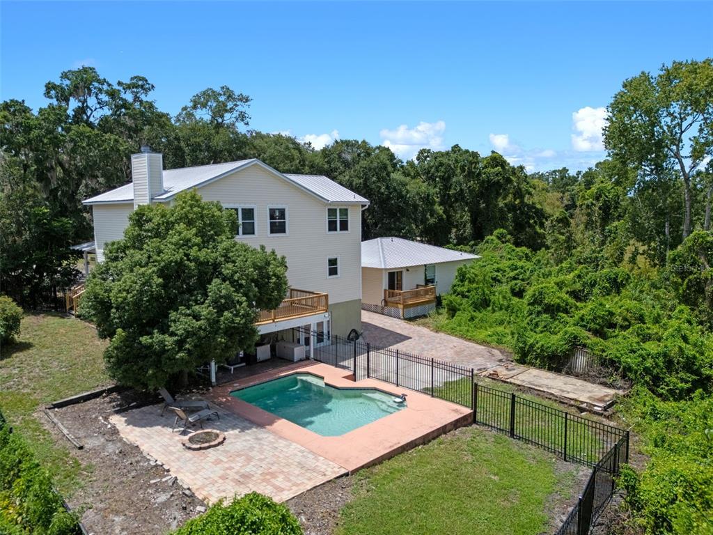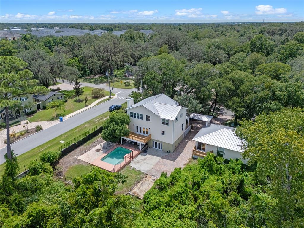 Income producing property, currently zoned MUD. 1,000sq ft ADU for multigenerational living or passive income. NEW ROOF on both homes. Located in the HEART of Oviedo just one block from Oviedo on the Park, this stunning 4 bedroom, 3 full bath home comes with a pool and a 1 bedroom, 1 bathroom guest house. Set above an expansive 1.56 acres you can view Kennedy Space Center and SpaceX launches from the french door main level patio and primary suite. First floor features a private office, formal dining, and bonus room that leads to the large eat-in kitchen and family room. This home is also a rare find as it has a basement for extra space. Oversized circular paver driveway, portico and rear parking allow for plenty of room for vehicles, boats, etc. Bring your toys, there is NO HOA. All of the bedrooms are upstairs letting in tons of natural light giving the home an open and breezy feel. Freshly painted, brand new decking, new carpet and new basement door. Guest house has an updated deck, interior laundry room and a full kitchen. Quiet secluded street. Schedule your showing and come enjoy this relaxing retreat that is still minutes from the center of town. **Tax address is 560 Fern which is the guest house address, Main Home is 564 Fern St**