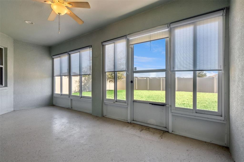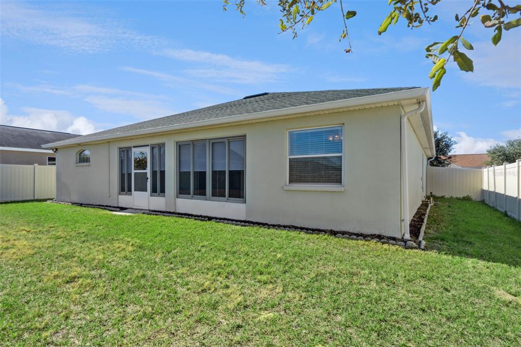 Well maintained home in Davenport offering energy efficiency and thoughtful upgrades throughout. Paid in full solar panels help reduce utility costs and a one year old roof adds peace of mind. Interior features include fresh paint, ceiling fans in every room, and a spacious primary suite with his and her walk in closets and a garden tub. The kitchen includes an instant hot water heater at the sink and the home is equipped with a security system. Enjoy the enclosed patio with windows, perfect for year round use. The vinyl fenced backyard provides privacy with no rear neighbors and only one side neighbor. Additional highlights include a two car garage with side entry door and utility sink, pull down attic access for extra storage, and an enclosed porch. Conveniently located near US 27 with easy access to shopping, dining, schools, medical facilities, and Central Florida attractions. This home combines comfort, functionality, and a desirable location.