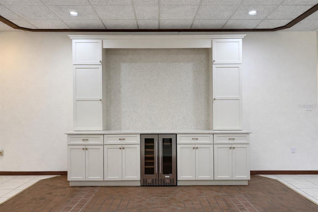 The home features an expansive 43×23 great room with 10-foot ceilings, a cozy fireplace, built-in bar, and large windows showcasing serene water views. Originally built with commercial-grade standards and later used in part as a place of worship, the home includes distinctive architectural details and custom built-ins that add charm and functionality throughout.