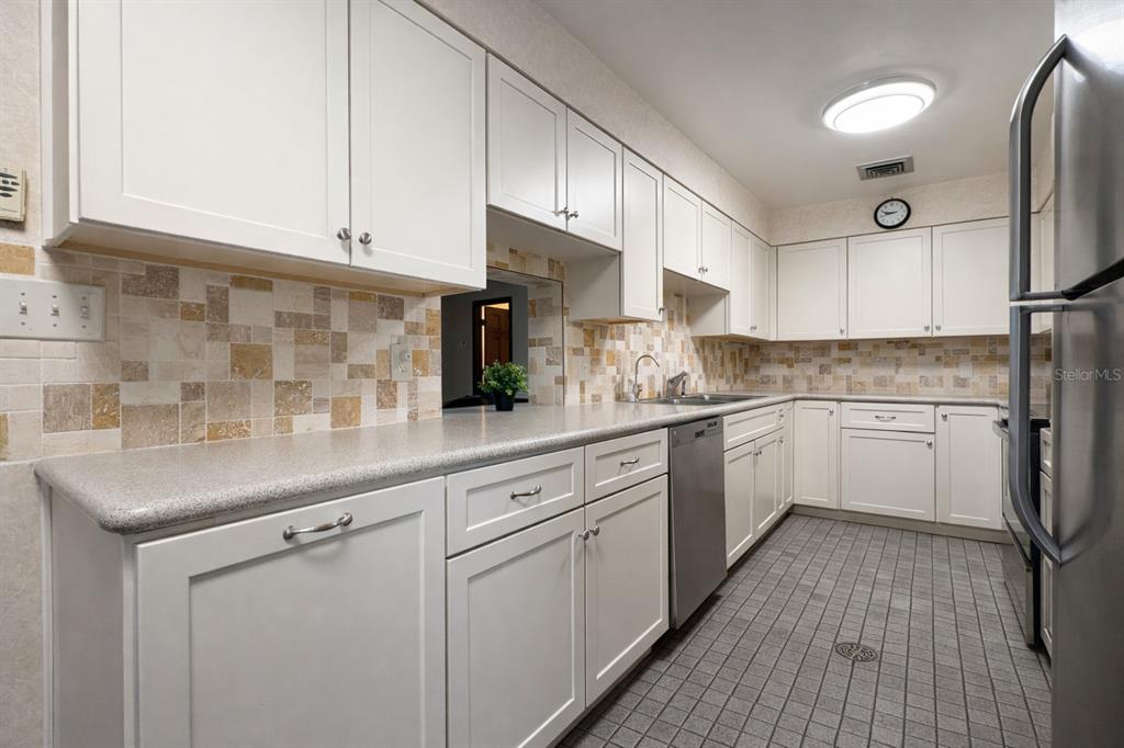 The updated kitchen includes upgraded appliances, quality cabinetry, Corian countertops, and a stylish tiled backsplash. A split-bedroom layout provides privacy, including a bedroom with its own private entrance—perfect for an in-law suite, guest quarters, or home office.