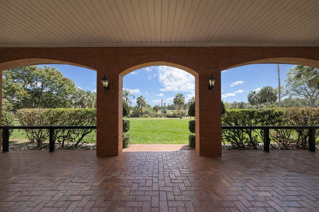 Step outside to your private backyard oasis featuring a screened-in pool and spa, beautiful paver deck, outdoor shower, and fully fenced yard. The expansive covered patio and impressive 60+ foot front verandah with brick flooring and arched openings with multiple spaces to relax and enjoy peaceful pond and nature views.