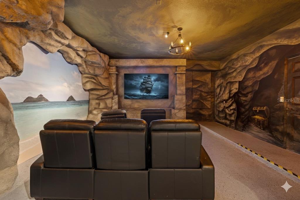 Turnkey, high performing luxury vacation rental in the sought-after Solterra Resort, offering a proven rental history with bookings secured through 2026. Built for short-term rental success, this home delivers strong guest demand through an impressive collection of immersive themed spaces, including Harry Potter, Disney’s UP, Stitch, How to Train Your Dragon, Disney Princess, Broadway, Marvel, Animal Kingdom, Sugar Rush (Wreck It Ralph) and additional themed bedrooms designed to encourage repeat stays. A Star Wars themed entertainment loft and a pirate and cave style private theater with hidden ship arcade elevate the guest experience and support premium rental performance. The open concept layout accommodates large groups and flows to a spacious covered lanai with private pool and spa, a highly desirable feature for vacation guests. Located minutes from Orlando’s world class attractions, the property is within Solterra, a gated destination resort with 24 hour manned security, offering a resort style pool with lazy river, fitness center, playgrounds, sports courts, and an on site café. Cable TV, high speed internet, and lawn maintenance are included. Ideal for buyers seeking a vacation focused property that generates rental revenue with the flexibility for personal use when not occupied.