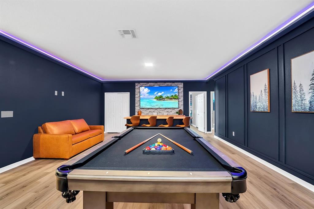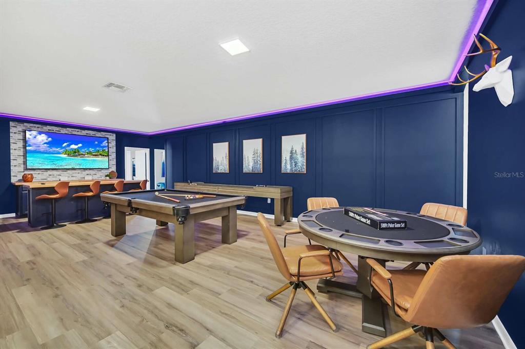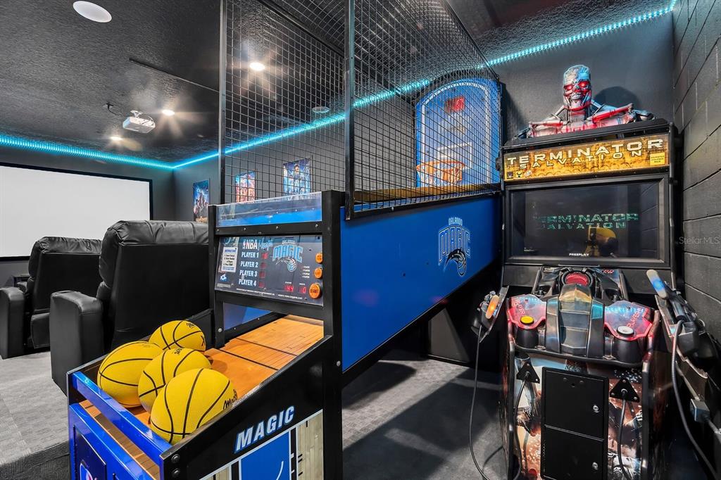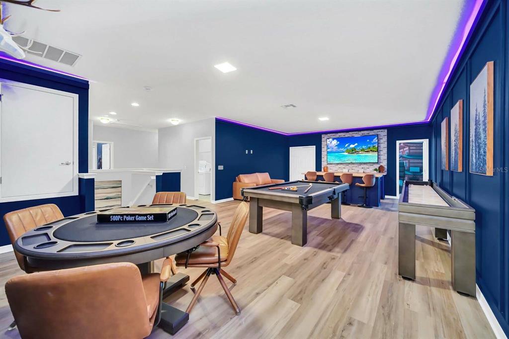 Step into SOLTERRA ESCAPE, a show-stopping 15-bedroom, 12-bathroom estate with a PRIVATE POOL and LAKE VIEWS in the exclusive gated community of Solterra Resort! Over $200k of Upgrades Invested into the Property! High Functioning STR with Magical Vacation Homes! This fully furnished, turn-key home combines elegance, comfort, and high-end entertainment with its EPIC GAME ROOMS, perfect as a private retreat or a top-performing short-term rental investment. Property Highlights Include: Expansive 7,000 sq. ft. floor plan designed for large families or vacation groups, Open-concept living area with a grand dining table for 18 and breakfast bar seating, Chef’s kitchen featuring granite counters, stainless steel appliances, and custom cabinetry, Private screened-in pool with tranquil lake views, covered lanai, loungers, and outdoor dining, Two first-floor king master suites plus 12 additional themed bedrooms, including Lego, Disney, and adventure-inspired designs everyone will adore, Arcade & theater combo room with NBA Hoops, Terminator, Pac-Man, and 12 recliners for movie nights, Upstairs entertainment loft with poker table, pool table, shuffleboard, dry bar, and lounge seating, Lego-themed playroom with twisting slide and creative build area, Two laundry rooms, ensuring convenience for large groups. Turnkey and rental-ready, offered fully furnished and professionally decorated! Enjoy the resort lifestyle every day with Solterra’s world-class amenities: Resort pool with lazy river & water slide, Clubhouse with café & fitness center, Tennis courts, playground, and 24-hour gated security. Ideally situated near Disney, Universal, shopping, and dining, this property blends luxury and proximity—making it a guest favorite and a proven income-producing vacation home. Whether you’re expanding your investment portfolio or creating a family haven, Solterra Escape offers unparalleled space, resort-style luxury, and entertainment that keeps guests returning year after year.