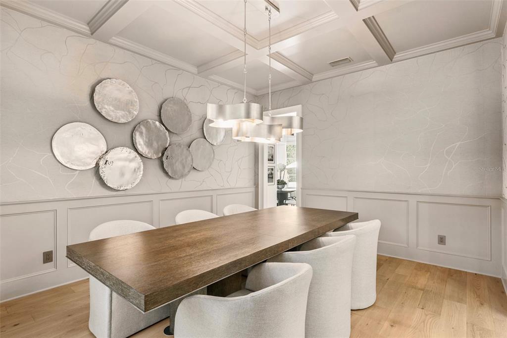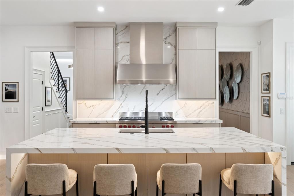 Experience elevated living in this fully transformed luxury residence in the heart of Winter Park, where design, premium finishes, and effortless functionality come together seamlessly. This 3-bedroom, 3.5-bath pool home offers approximately 2,400 square feet of impeccably curated living space, designed for those who appreciate both style and substance. Expertly designed by Morrone Interiors, every detail reflects a refined, cohesive aesthetic. Step inside to warm oak wood floors and a light-filled open-concept layout ideal for both everyday living and upscale entertaining. The chef’s kitchen is a true statement, featuring custom oak cabinetry, sleek quartz countertops with a dramatic waterfall island, and an expansive breakfast bar. Top-of-the-line appliances include a Sub-Zero refrigerator, Wolf 6-burner gas professional range with grill and double ovens, Wolf microwave, Miele dishwasher with PowerDisk system, and a built-in Miele coffee station. The kitchen flows effortlessly into both a breakfast nook and a separate dining area, while the designer bar serves as a stunning focal point—complete with two Sub-Zero dual zone wine refrigerators accommodating more than 200 bottles, along with additional Sub-Zero refrigerator and freezer drawers. Downstairs all blinds are motorized and have gorgeous custom drapes. Upstairs, all three bedrooms are en suite, offering a private retreat for family and guests. A versatile loft area features a custom-designed laundry space concealed behind built-in cabinetry for a clean, streamlined aesthetic. One bedroom has been thoughtfully designed as a home office with a built-in Murphy bed, providing flexibility without compromising luxury. The outdoor space is equally refined, featuring low-maintenance turf, a beautifully designed pool, and a covered lanai perfect for relaxing or entertaining. A built-in grill area and lush privacy hedging create a serene backyard oasis, with landscaping professionally designed and maintained by Signature Landscaping. Additional highlights include a 2-car garage and a Sonos sound system in the living room and lanai, enhancing the home’s elevated lifestyle experience. Most furnishings are available for purchase separately, offering a truly turnkey, designer-furnished opportunity. Ideally located just minutes from Park Avenue, top-rated schools,Rollins College, fine dining, and boutique shopping, this exceptional home represents the very best of Winter Park luxury living. Perfect lock and leave home with the perfect location!