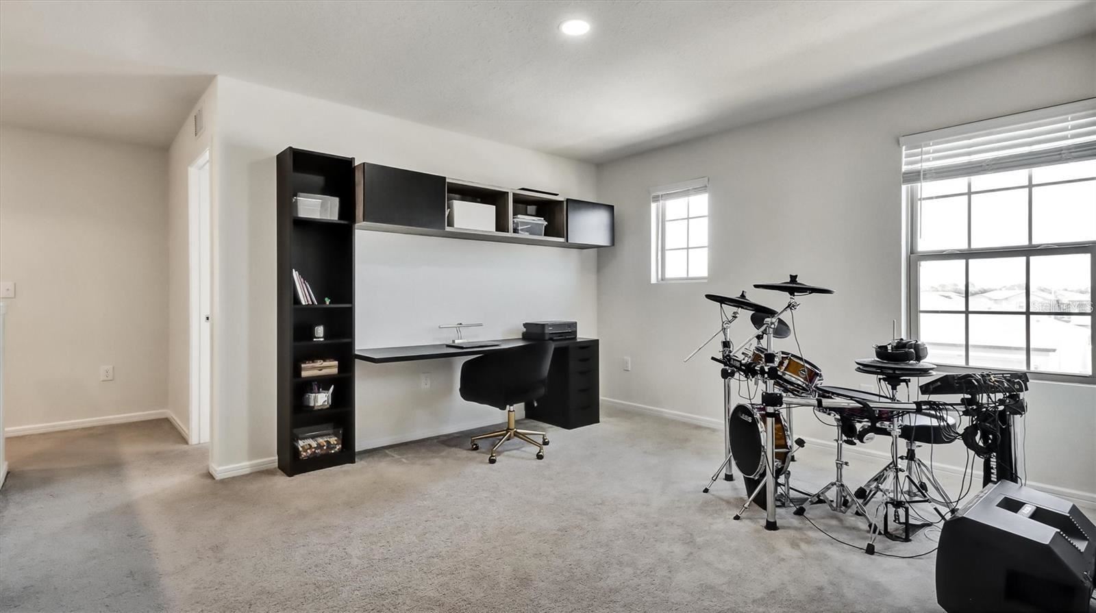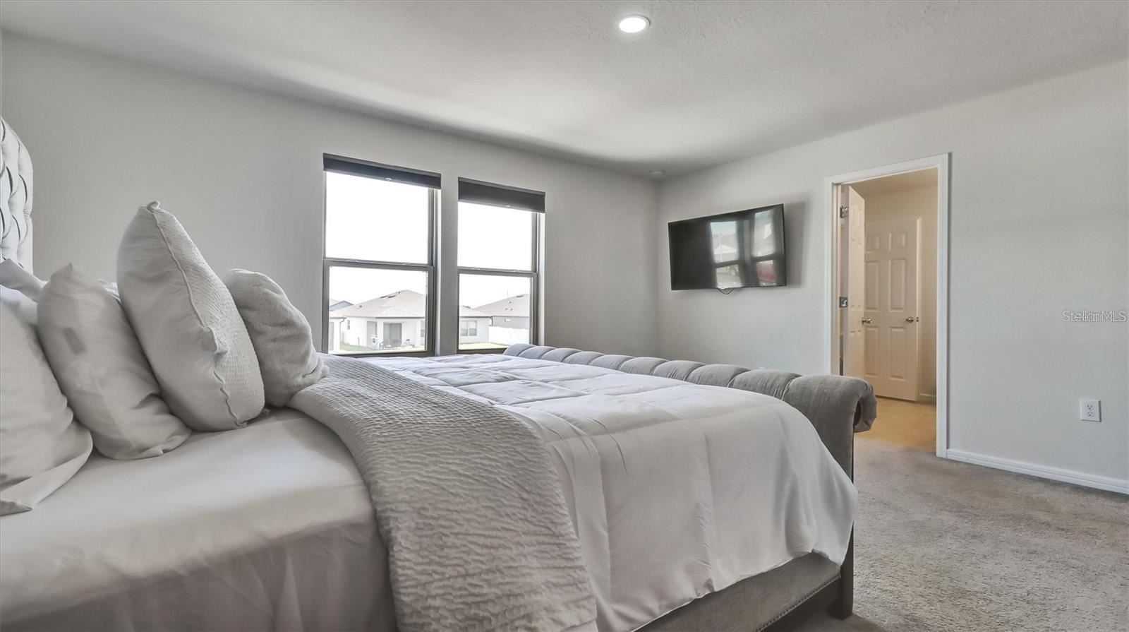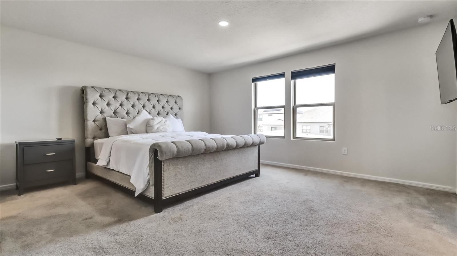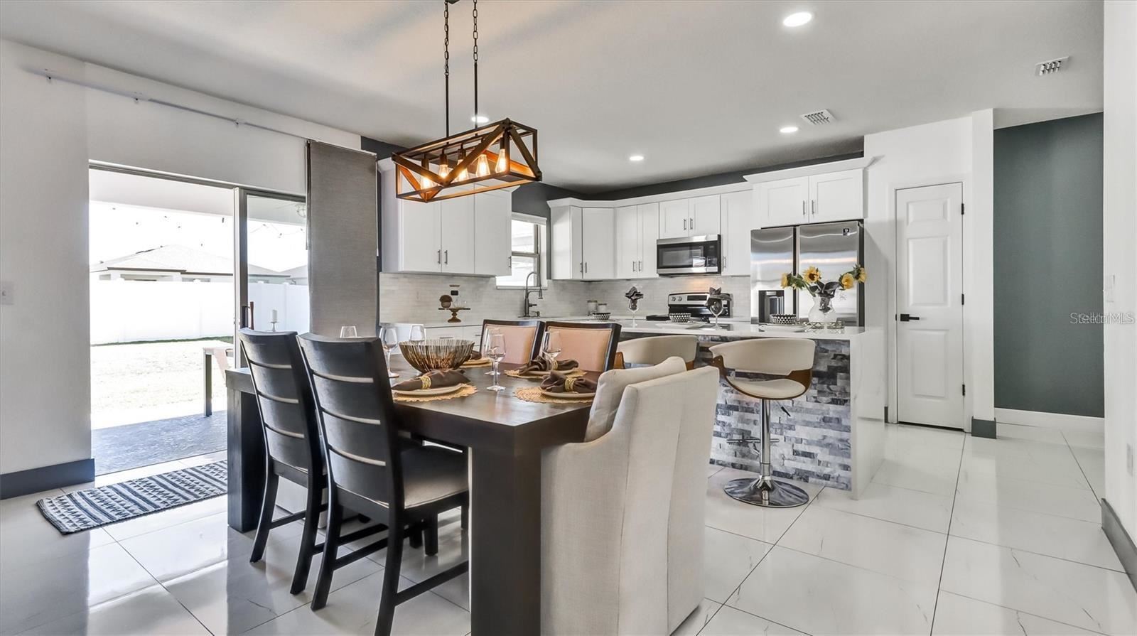 This stunning 4-bedroom, 2.5-bath home, built in 2021, combines modern design with luxurious finishes. The open-concept floor plan flows seamlessly throughout the first floor, highlighted by 24×24 porcelain tile with a sleek marble look. The gourmet kitchen showcases wood cabinetry, a striking Calacatta quartz waterfall-edge island, and elegant quartz countertops carried into the bathrooms. The master suite offers a spacious custom walk-in closet, creating the perfect retreat. Step outside to a private fenced backyard””ideal for a future pool””complete with a paved lanai for relaxation or entertaining. Additional features include energy-efficient windows, a sprinkler system, security cameras, and surround sound speakers in the living area. Conveniently located near top restaurants, world-famous theme parks, and premier outlet shopping, this home delivers both comfort and style in the heart of Central Florida living.