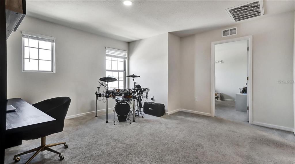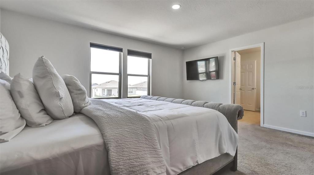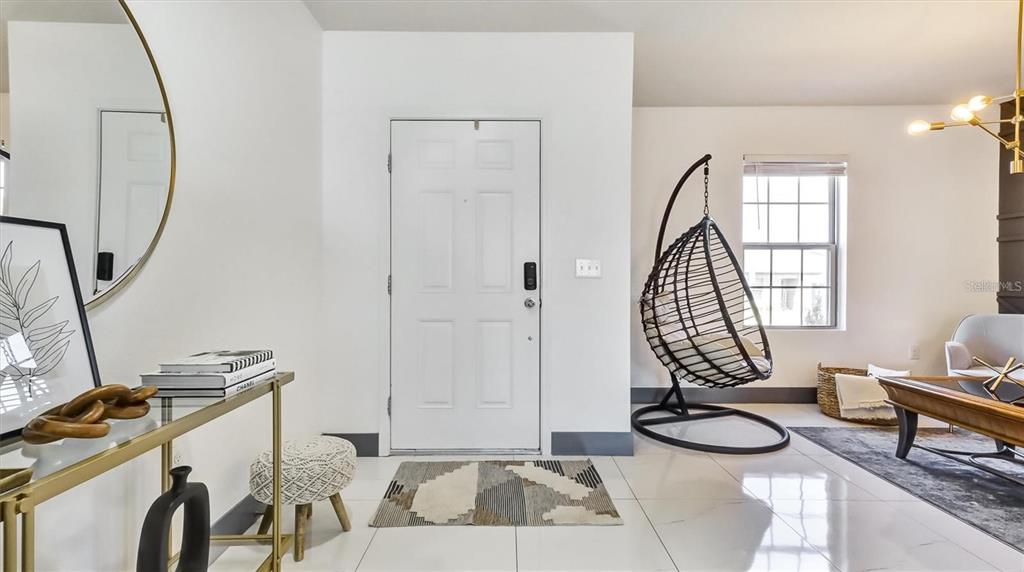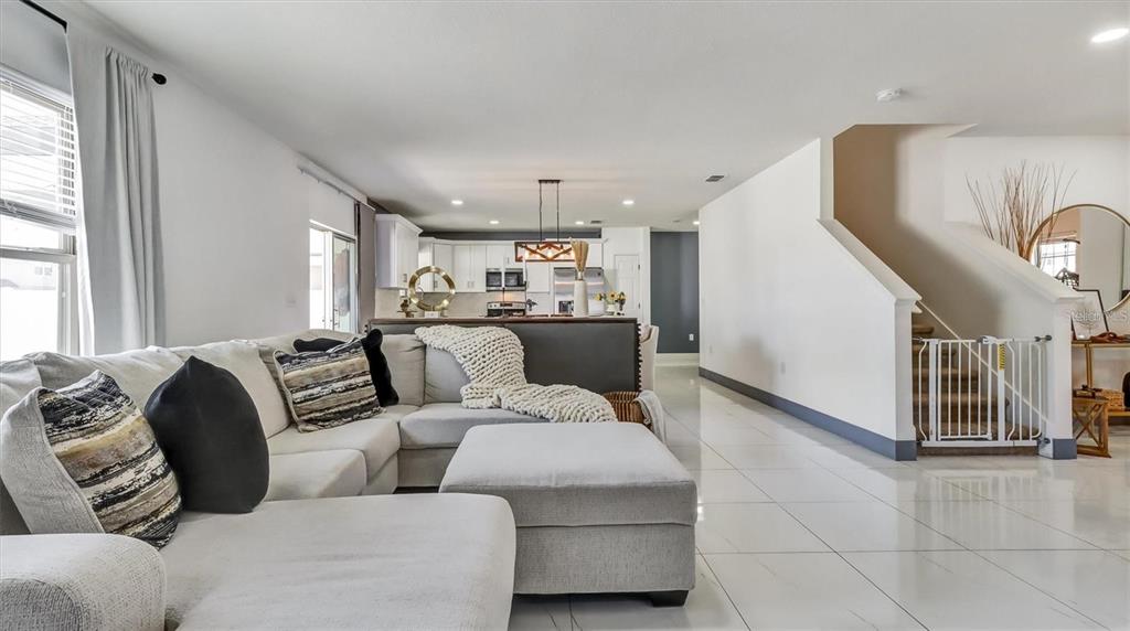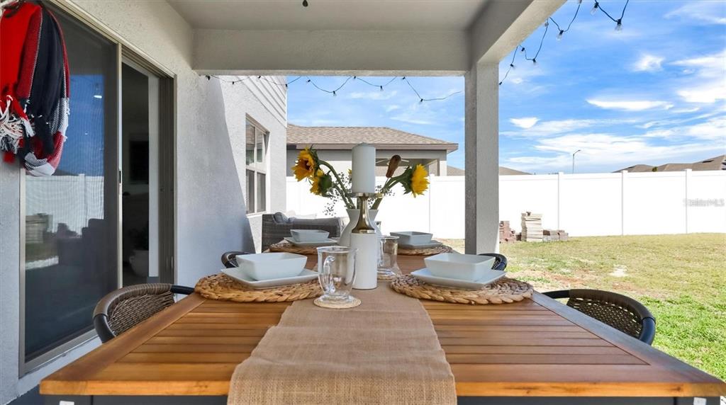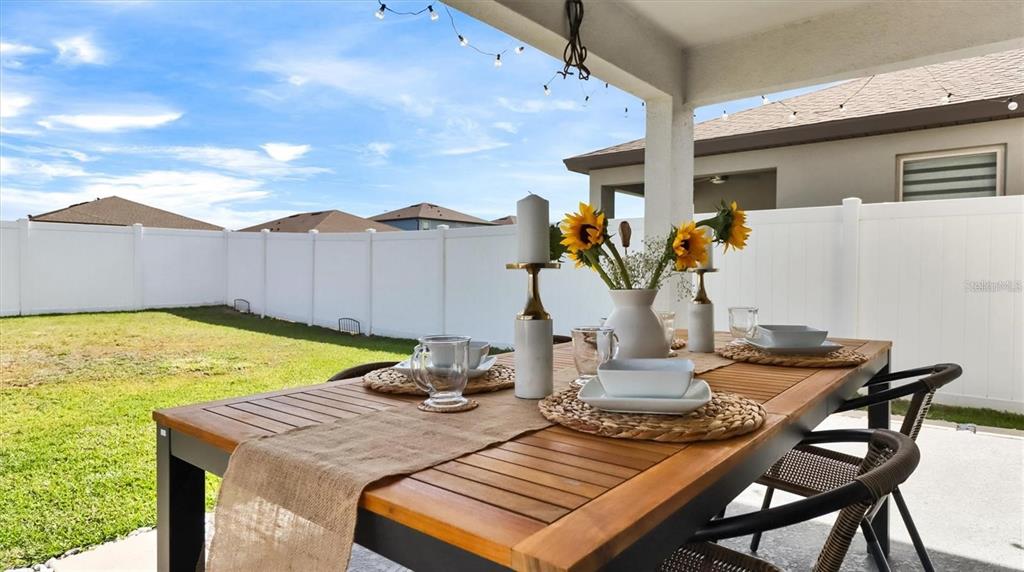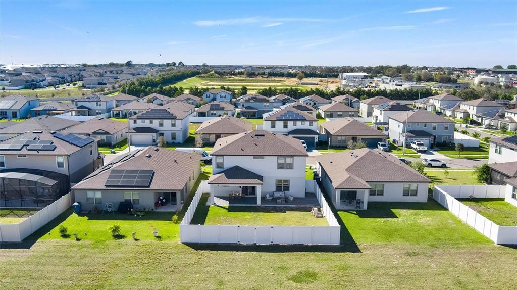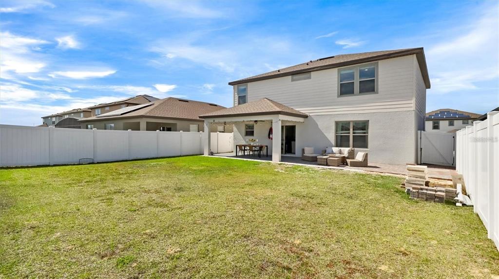 Step outside to a private fenced backyard—ideal for a future pool—complete with a paved lanai for relaxation or entertaining. Additional features include energy-efficient windows, a sprinkler system, security cameras, and surround sound speakers in the living area. Conveniently located near top restaurants, world-famous theme parks, and premier outlet shopping, this home delivers both comfort and style in the heart of Central Florida living.