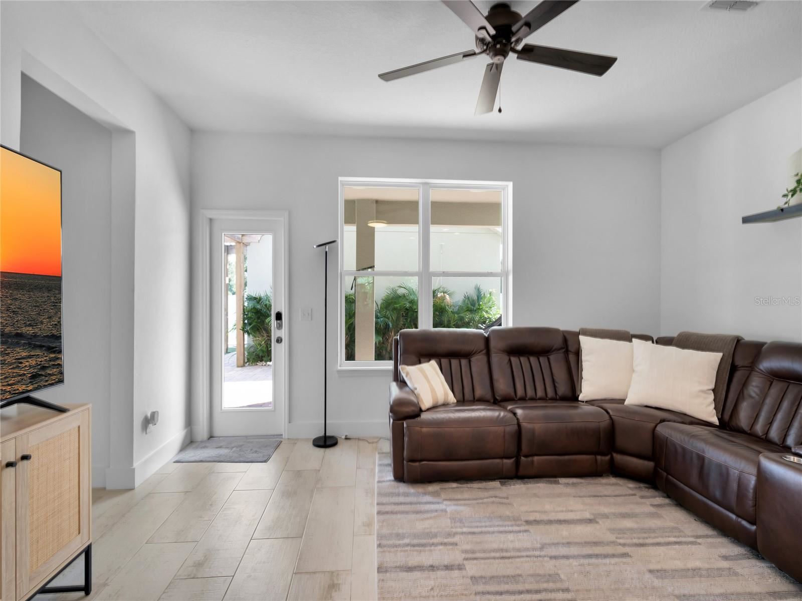 Welcome to this exceptional corner-lot home located just steps away from Keenes Pointe and the Chase Road. Featuring a recently replaced air conditioning system for added comfort and efficiency, this residence boasts a spacious, fully fenced backyard that offers maximum privacy. The expansive outdoor space is beautifully landscaped with low-maintenance artificial turf,perfect for entertaining or relaxing year-round. Enjoy the benefits of a corner lot with extra yard space, enhanced curb appeal, and tranquil garden views with no rear neighbors. The community offers generous recreational areas, making this the perfect home for those seeking both comfort and convenience in one of the most desirable locations in town. Step inside to discover an expansive open-concept layout featuring a spacious living room, formal sitting area, and integrated dining space,all filled with natural light and designed for both comfort and entertaining. The generously sized kitchen flows seamlessly into the living areas, creating a warm and inviting atmosphere. The primary suite offers a true retreat with a large walk-in closet and a luxurious en-suite bathroom complete with dual vanities, perfect for everyday convenience. Located in the exclusive community of Windermere, this home also includes access to a beautifully appointed clubhouse, scenic walking trails, and multiple recreation courts for an active lifestyle. With thoughtfully designed indoor and outdoor living spaces, this property offers the perfect blend of elegance, space, and privacy.