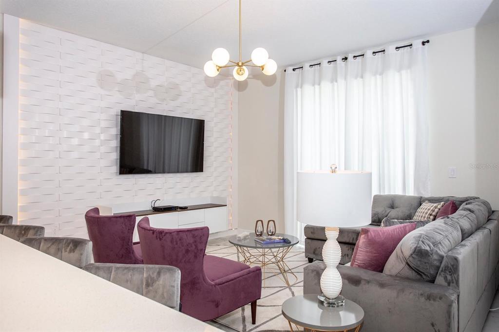 • Spacious living room with plenty of natural light — perfect for guests to relax after a day at the parks.