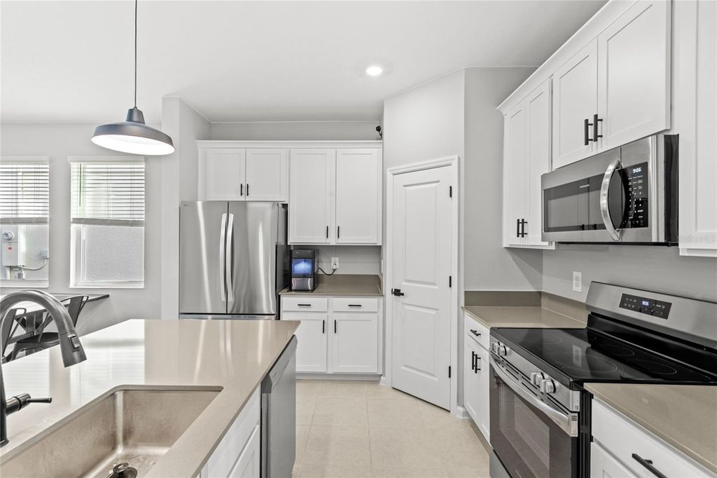 Better than new, this 2024-built home comes with a rare 4.75% assumable loan for qualifying buyers and is filled with thoughtful upgrades. As you enter, you’re welcomed by an abundance of natural light, fresh interior paint, and tile flooring that flows through a spacious open-concept floor plan. The kitchen offers a generous layout with quartz countertops, a large pantry, and modern touches including new mirrors, fixtures, faucets, light fixtures, hardware, and blinds. The first floor also features a full bedroom and bathroom, along with a convenient mudroom drop zone that leads out to the fenced-in lanai and brick-paved patio connecting to the two-car garage and ample parking area. Upstairs, you’ll find three additional bedrooms, including a spacious primary suite with an en suite bath, plus another full bathroom. The split floor plan design provides privacy and functionality for every lifestyle. Located in the sought-after Wellness Ridge community with no front neighbors, you’ll enjoy a state-of-the-art fitness center, resort-style pool, lap pool, pickleball and tennis courts, playgrounds, and green spaces. Perfectly positioned along the Wellness Way corridor near the upcoming Olympus Project, and just minutes from downtown Clermont, Southern Hill Farms, and Lake Louisa State Park, this home offers the ideal blend of comfort, style, and convenience. Schedule your showing today!